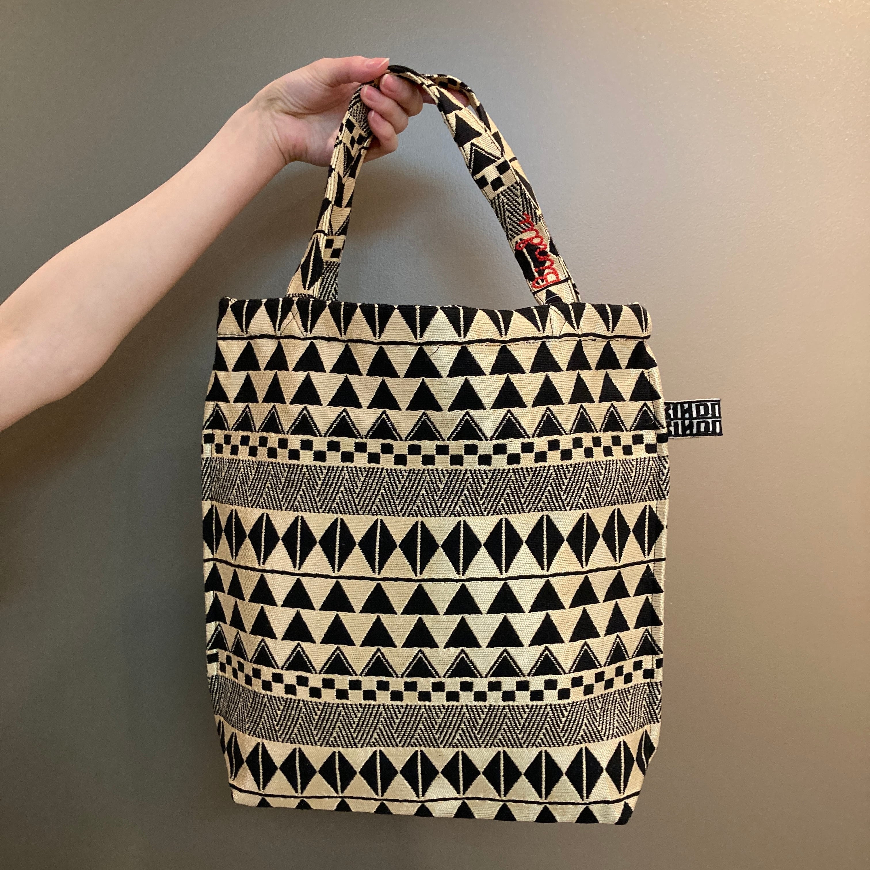人気のトライバル柄のジャガードトートバッグ。