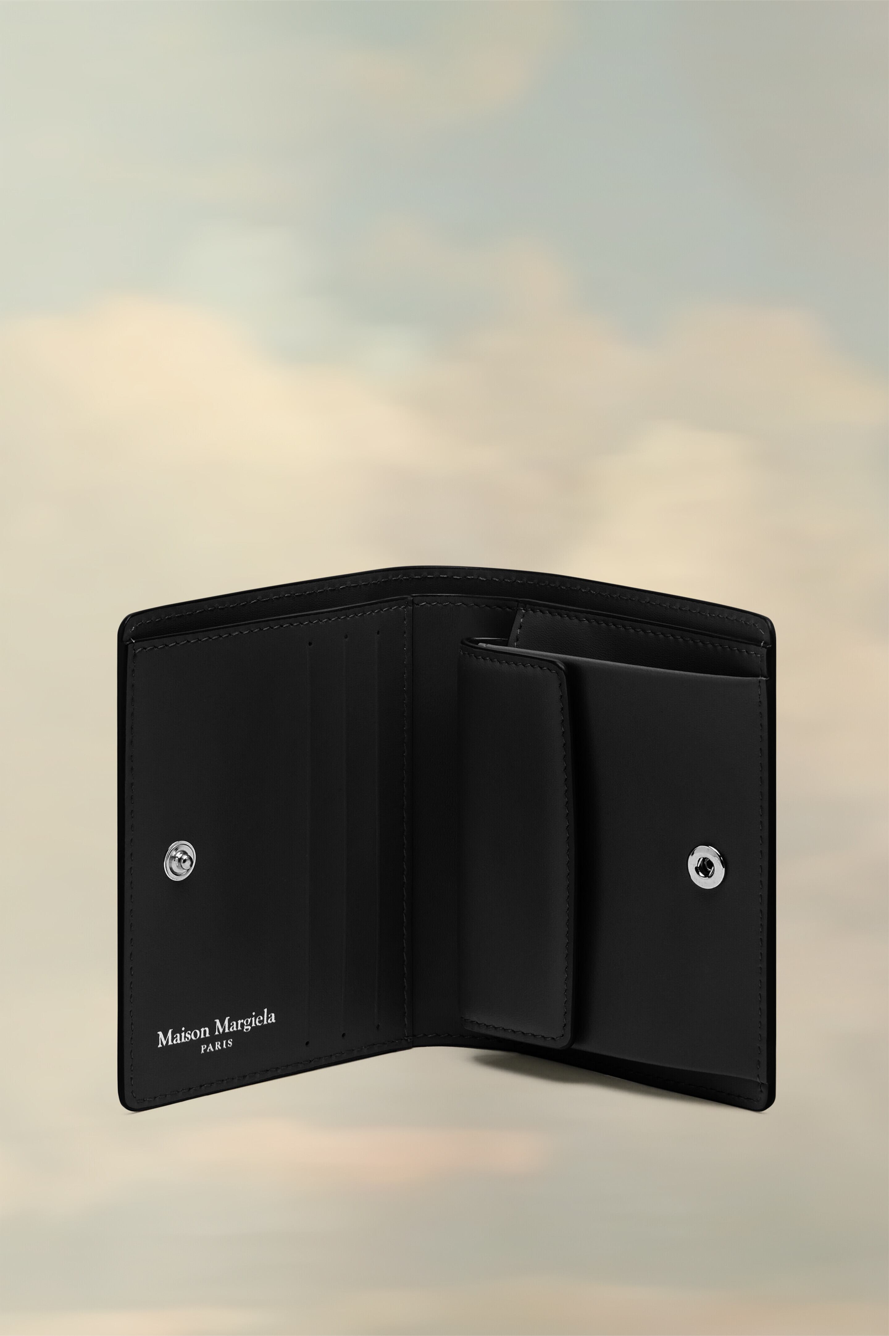 グレイニーレザー製の二つ折り ウォレットです。内側にはエンベロープポケットと4つのカードホルダーが備わっており、ナンバリングロゴがあしらわれています。バックには、通常のファッションブランドのラベルとは対照的なメゾン マルジェラのシグネチャーの白い4ステッチがあしらわれています。