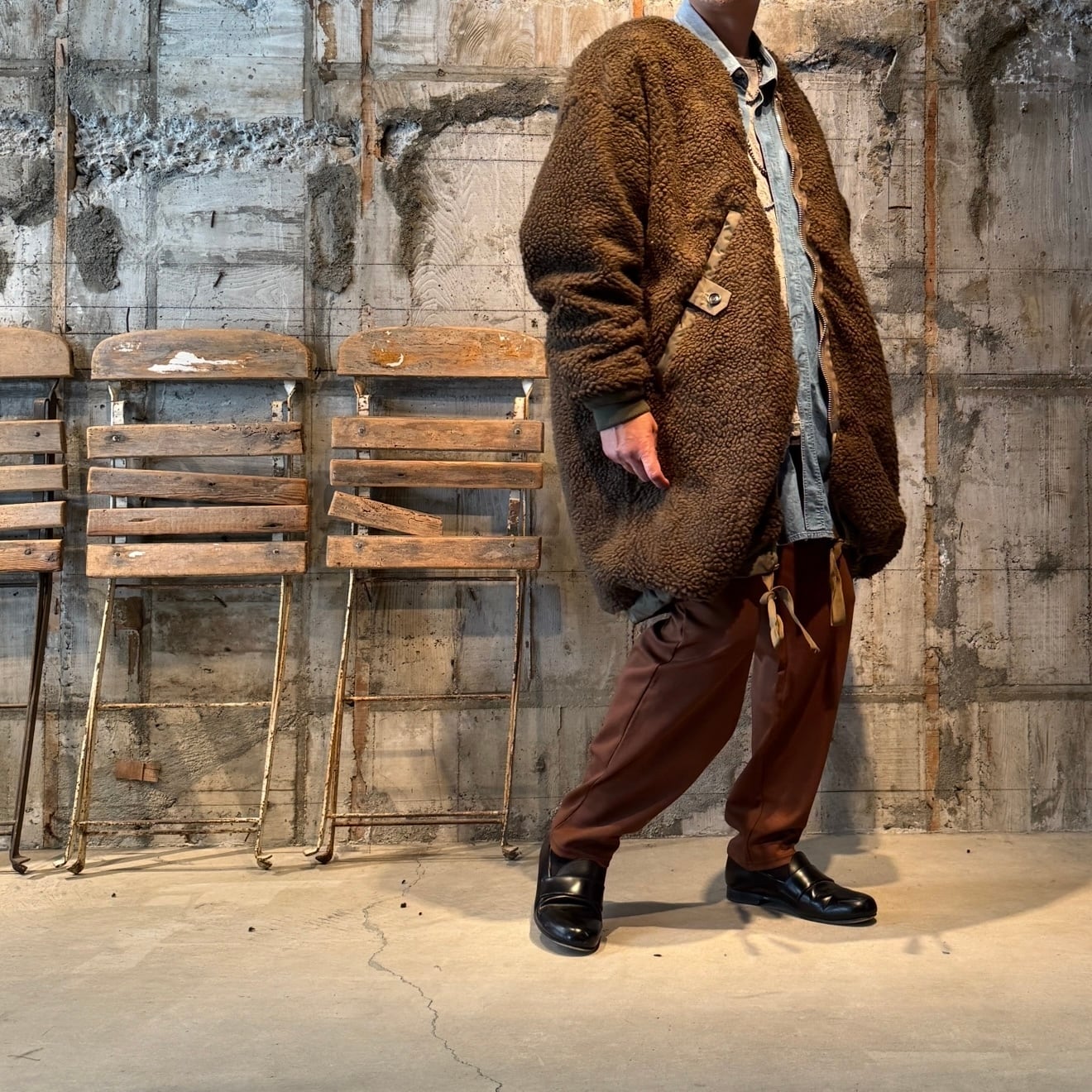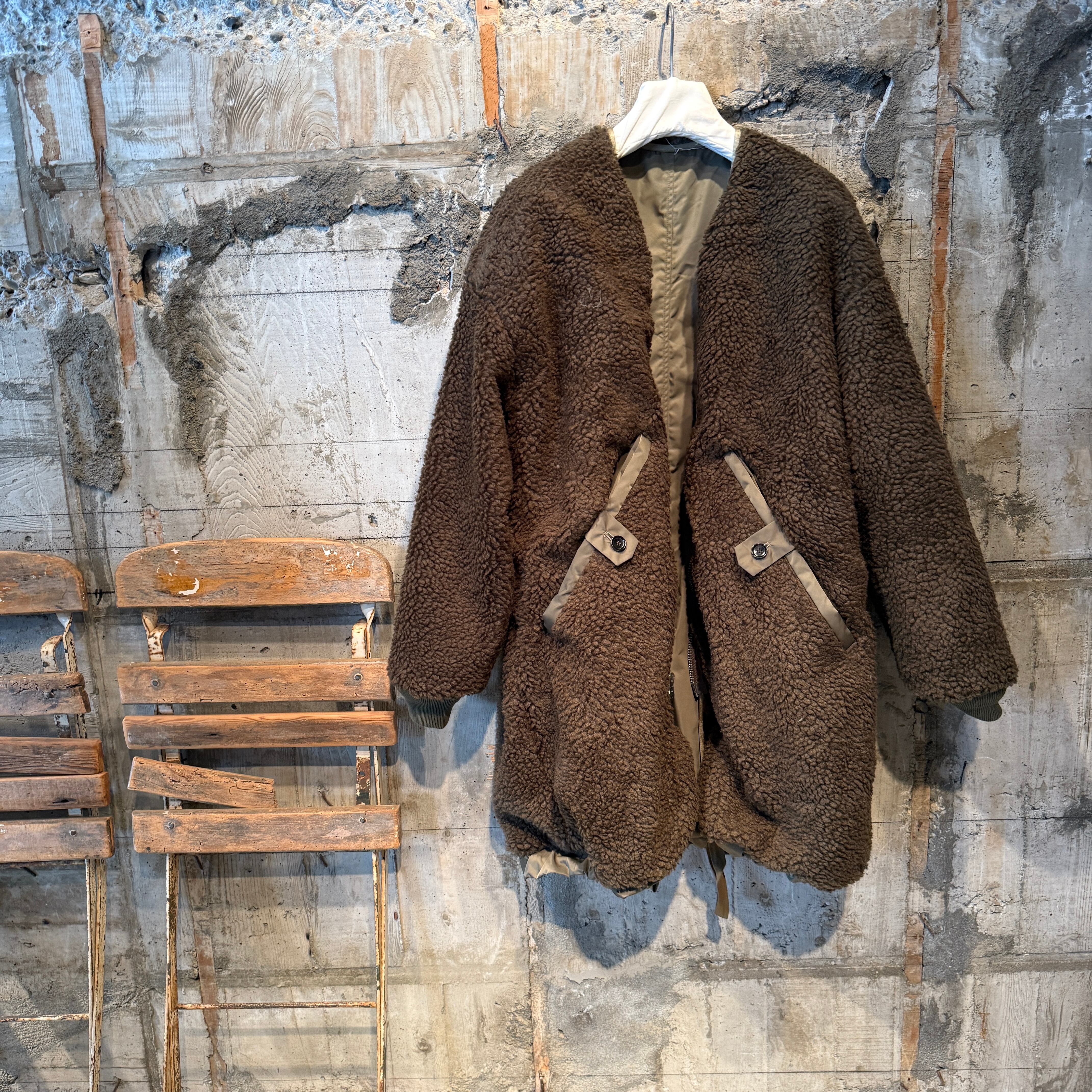 裏面はここ数シーズントレンドのボア素地を使用したリバーシブルコートです。