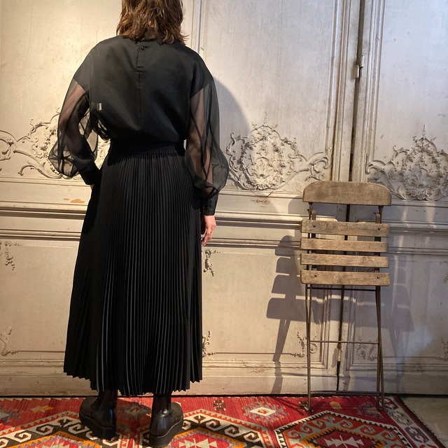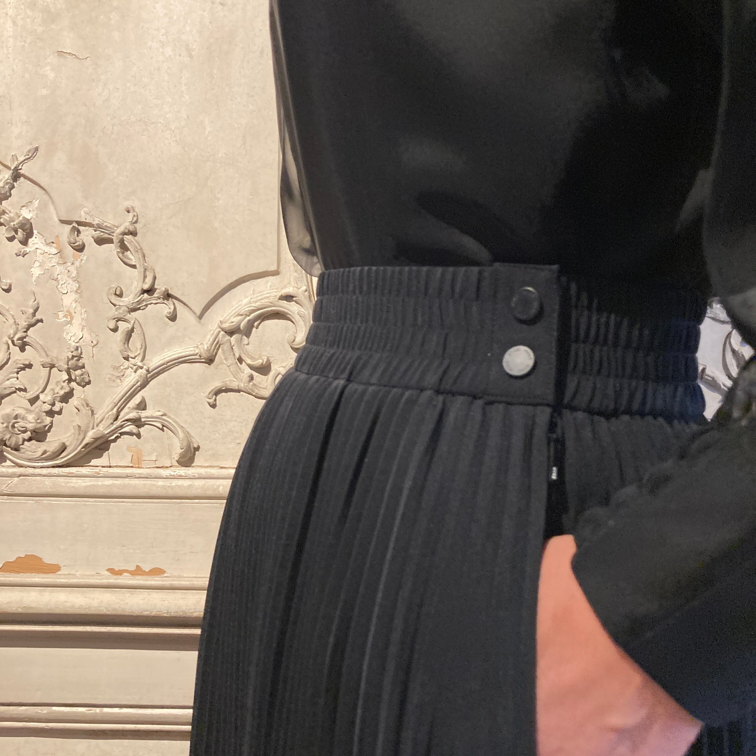 歩くと美しく揺れるプリーツは、程よい光沢があり上品な素材感が特徴。