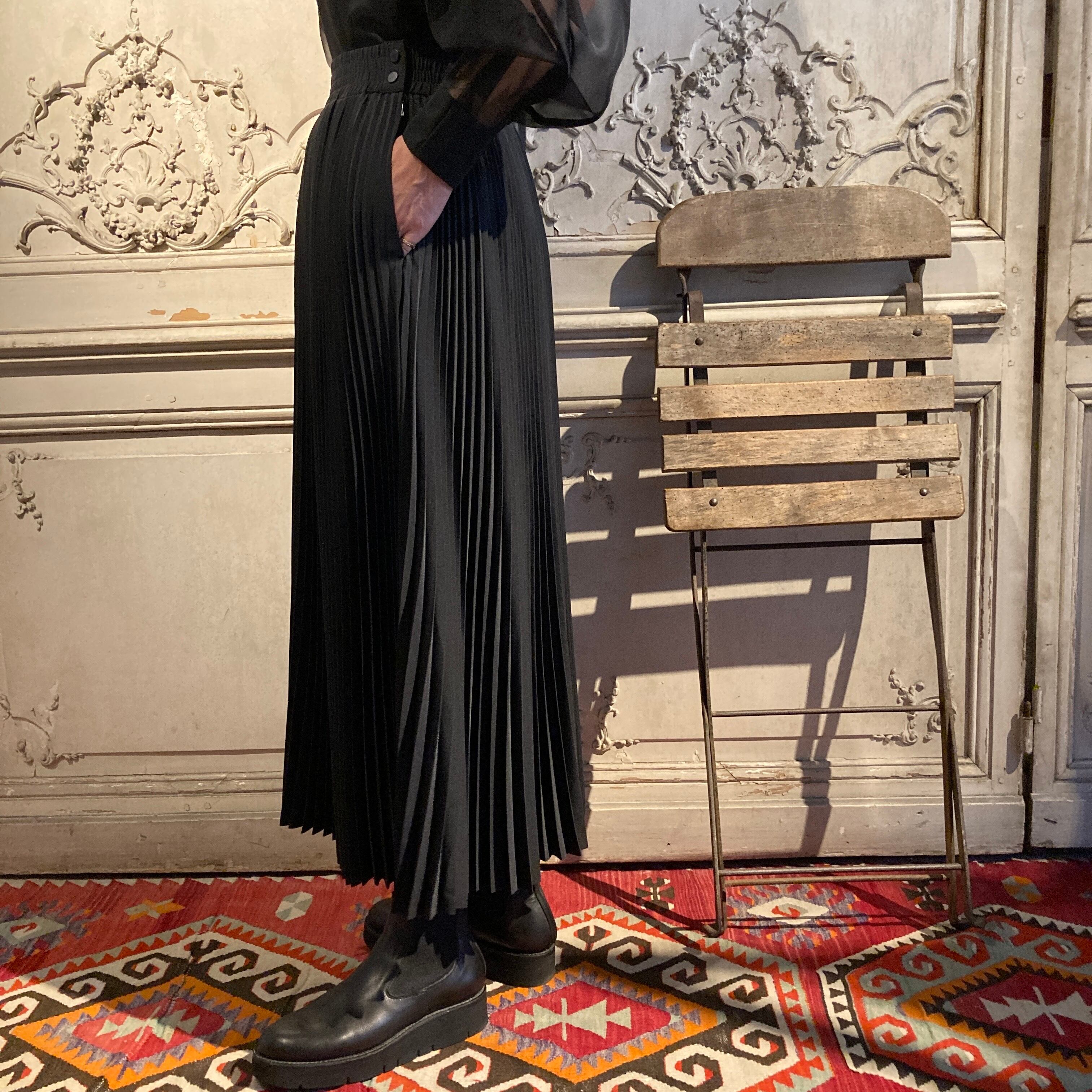 HYKE定番のポリエステルタフタのプリーツスカート。