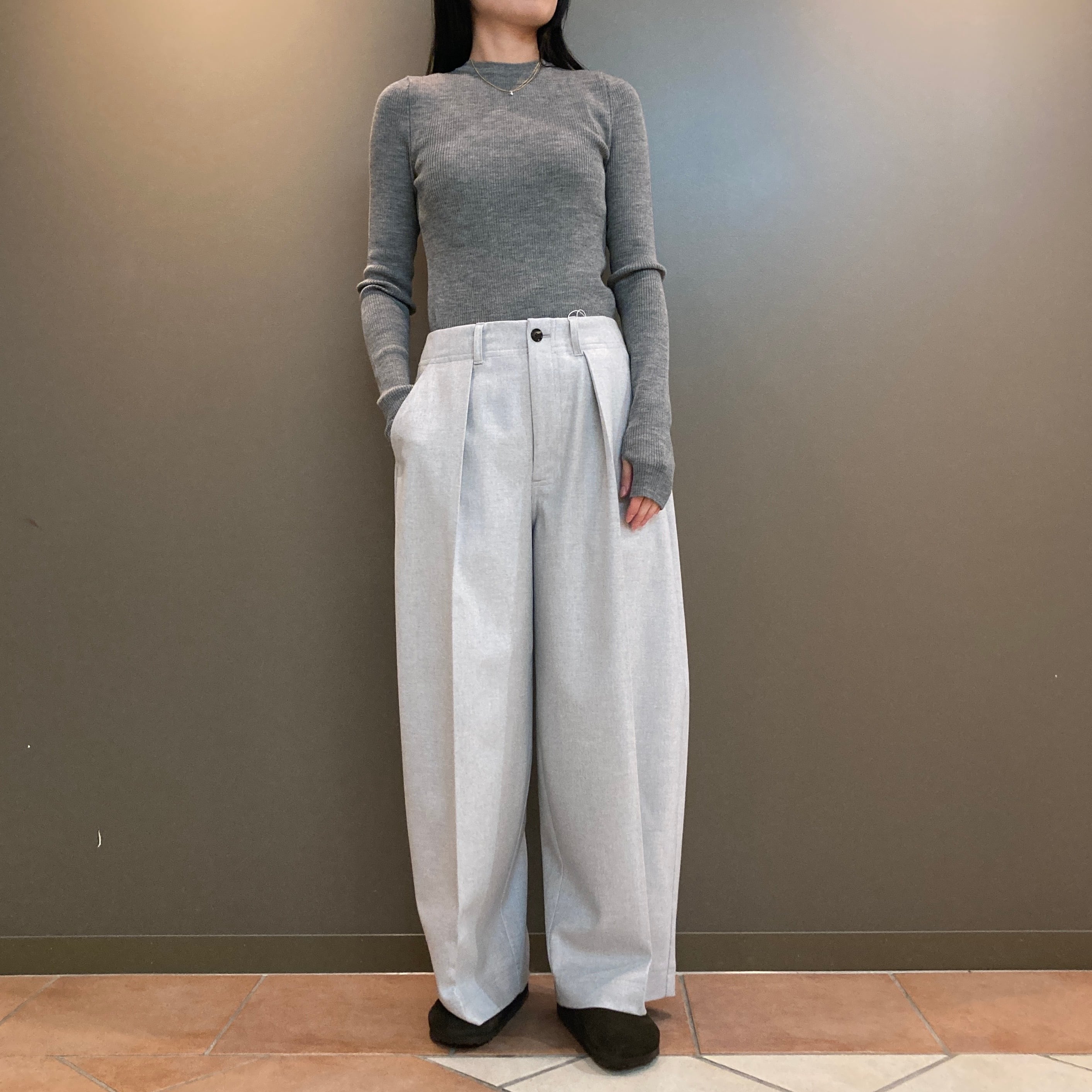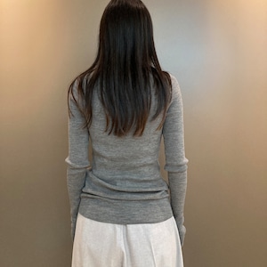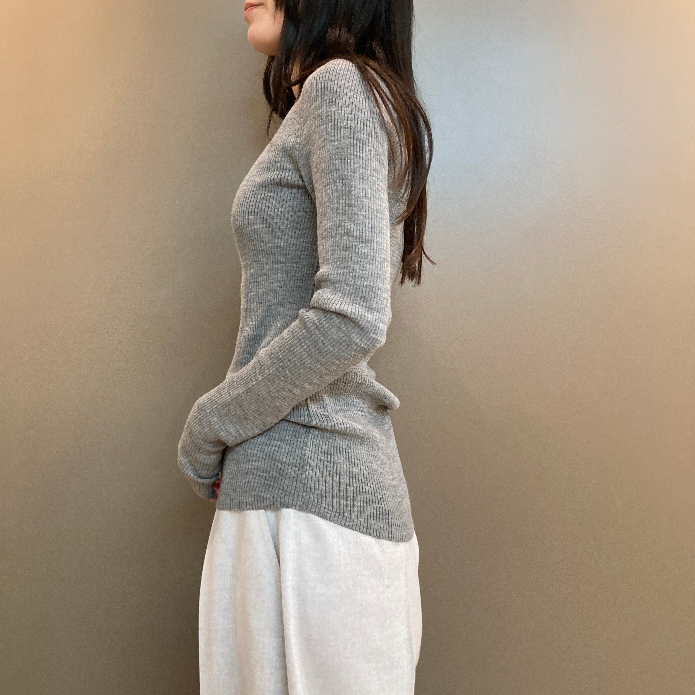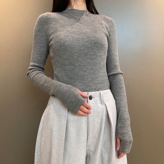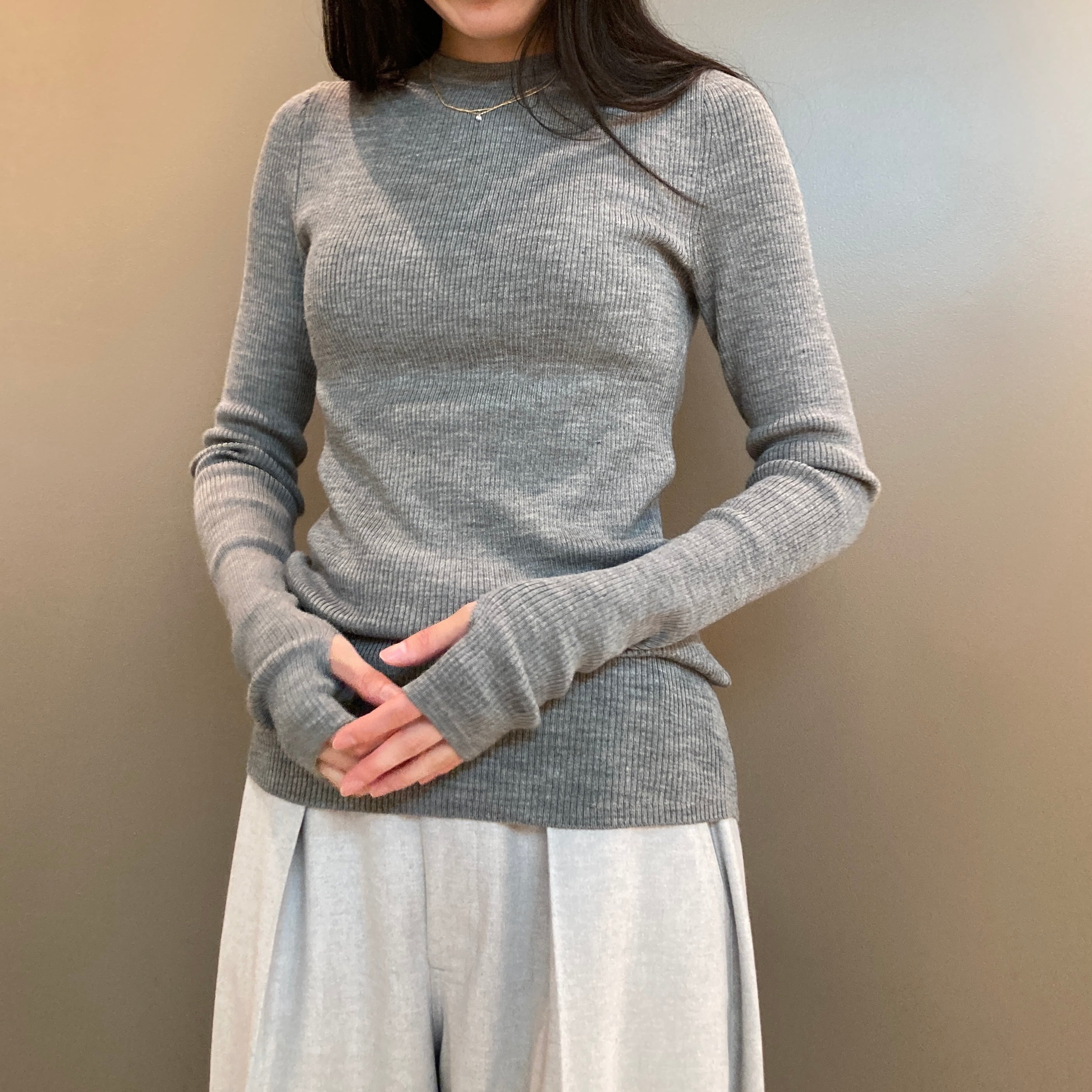 ラウンドになっている裾やサムホールの袖口など、それぞれ1枚で着てもシンプルすぎないスタイルに。