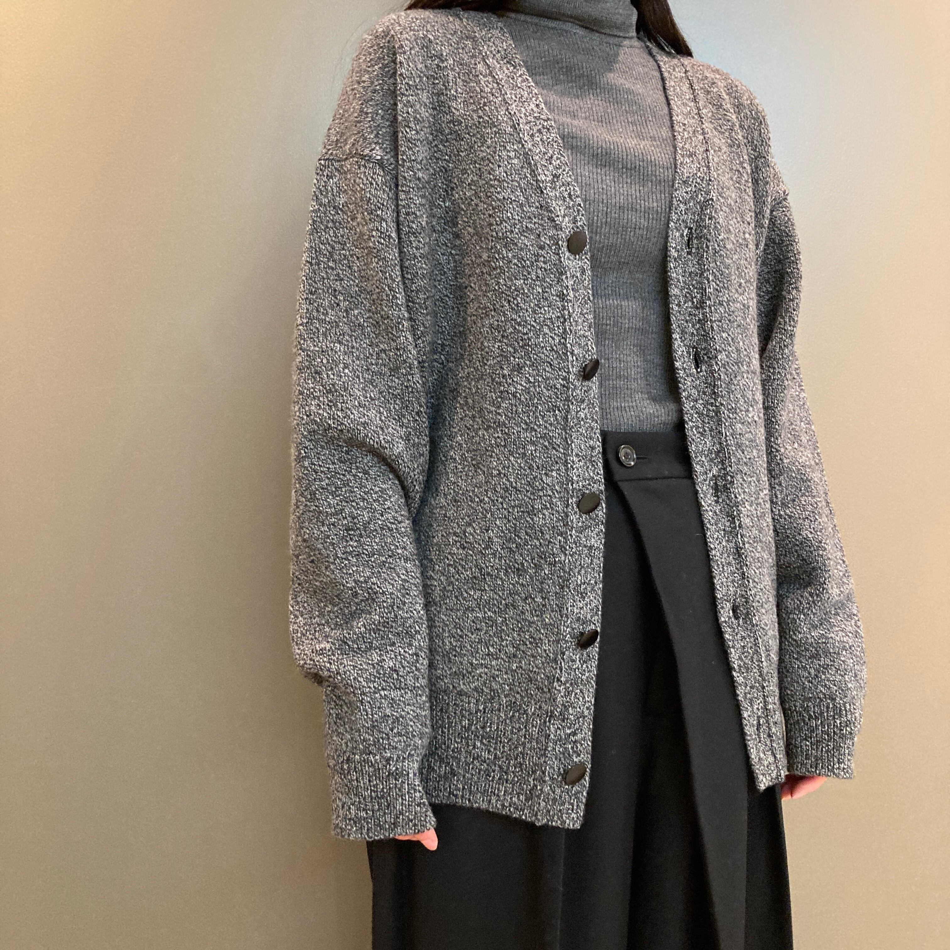 ゆったりとしたシルエットのシンプルなVネックカーディガン。