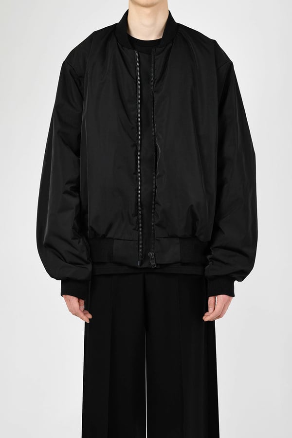ボリュームのあるフォルムを際立たせるミニマルな仕様のブルゾンです。