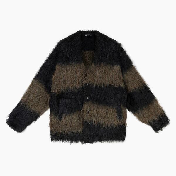 LAD MUSICIAN【ラッドミュージシャン 】SHAGGY BORDER KNIT CARDIGAN (NO:2225-022 COL:KHAKIxBLACK/63 SIZE:44)