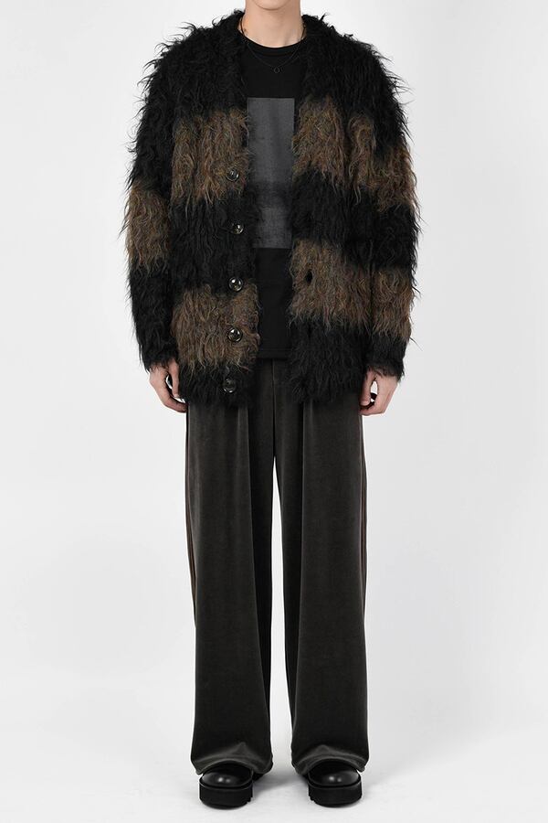 ニードル起毛加工によるファーの様な長い毛足が特徴のシャギーニットです。