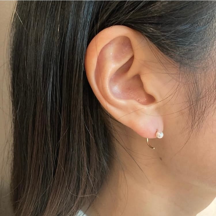 耳にひっかけるようなポストをつけてフープ状にしたユニークなピアスが登場。