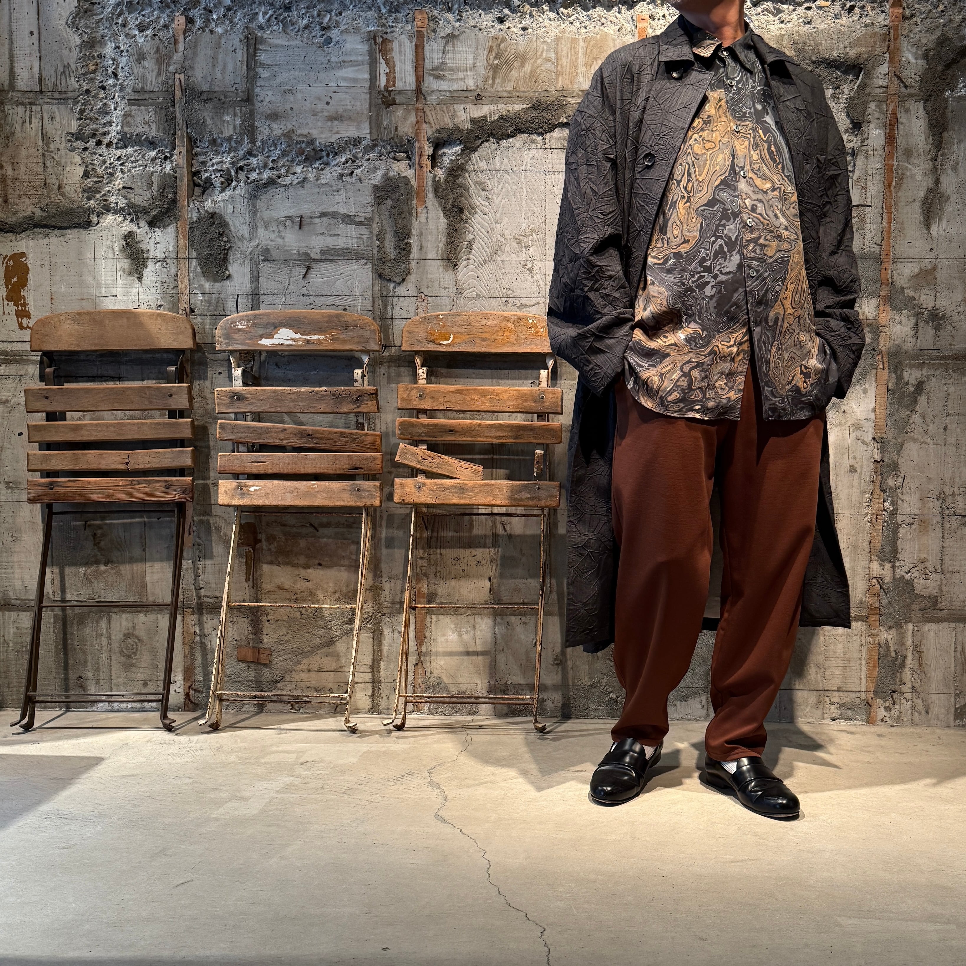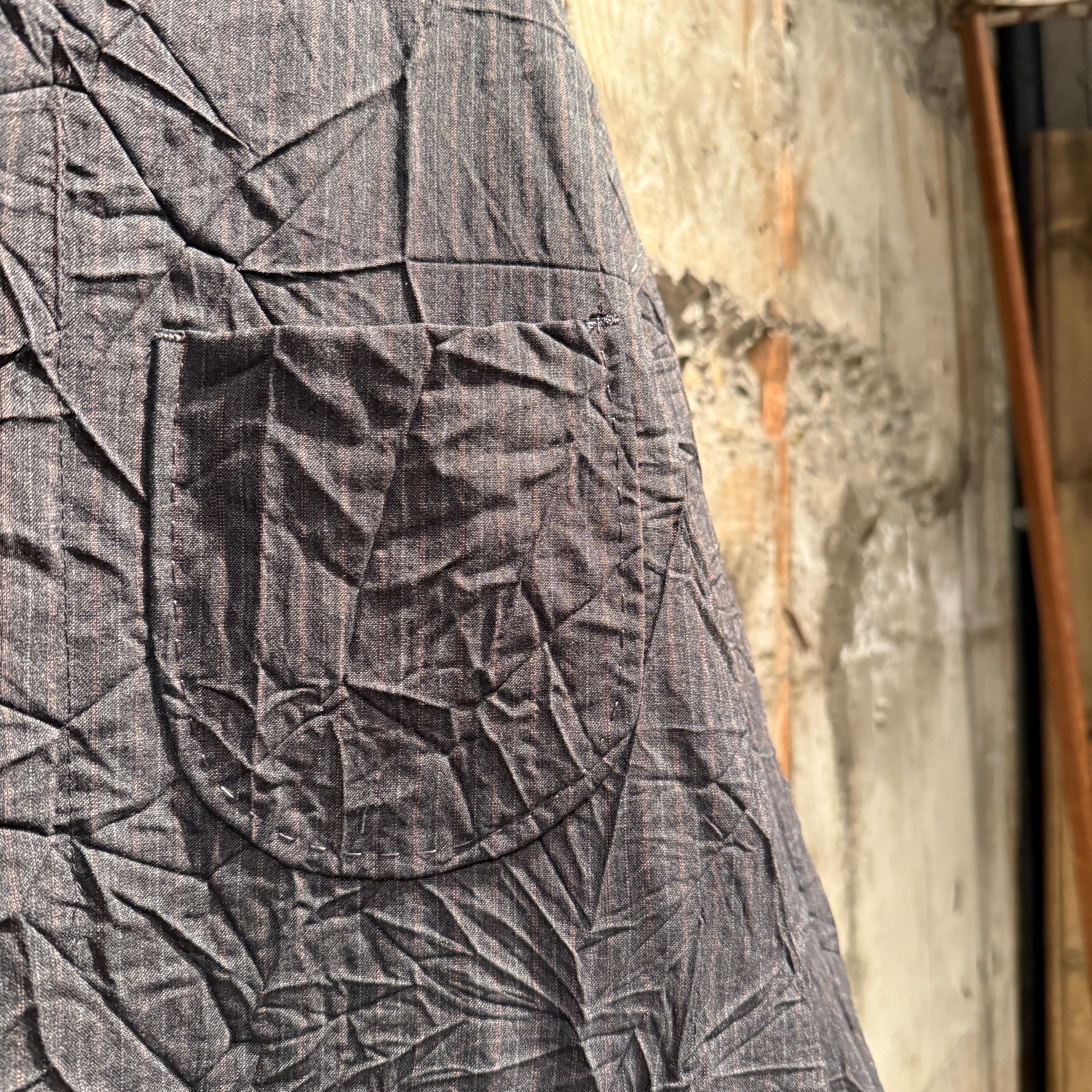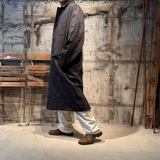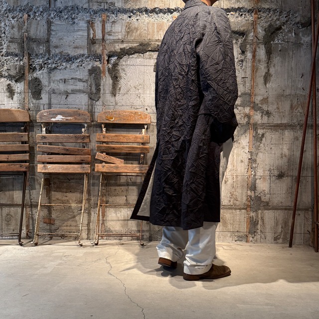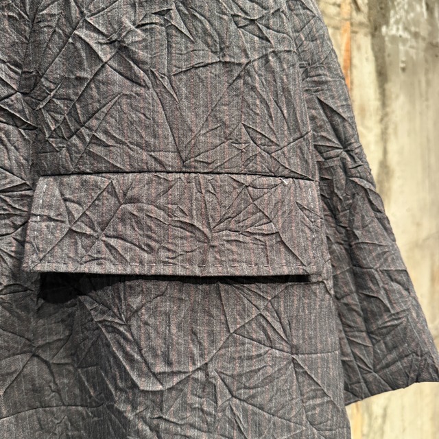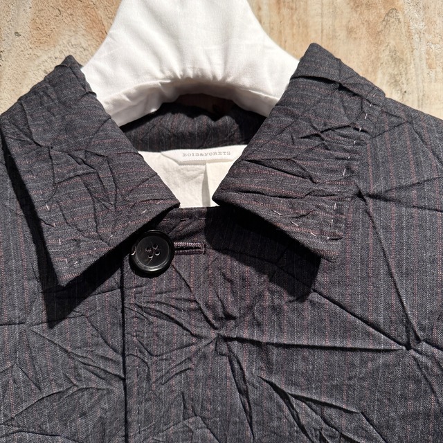 ストライプのウール素材に、キャッチワッシャーの加工を施し、自然なシワ感や立体感が演出されたスペシャル感のあるハーフコートです。