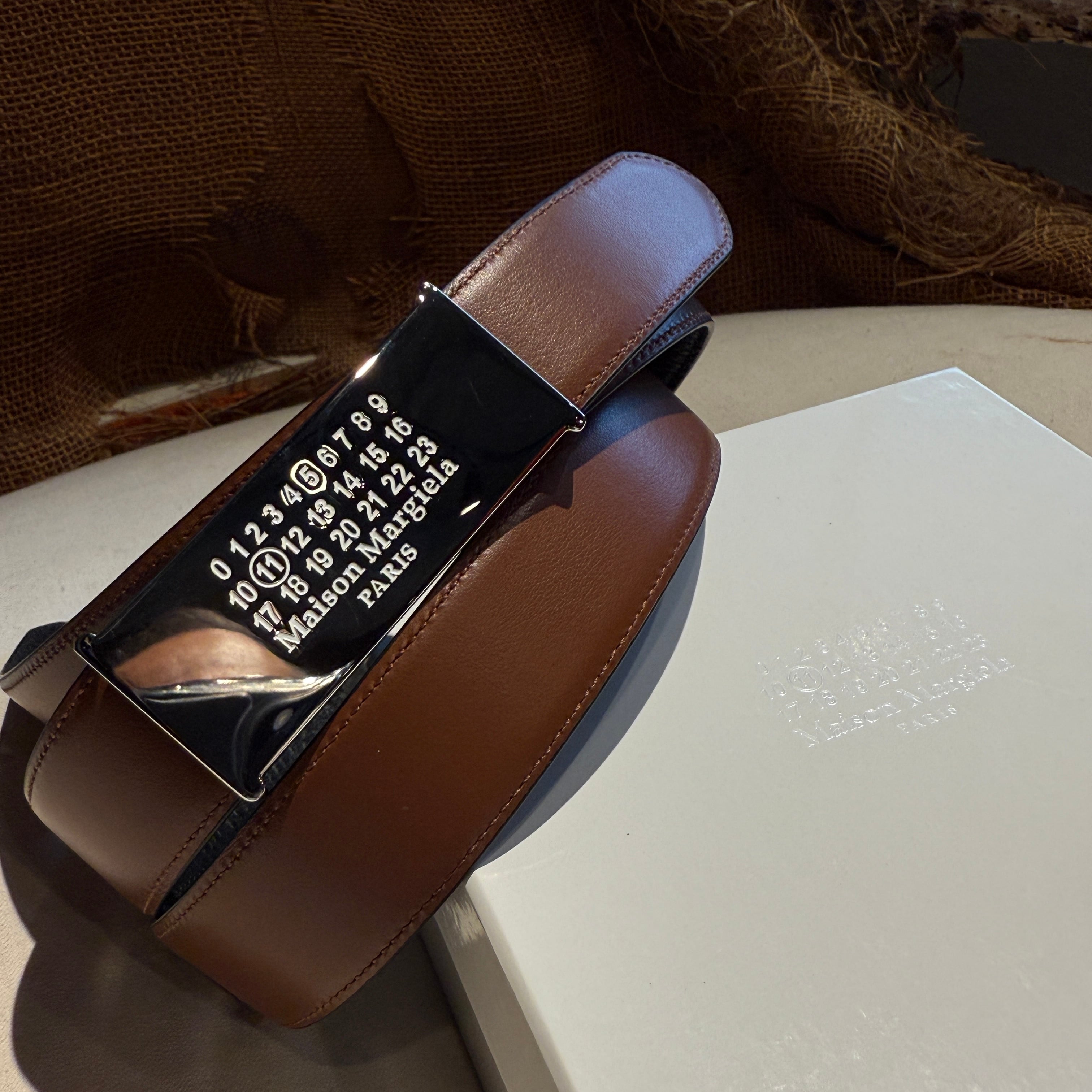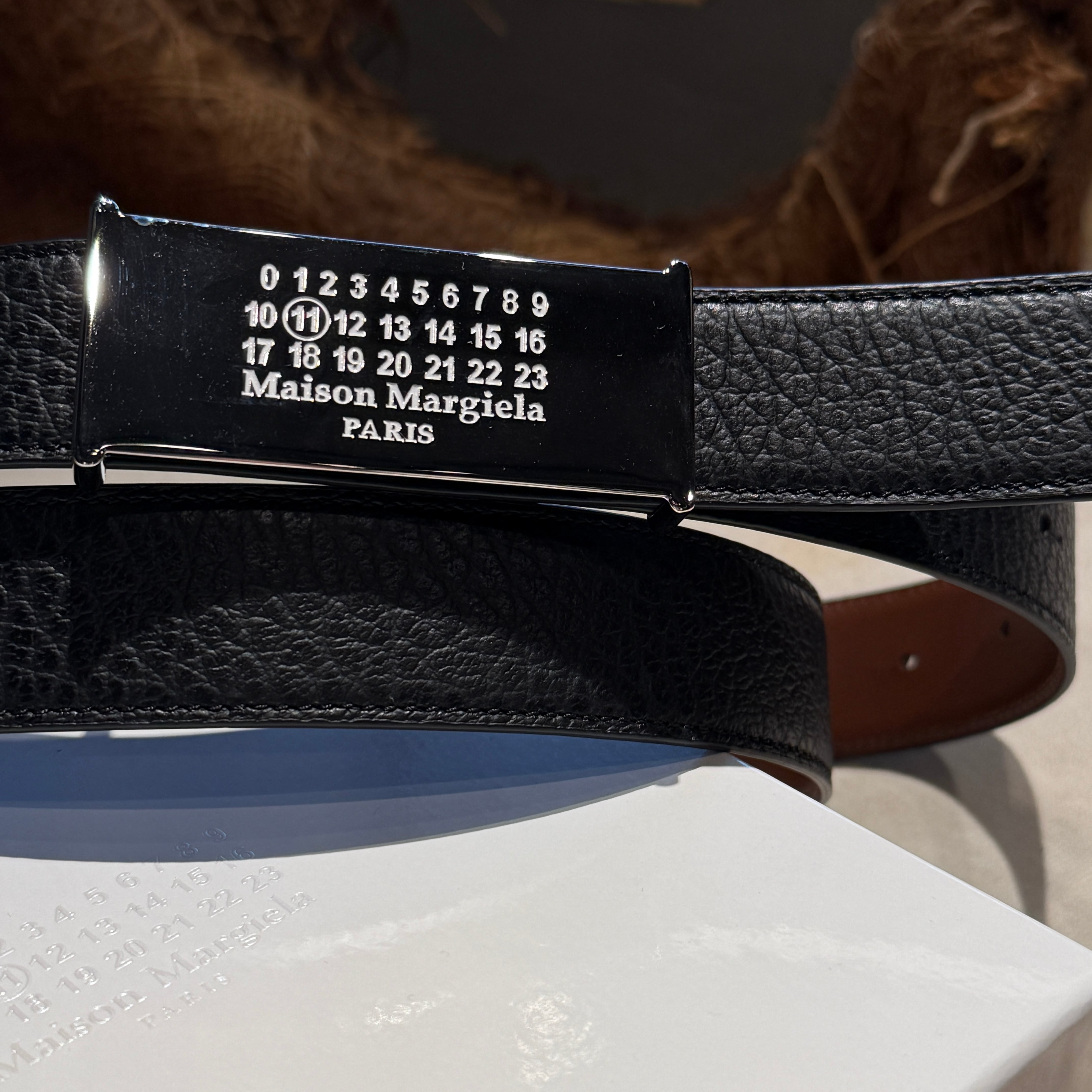 Maison Margiela【メゾン マルジェラ 】リバーシブルロゴバックルレザーベルト (SA3TP0011 P8611 HB112 BLACK/BROWN) .