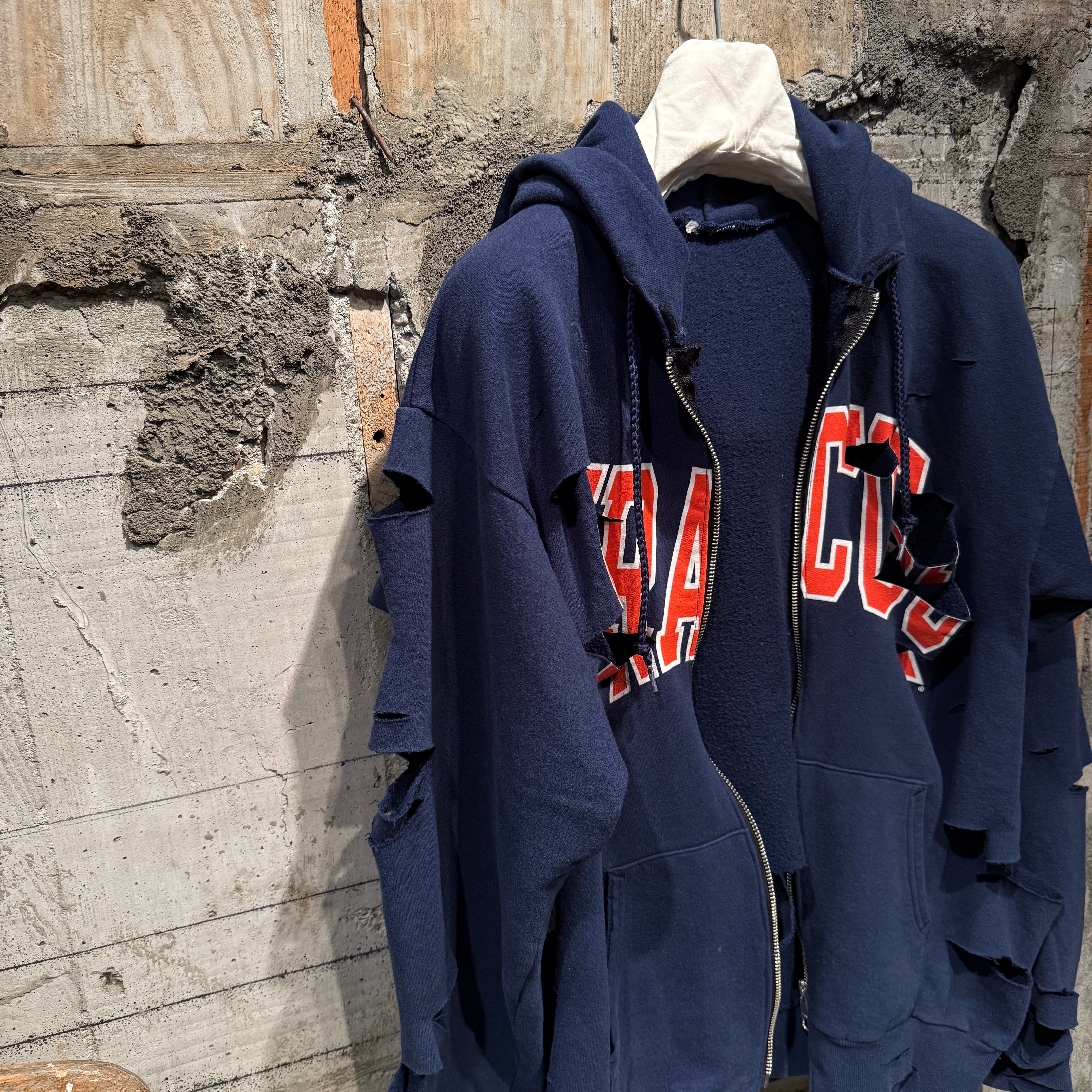 【USED ITEM】ZIP UP CRASH HOODED SWEAT/PRINT【SVRACUSE】(Col: NAVY/ORENGE )