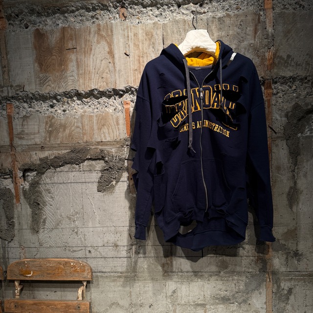 【USED ITEM】ZIP UP CRASH HOODED SWEAT/PRINT【CRANDALL】(Col: NAVY/YELLOW )