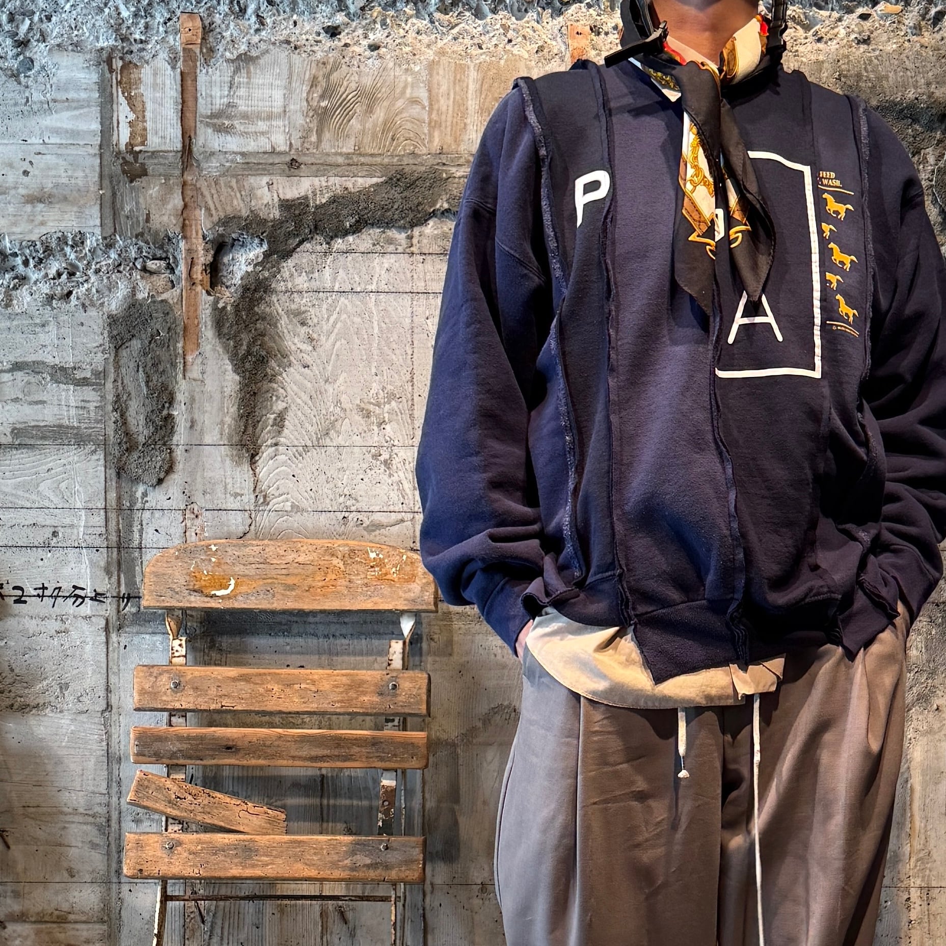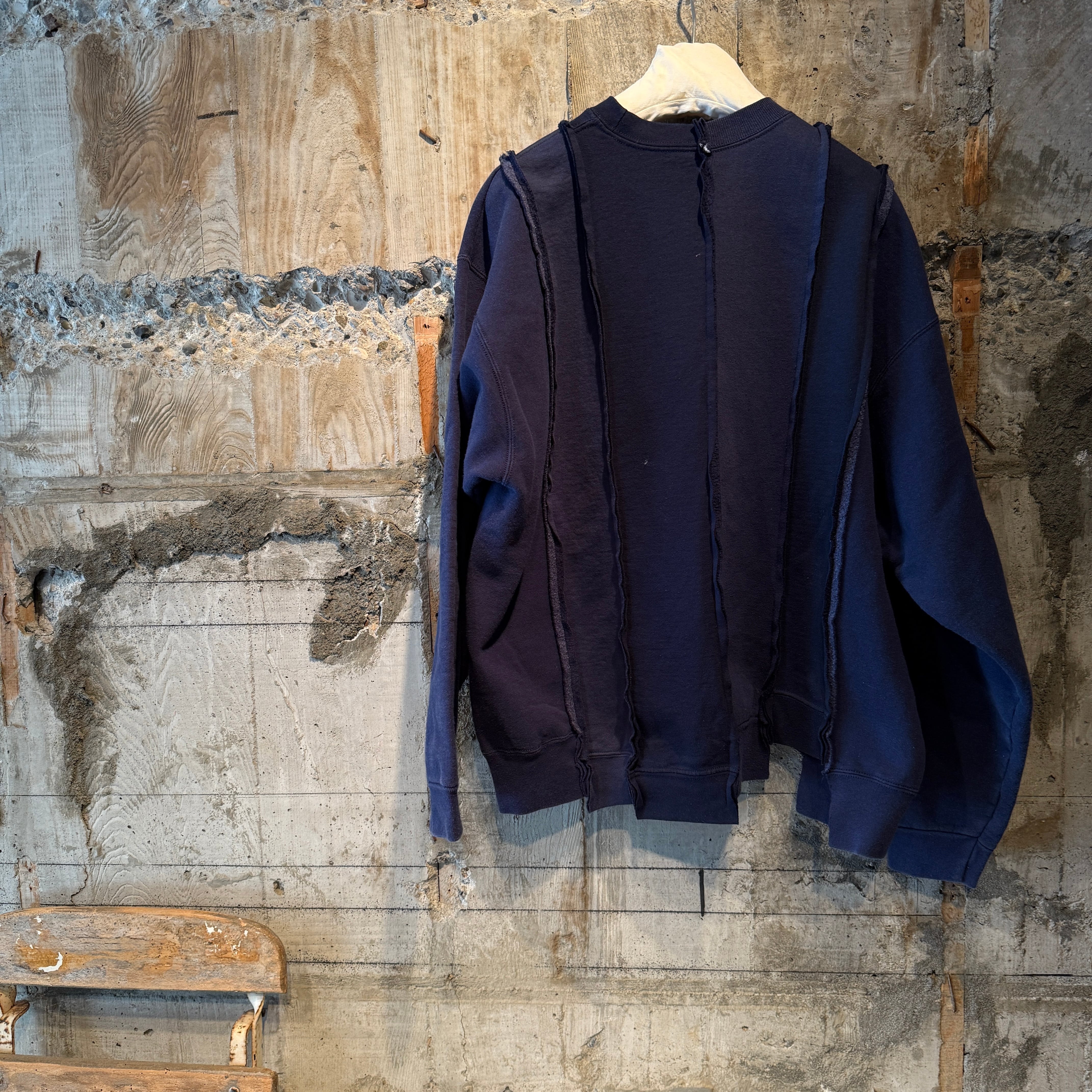 STRIPE PATCHWORK SWEAT/PRINT.(Col: NAVY系 )
