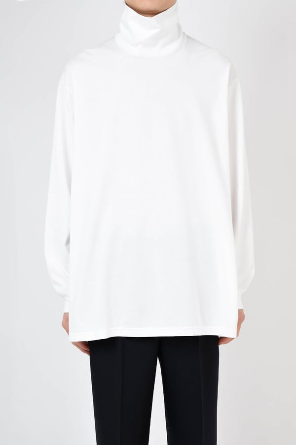 オリジナルの天竺素材を使用した長袖ハイネックスーパービッグTシャツ。