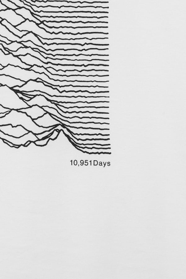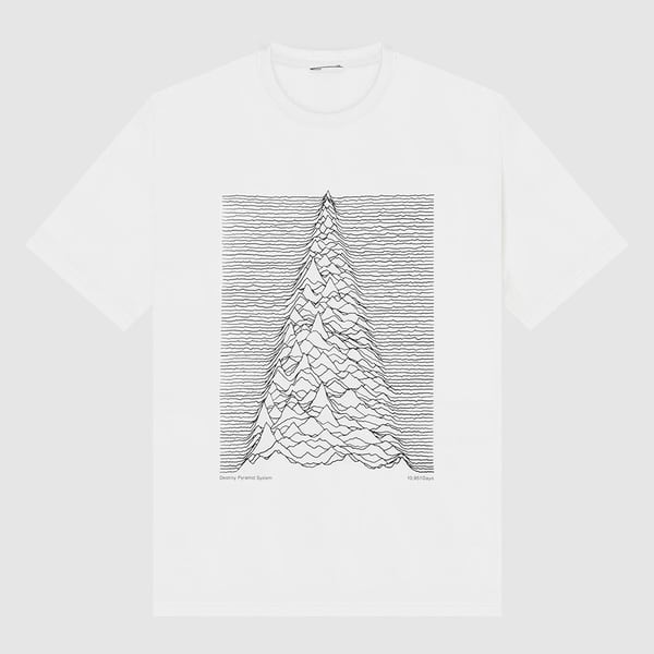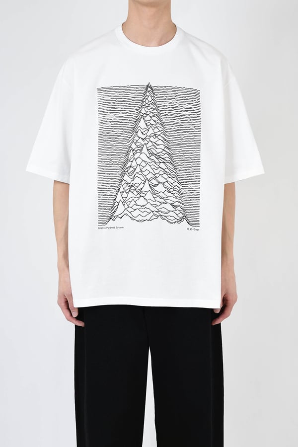 過去のグラフィックをリバイバルしたデザインでピラミッド型に浮かび上がる波形図柄をプリントしています。