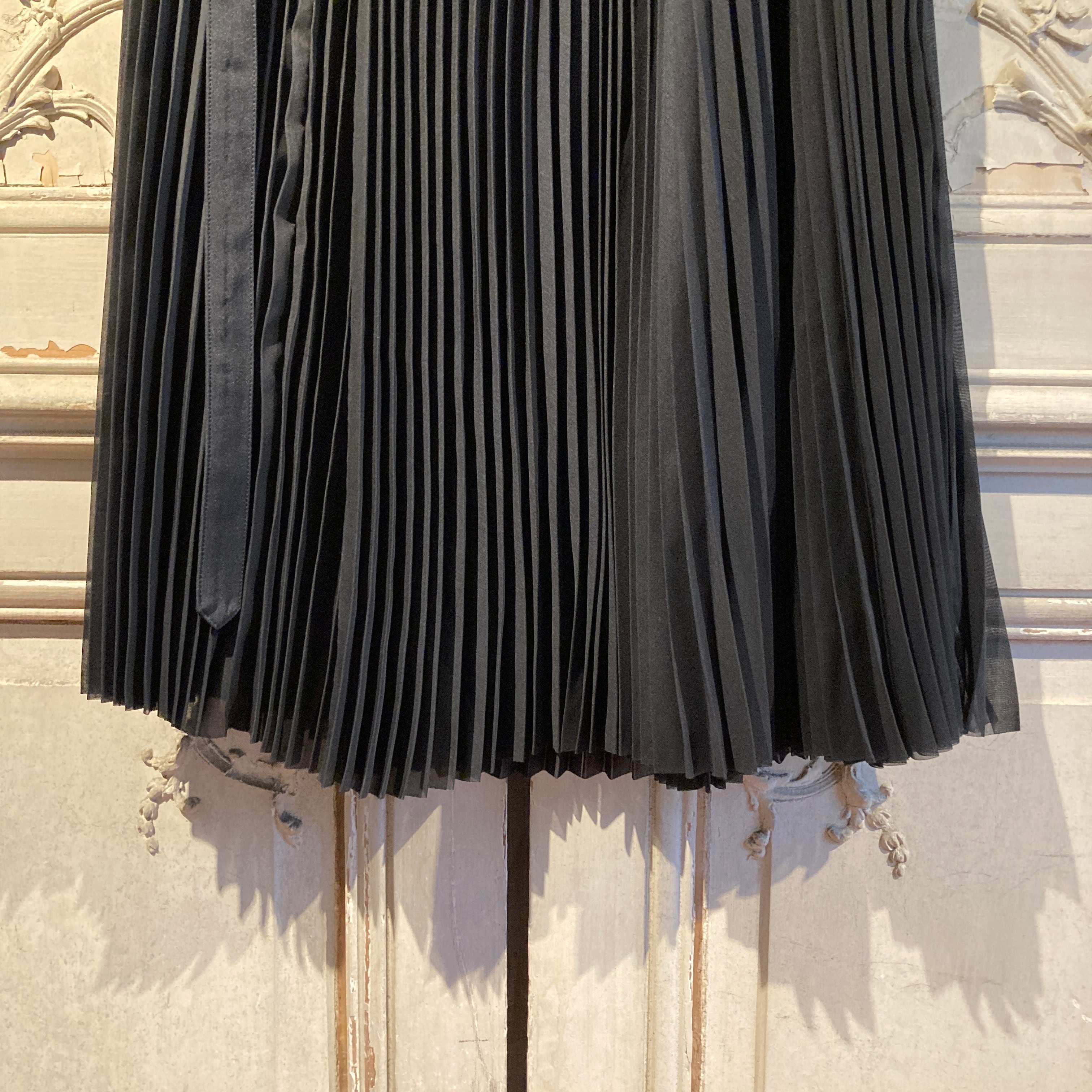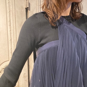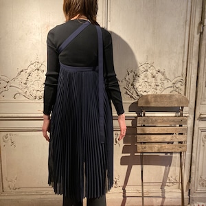 ポリエステルスパン糸を使用したボイル素材を使用したプリーツのラップドレス。
