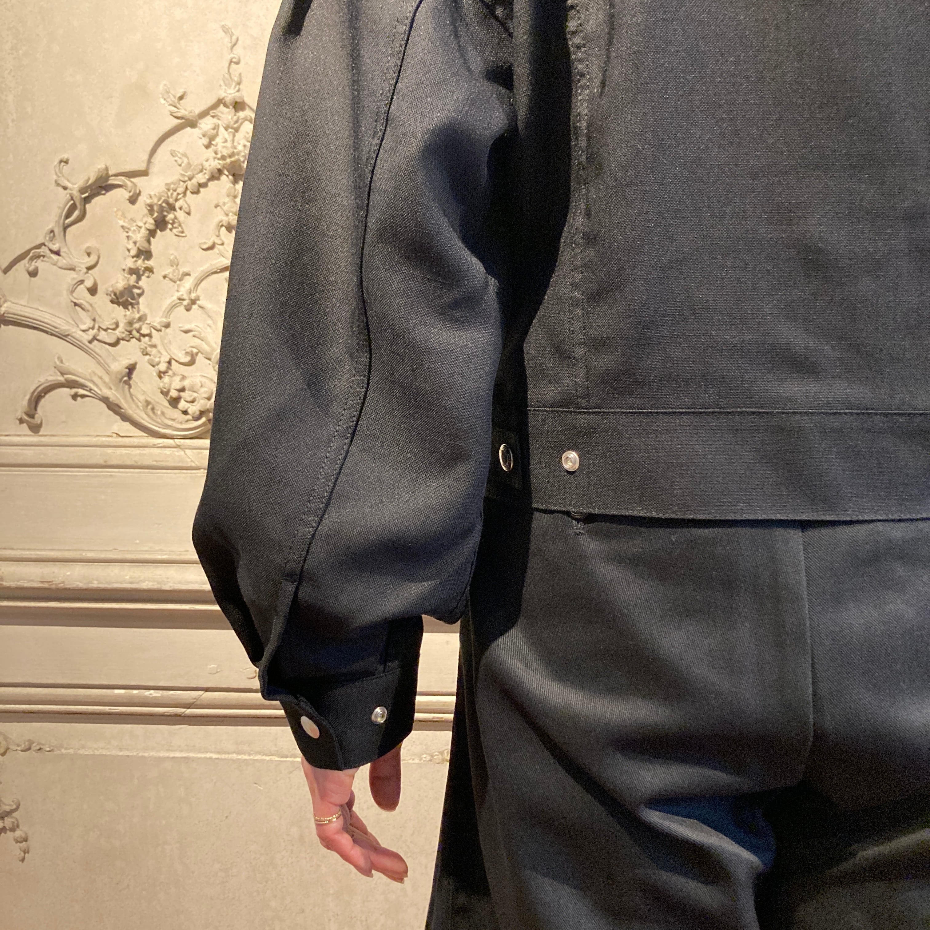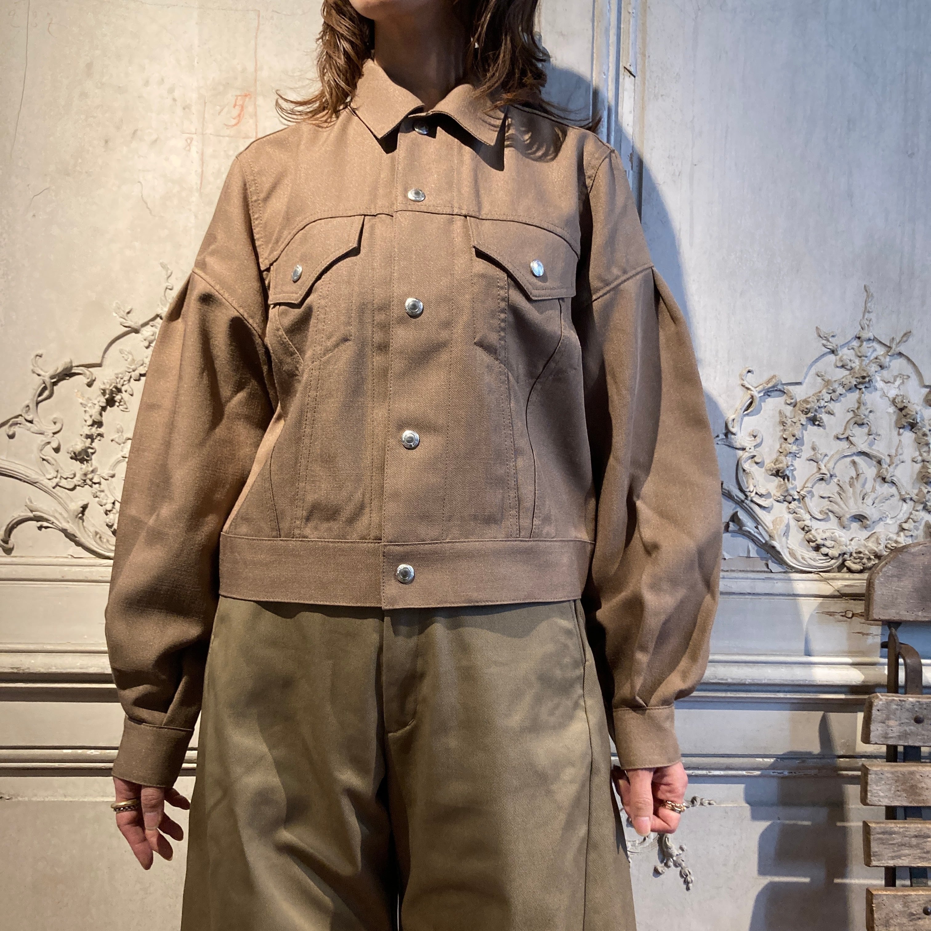 Size : 1 肩幅/38.5cm 袖丈/61cm 袖口幅/10cm 身幅/51cm 着丈/52cm 裾幅/46cm