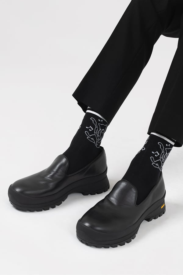 滑らかで上品な表情を持ち、薄手で軽やかな履き心地が特徴です。