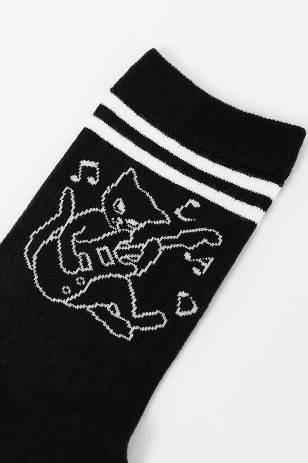 ギターキャット柄のハイゲージリブソックス。
