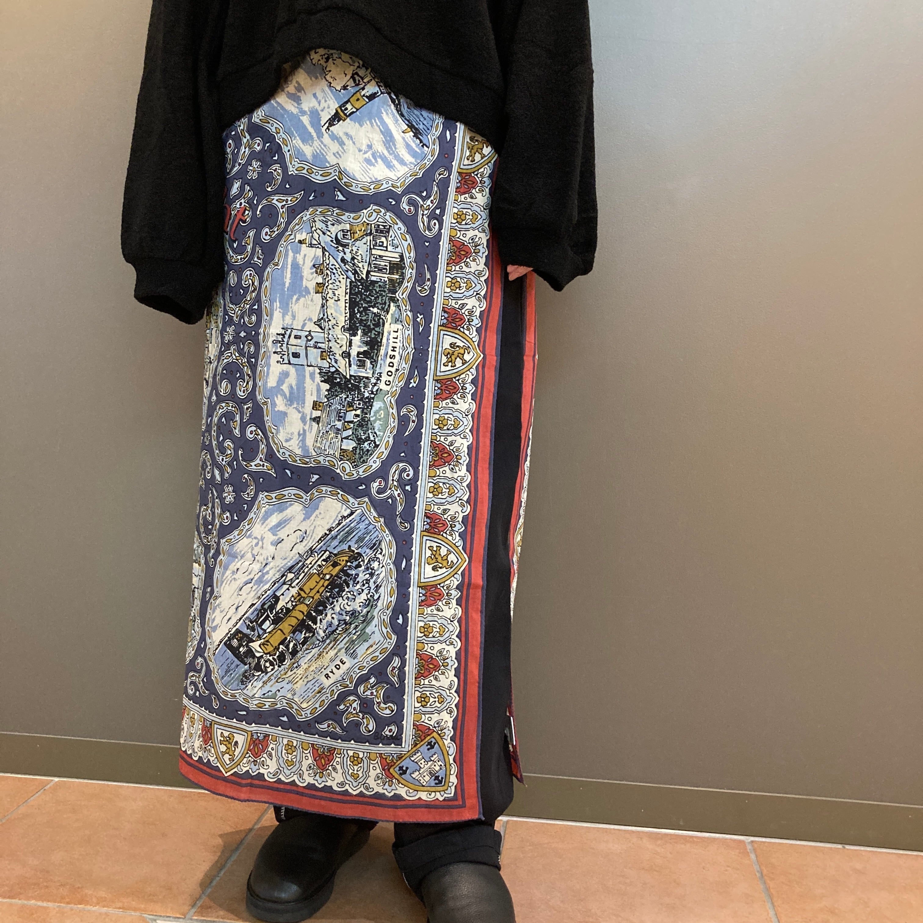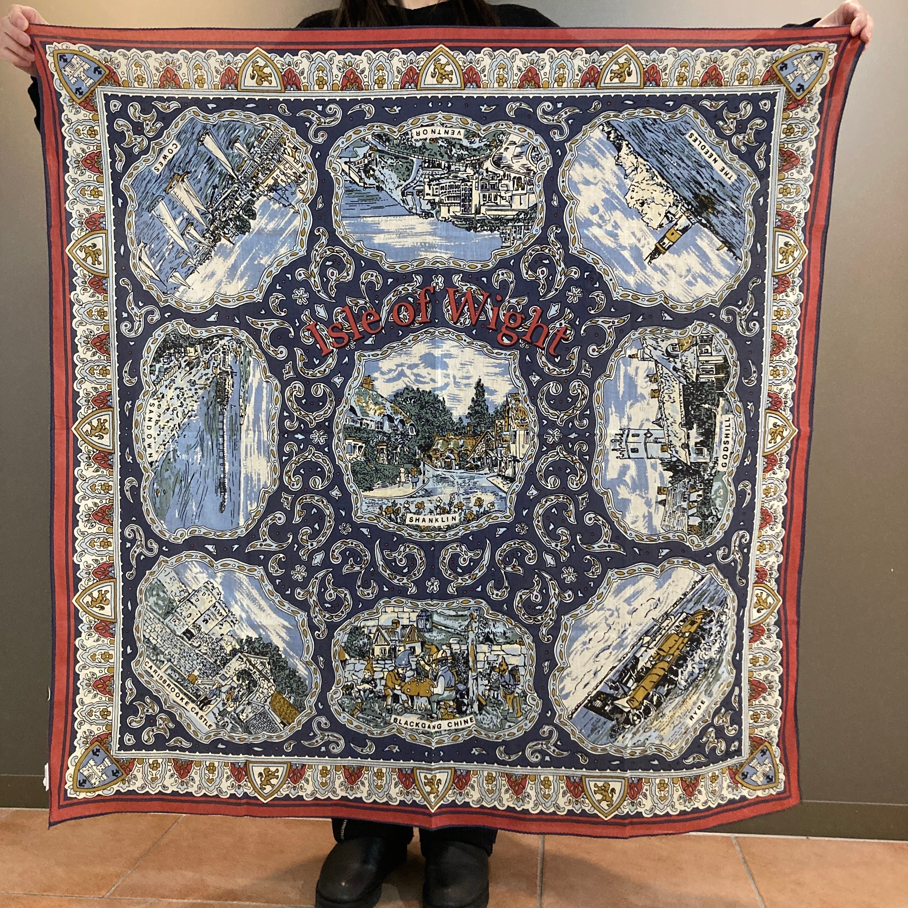 ワイトのヴィンテージ風マッププリントのビッグスカーフ。