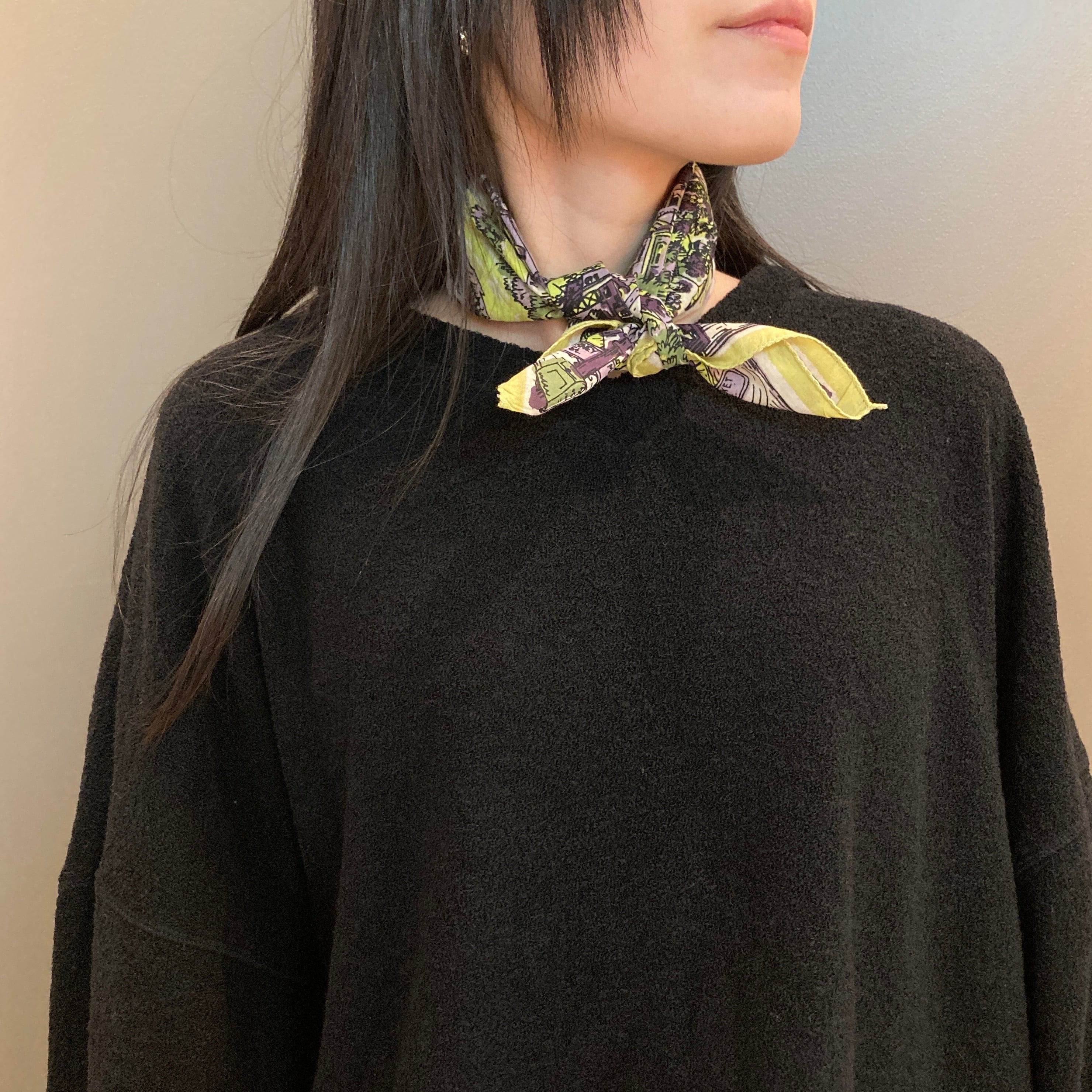 BINDUのバンダナは首に巻いた時の心地の良い風合いにこだわり、さらっとした雰囲気のあるインド綿を使いプリントも手捺染で仕上げるなど、味わい深い一枚を追求しています。その為裁断から仕上げまでの工程を手作業で行い多少の個体差はそれぞれの表情として捉えています。個々に違った味わいをお楽しみ下さい。