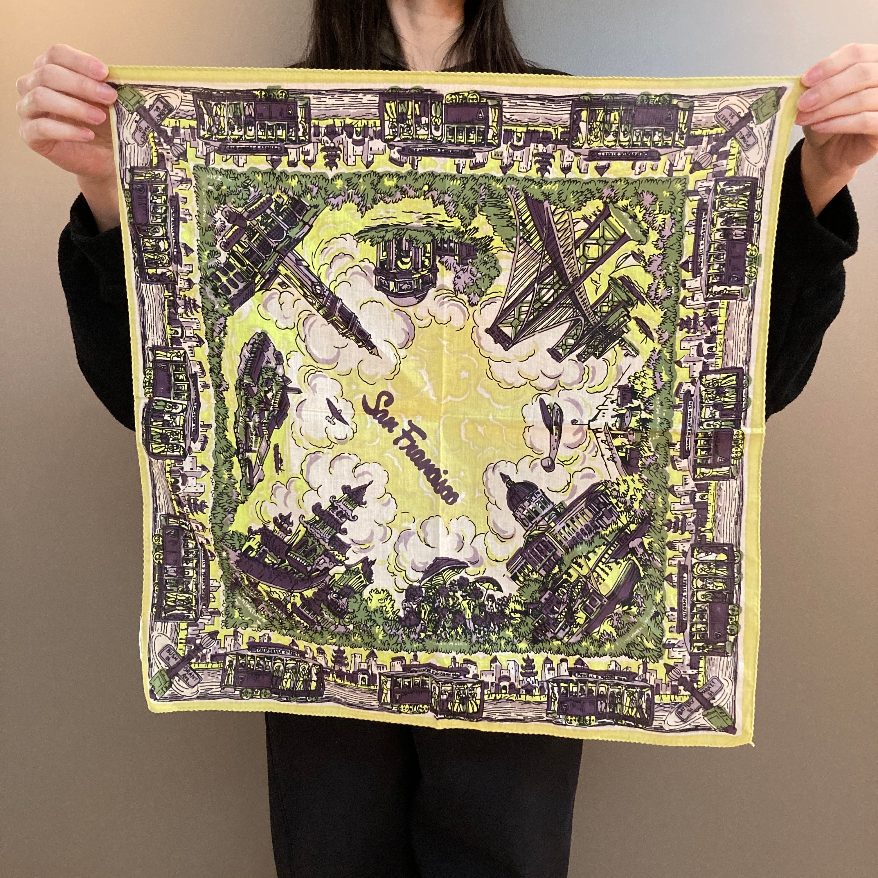 サンフランシスコのヴィンテージ風マッププリントのバンダナ。