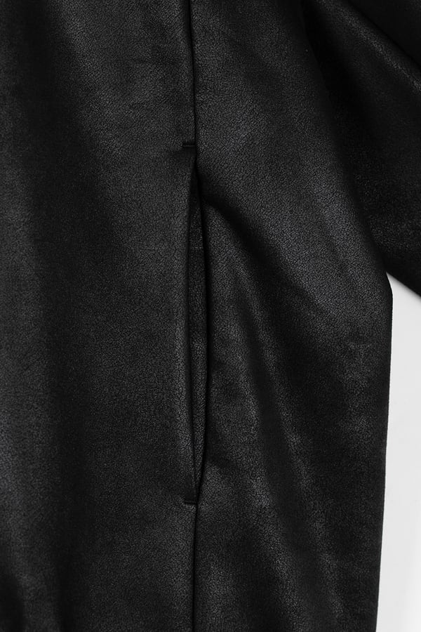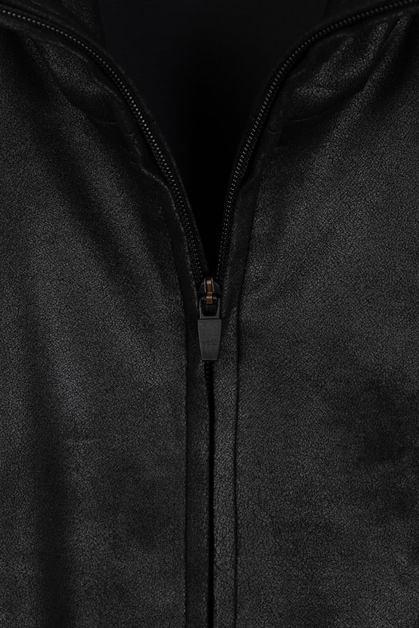 STRETCH FAUX LEATHER JERSEY TRACK JACKET.
