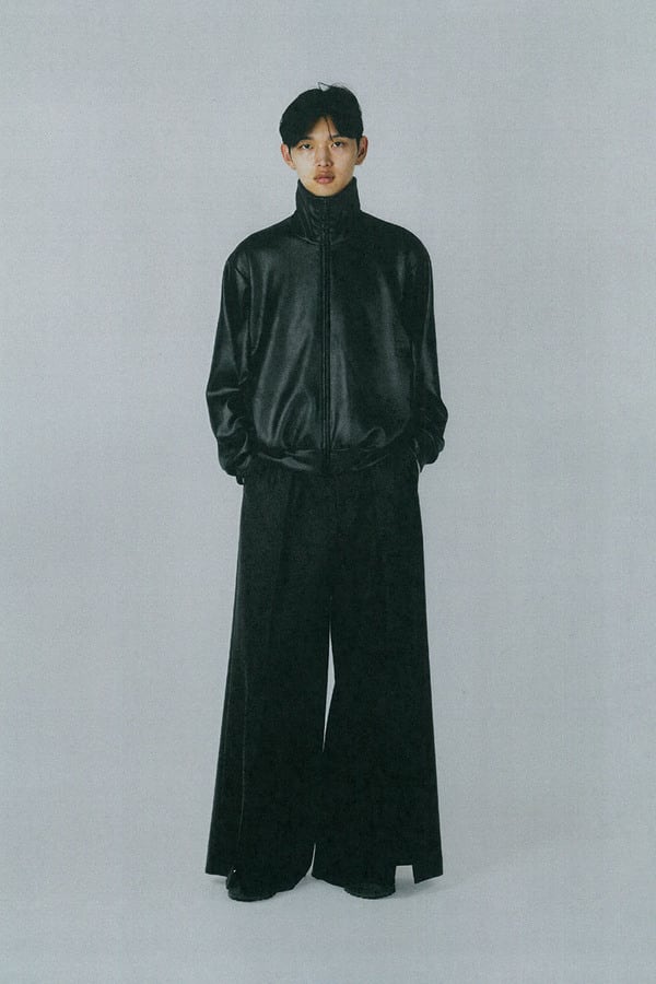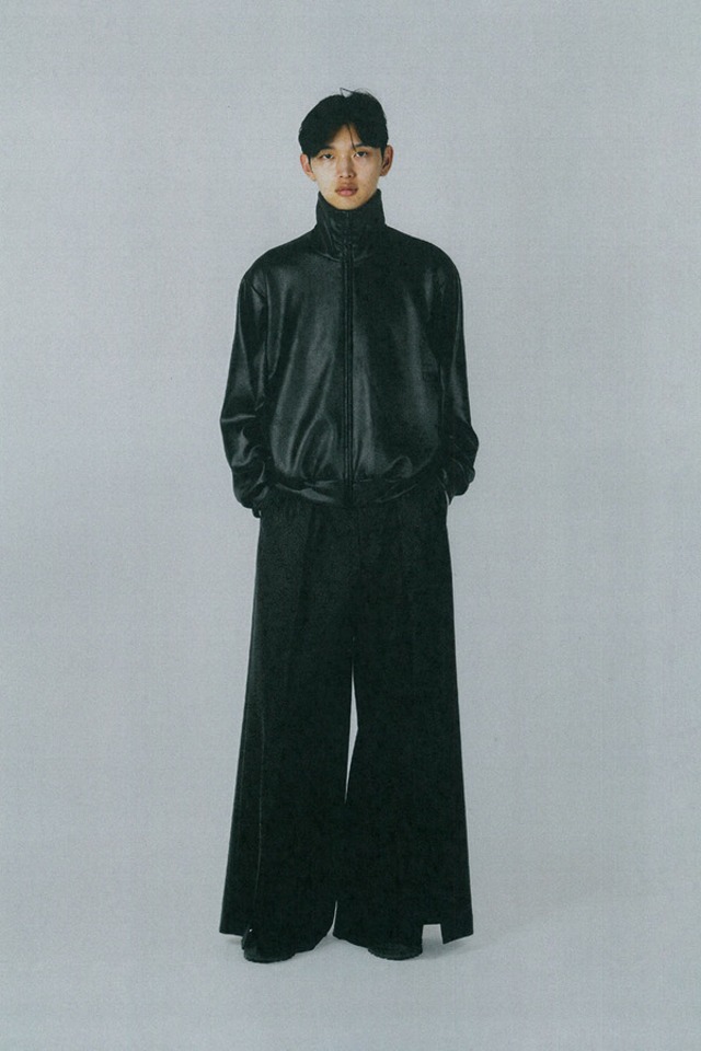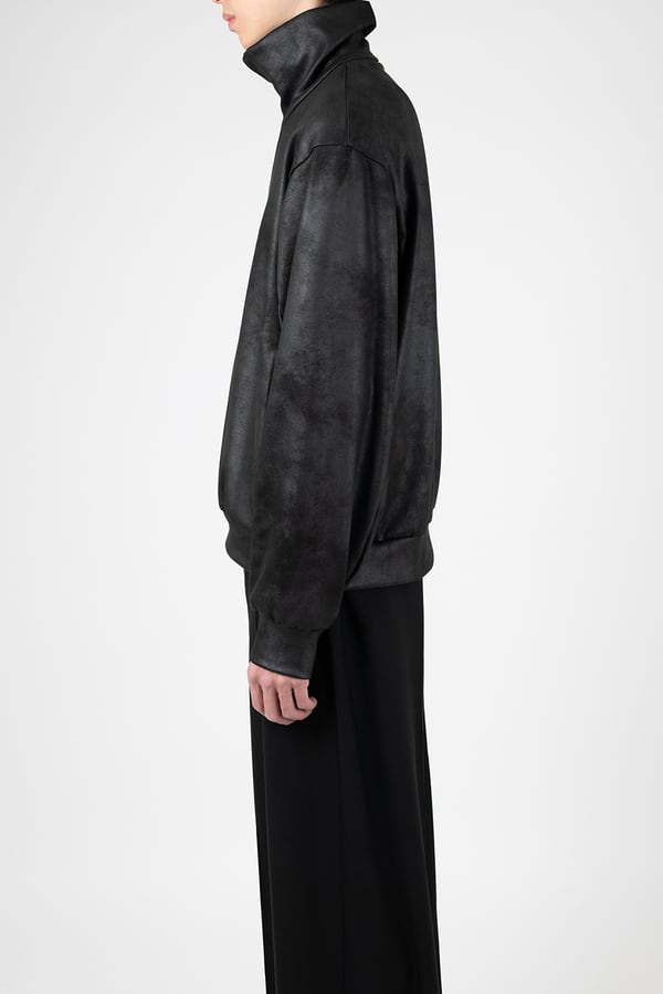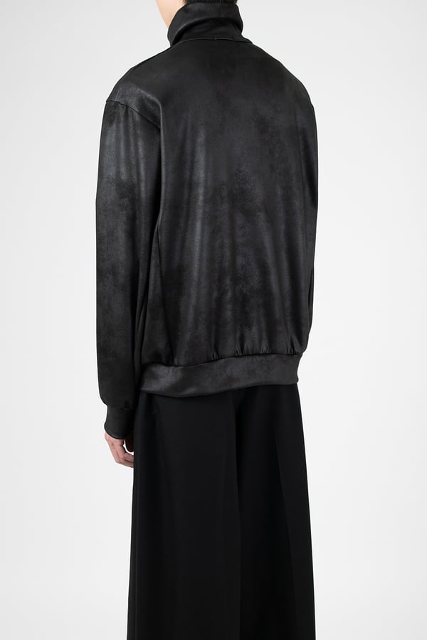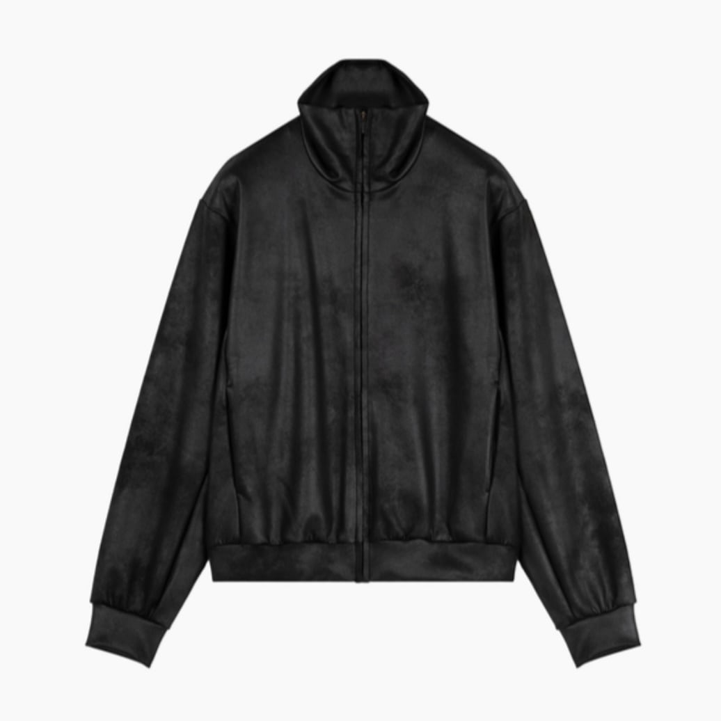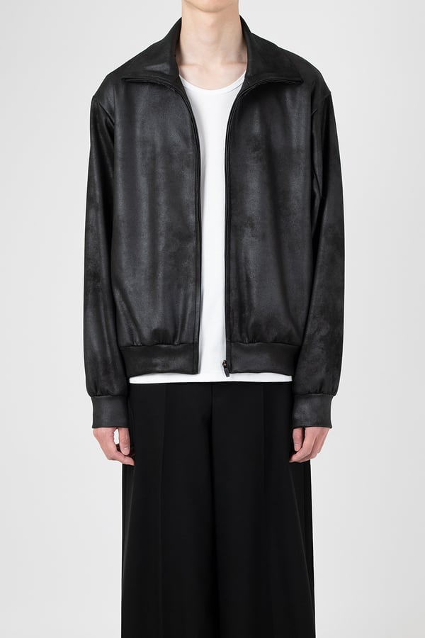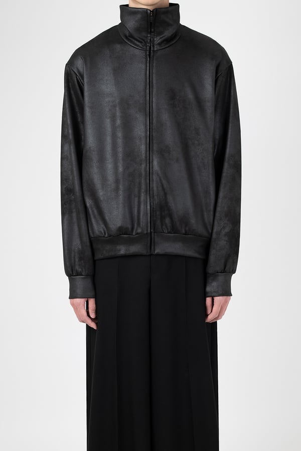 レザーライクなジャージ素材を使用したトラックジャケット。