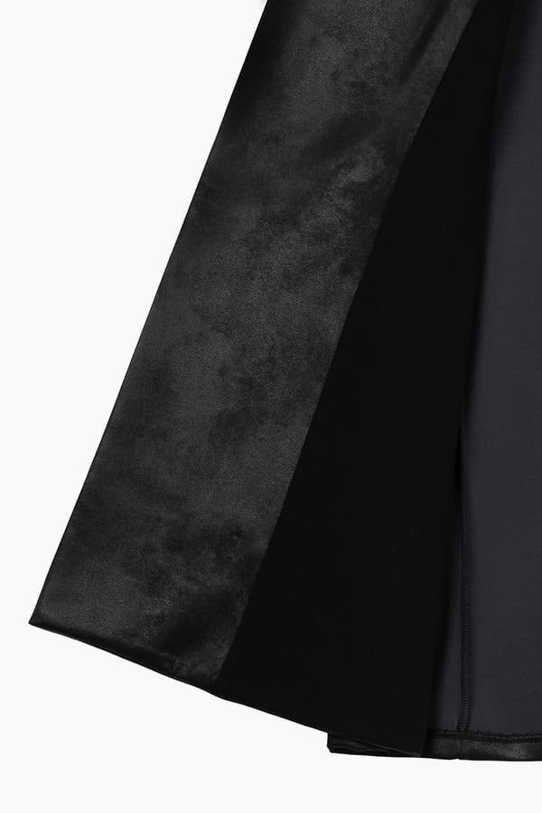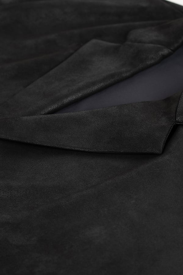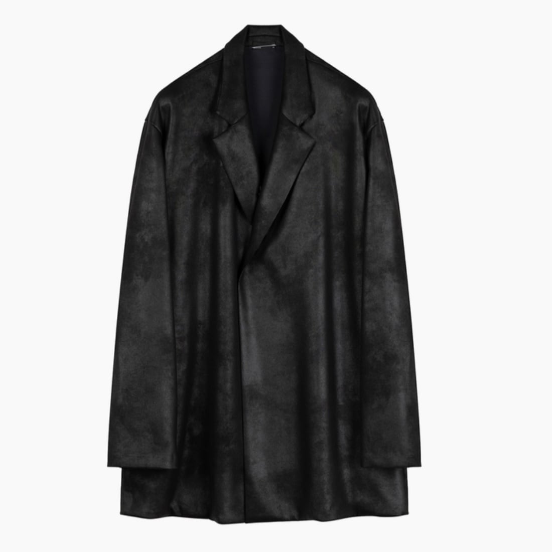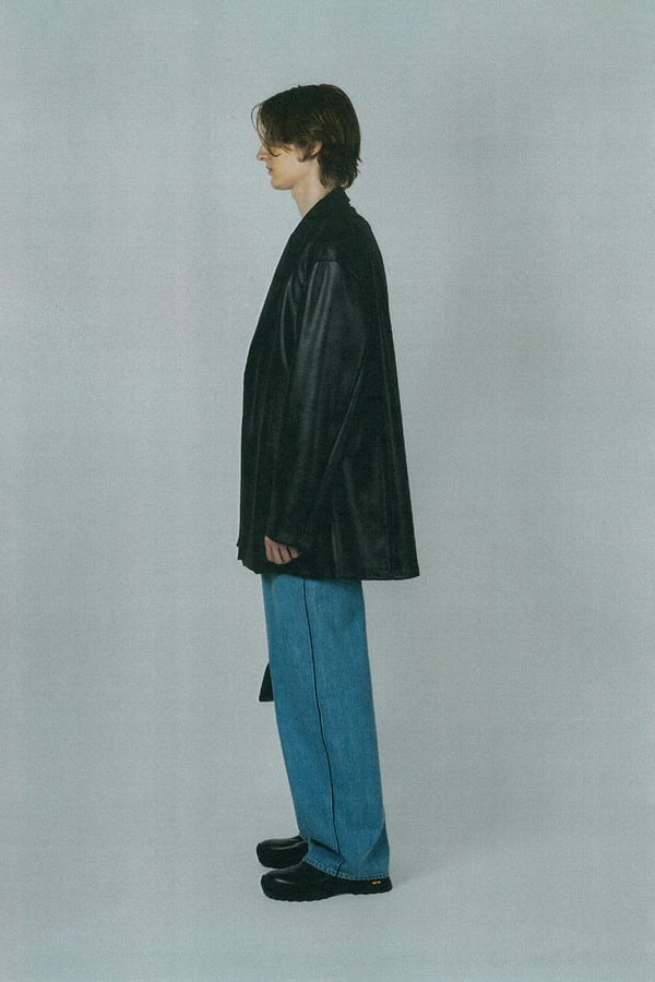 レザーライクなジャージ素材を使用したガウンジャケット。