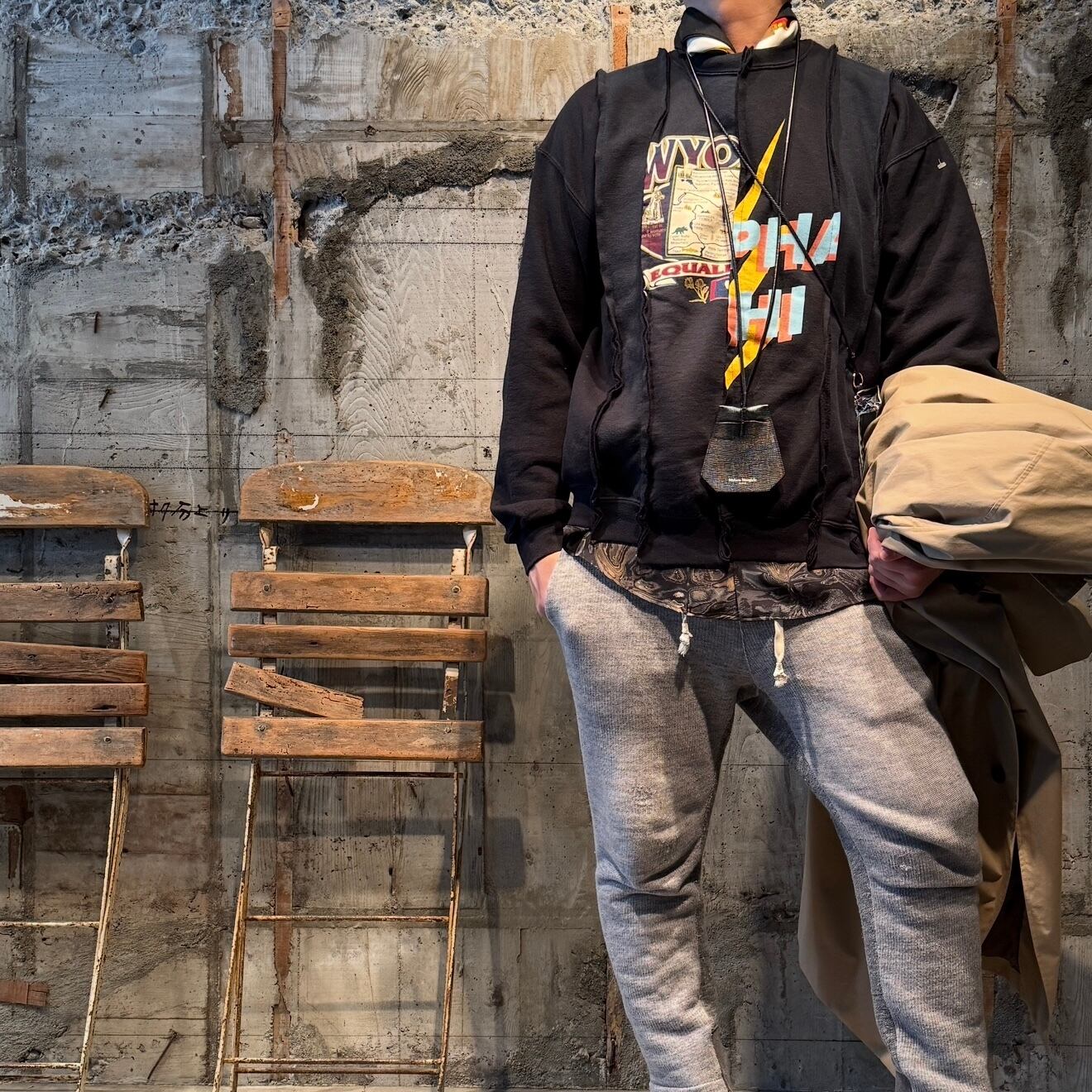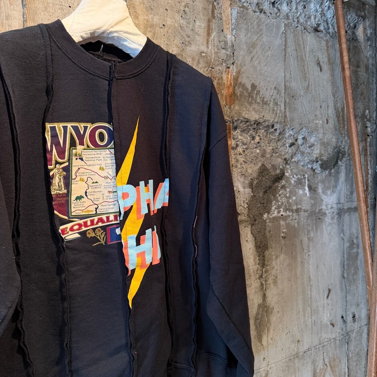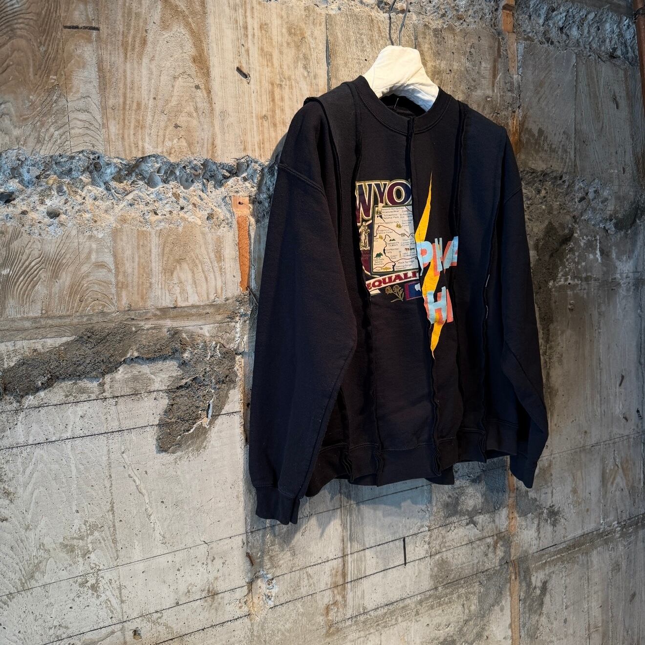 【USED ITEM】STRIPE PATCHWORK SWEAT/PRINT.(Col: BLACK系 )