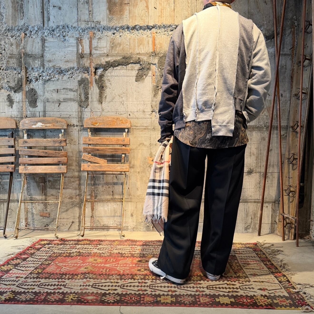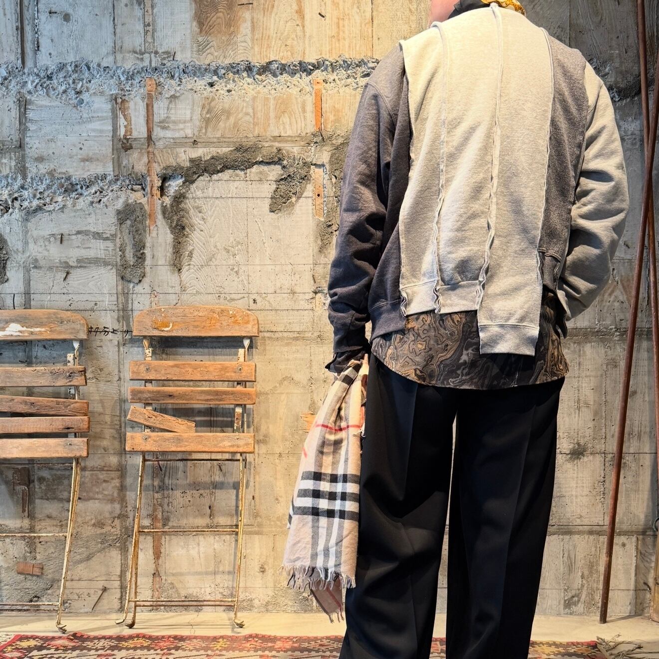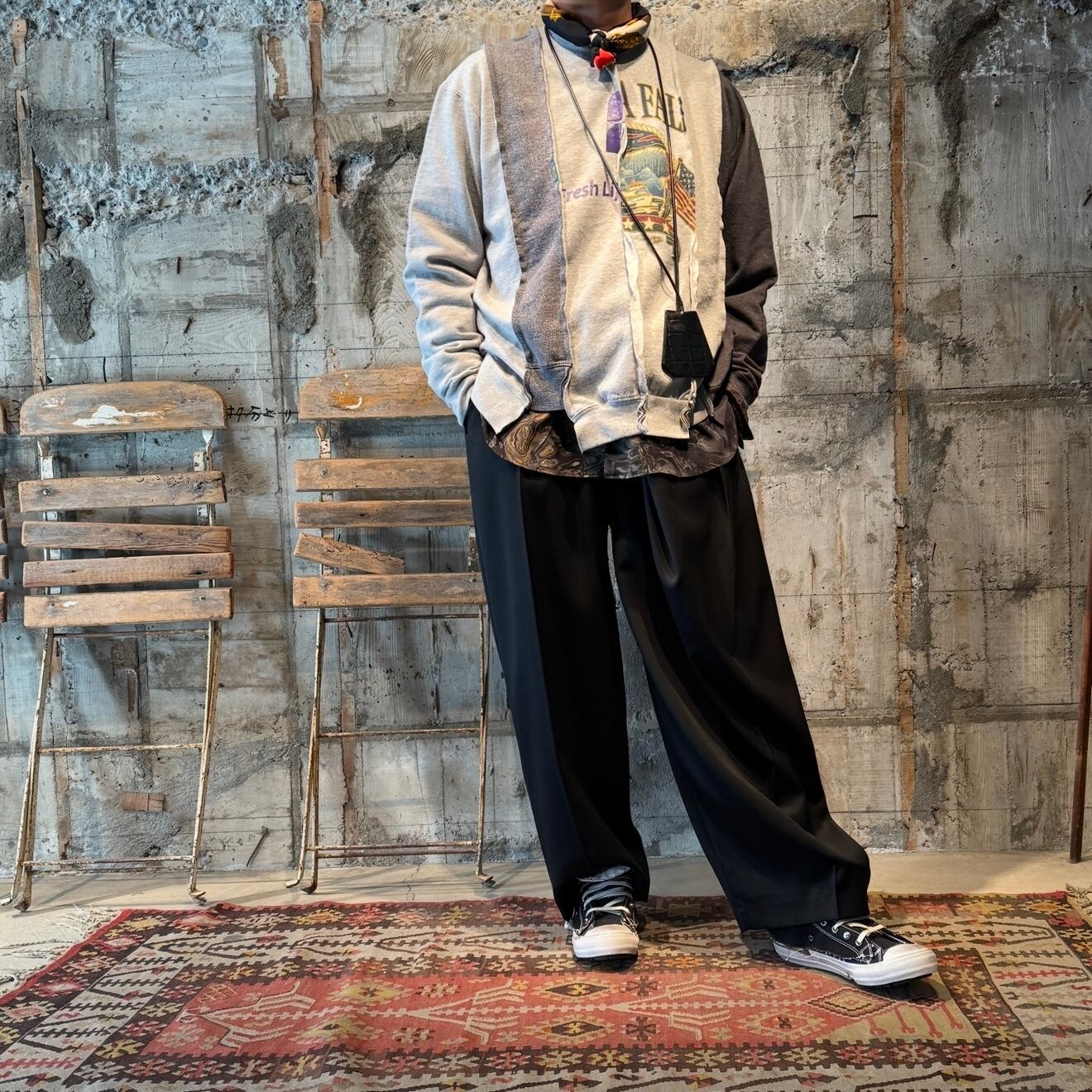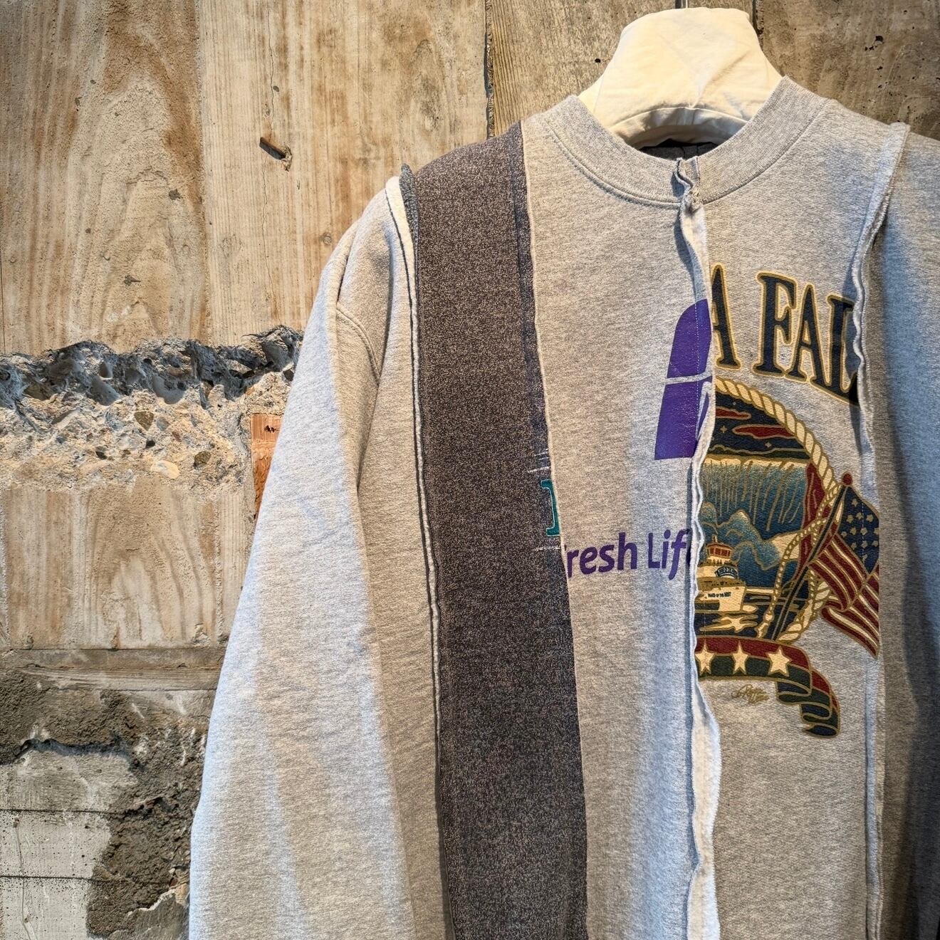 【USED ITEM】STRIPE PATCHWORK SWEAT/PRINT.(Col: GRAY系MIX )
