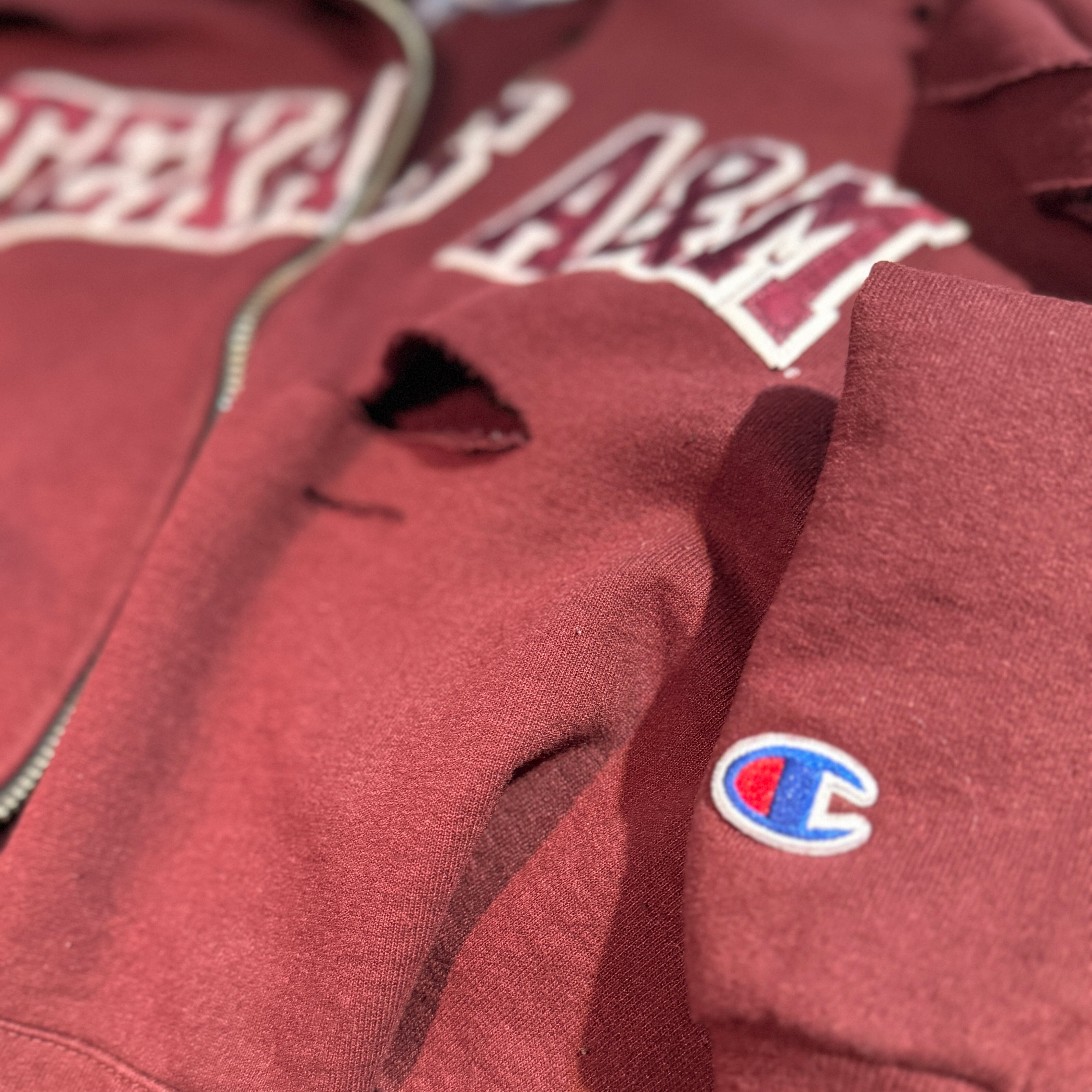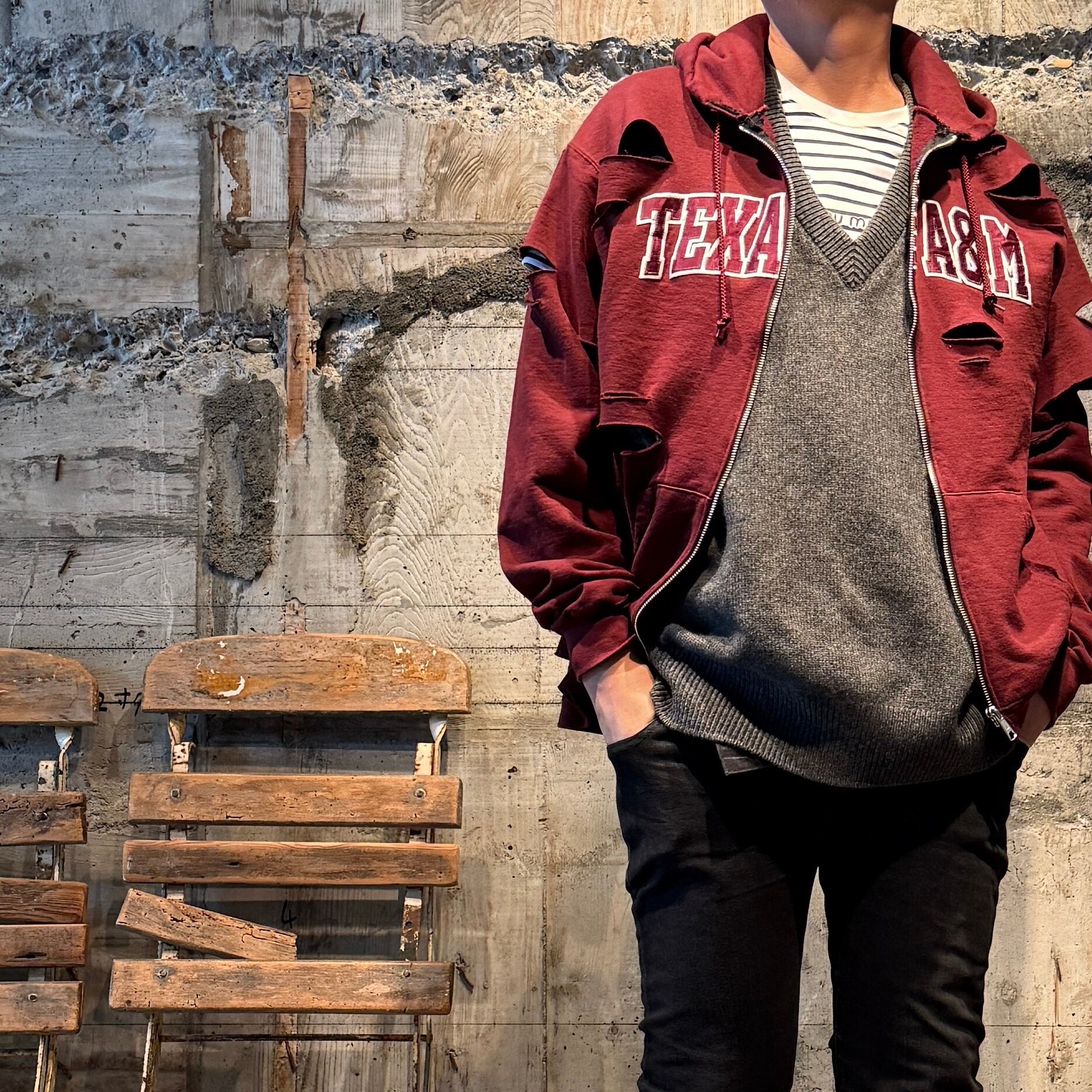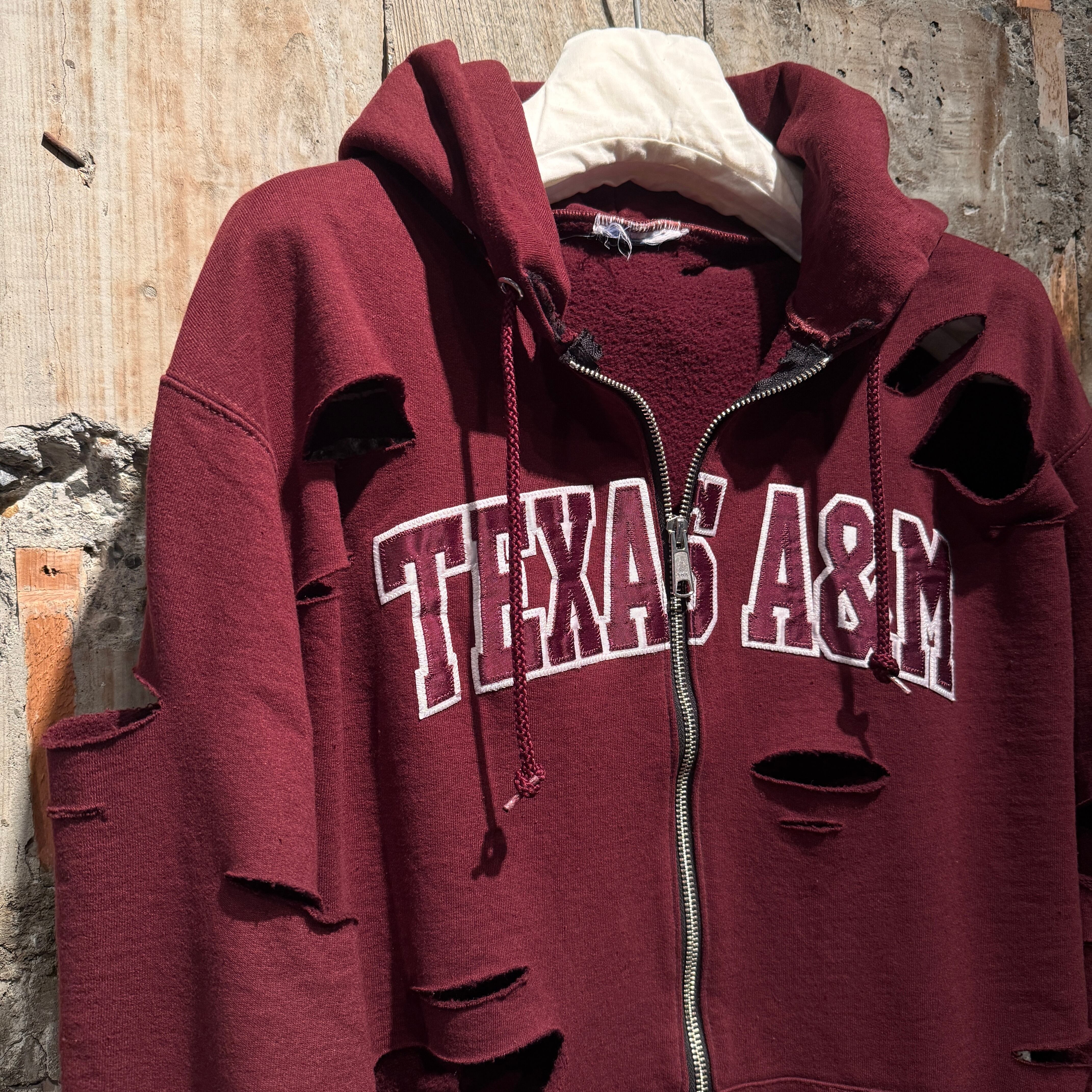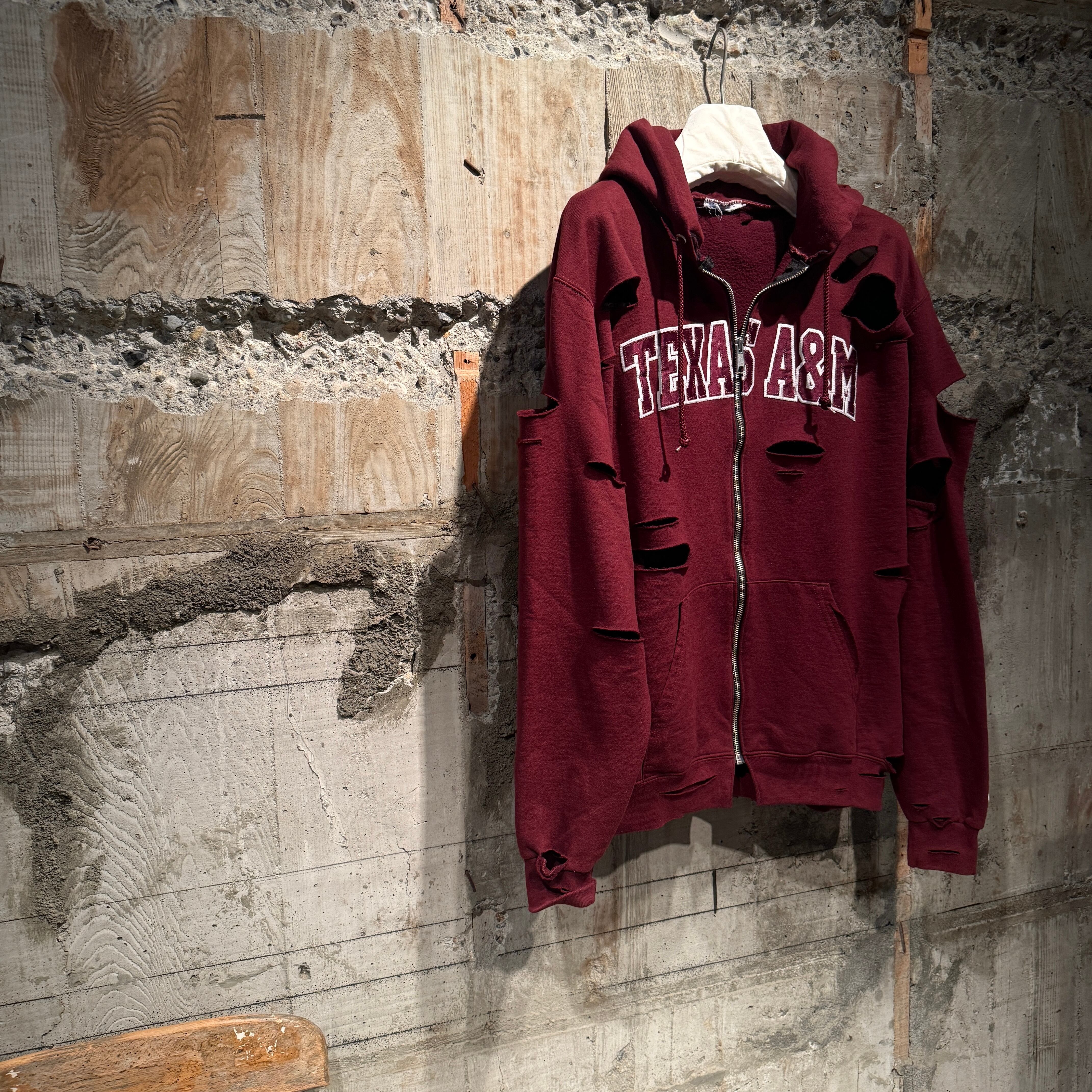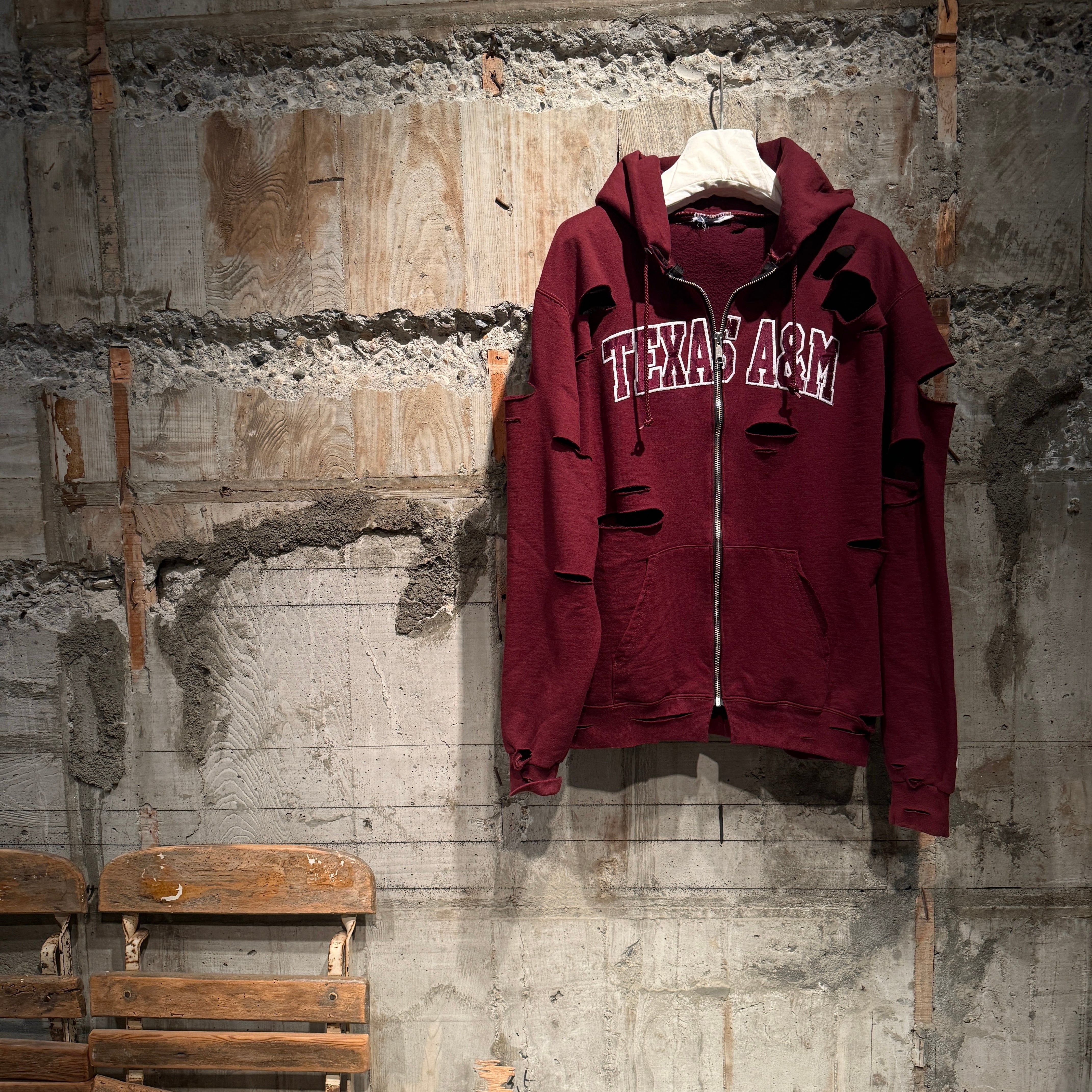 【USED ITEM】ZIP UP CRASH HOODED SWEAT/PRINT【TEXAS A&M】 Col: BURGUNDY .