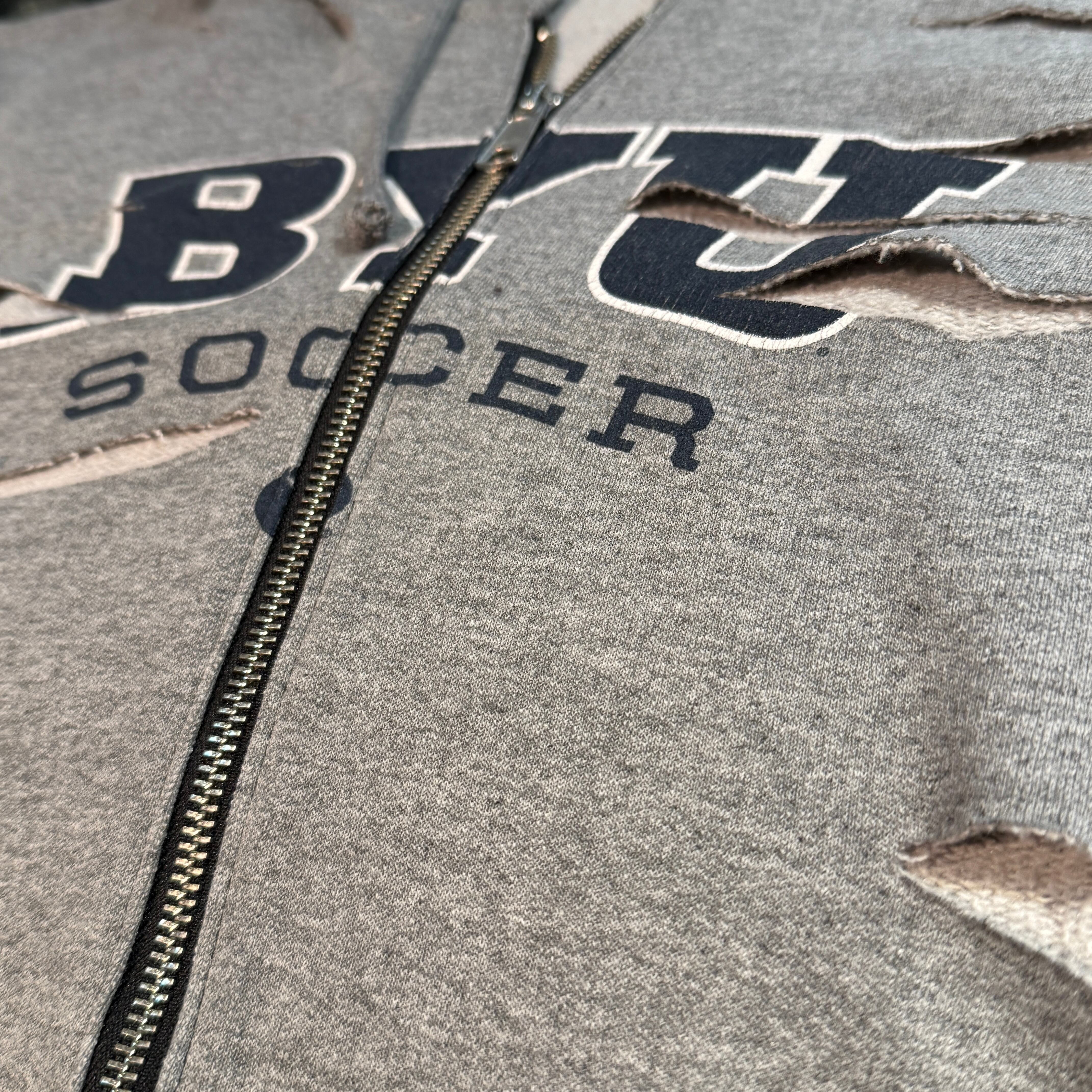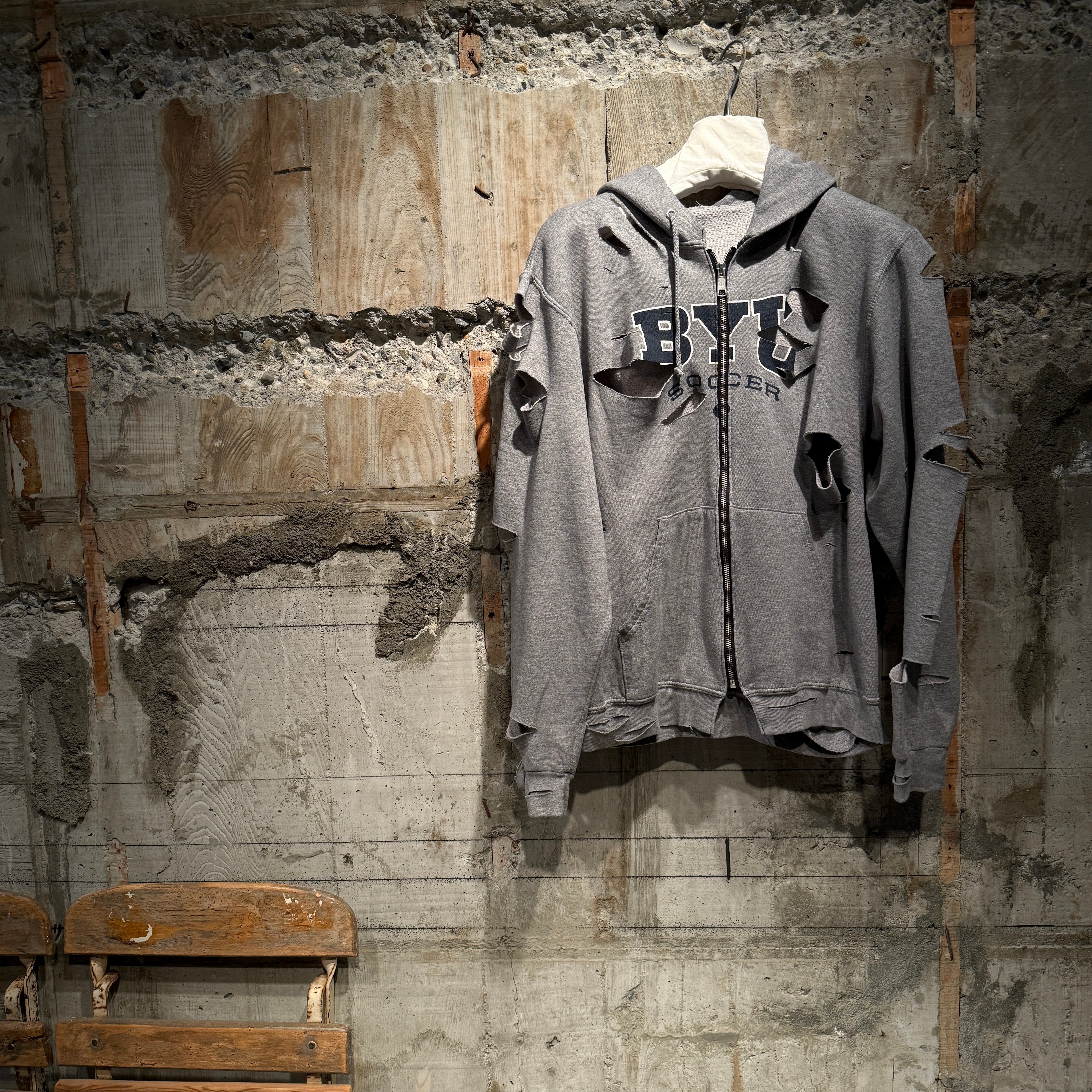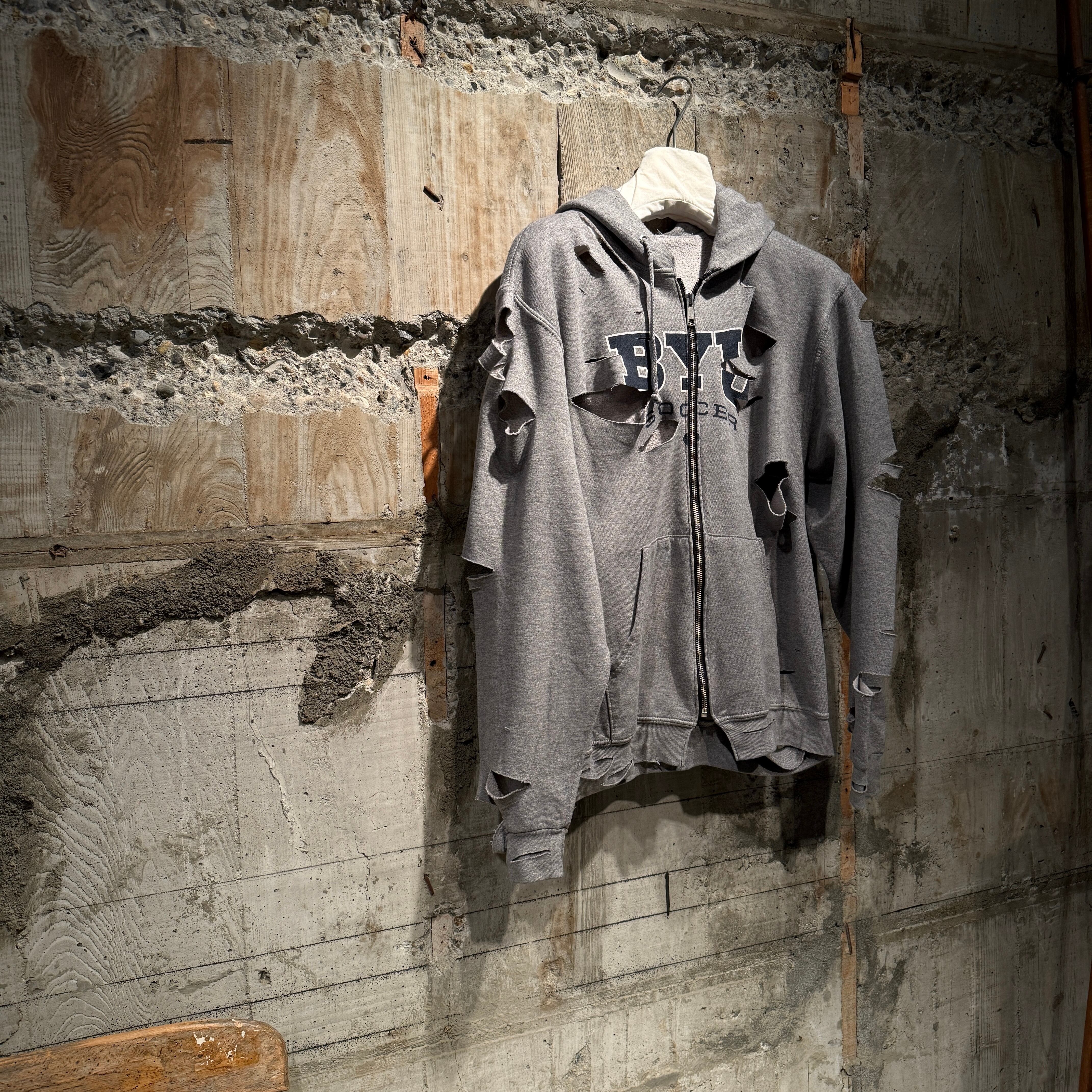 【USED ITEM】ZIP UP CRASH HOODED SWEAT/PRINT【BYU】 COL:GRAY/ NAVY