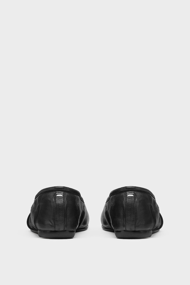 Tabiバレリーナは、メゾンのアーカイブシューズをもとにデザインされています。柔らかなナッパレザーを使用し、折り目・ベース・シームに手作業で施したユーズド加工が職人的なヴィンテージ感を生み出します。15世紀の日本の足袋に着想を得たTabiの割れつま先を備え、1989年のデビューコレクションで初登場したヘリテージコードです。シーズンごとに再解釈されるアヴァンギャルドな定番モデルです。