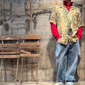 レーヨンレオパードハーフスリーブシャツ.