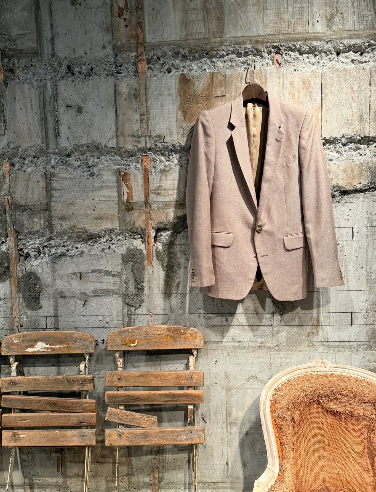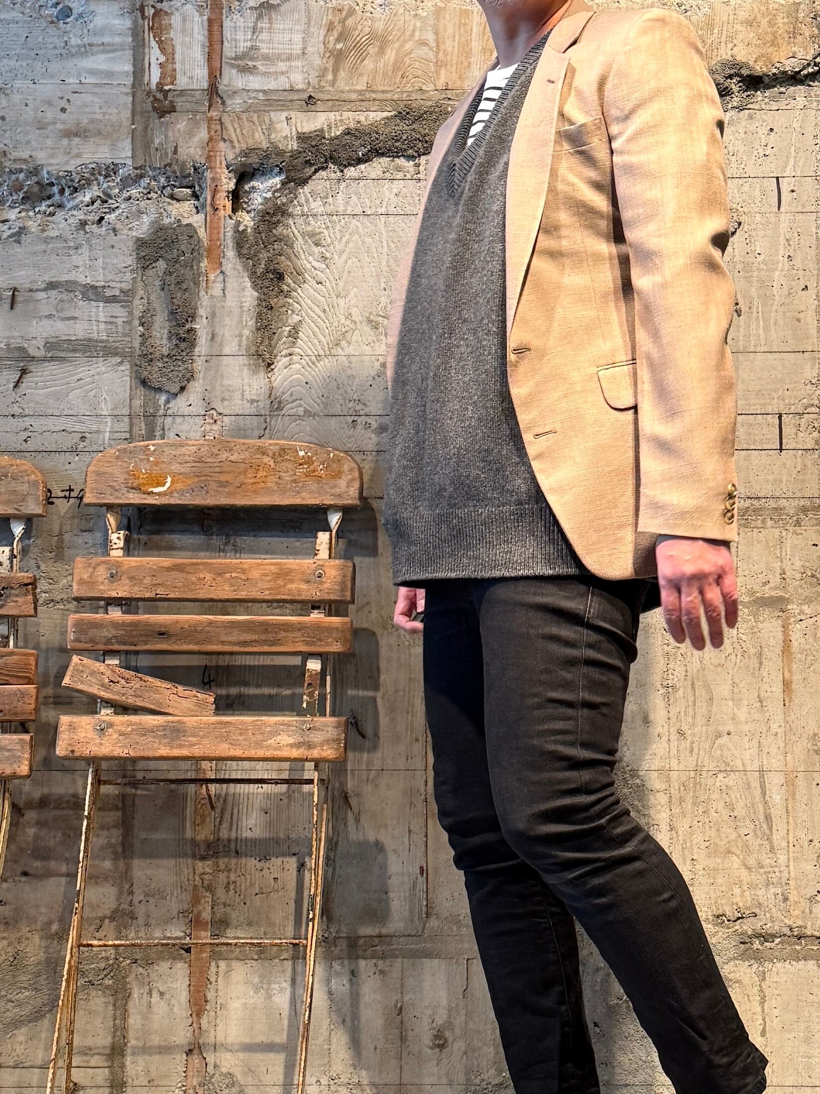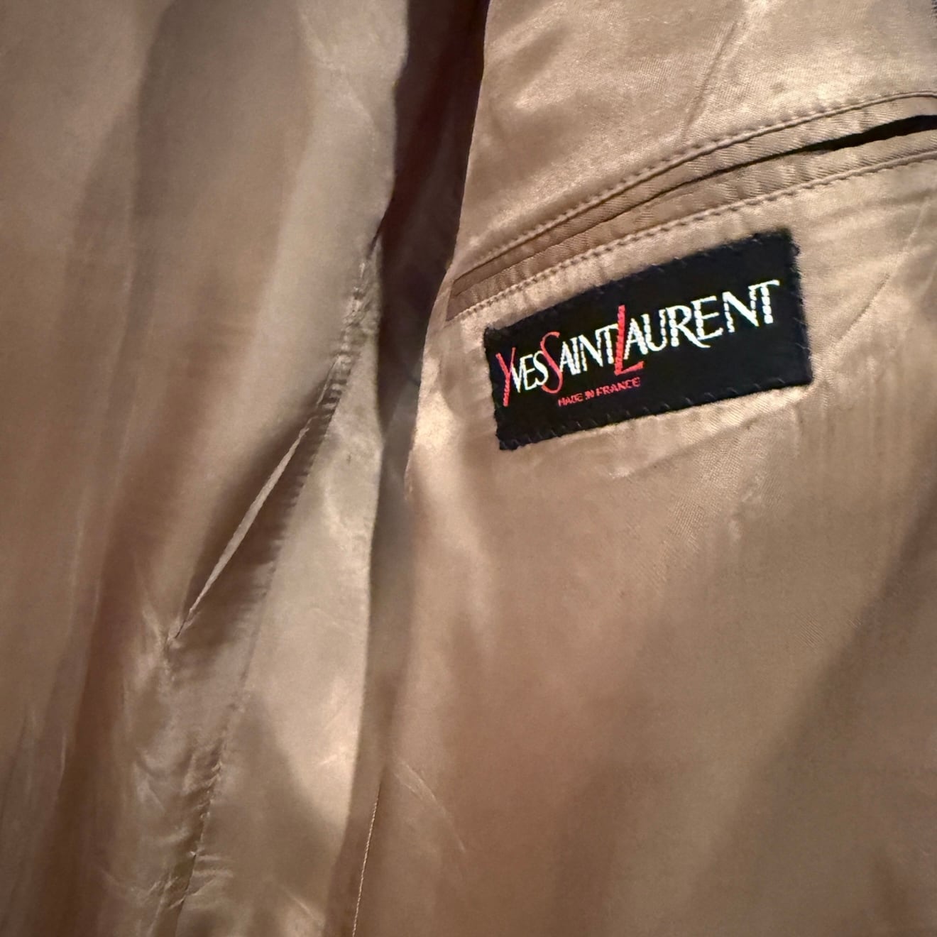 【USED ITEM】【Yves Saint-Laurent】ノッチドラペル2Bジャケット MADE IN FRANCE. Col: BEIGE系.