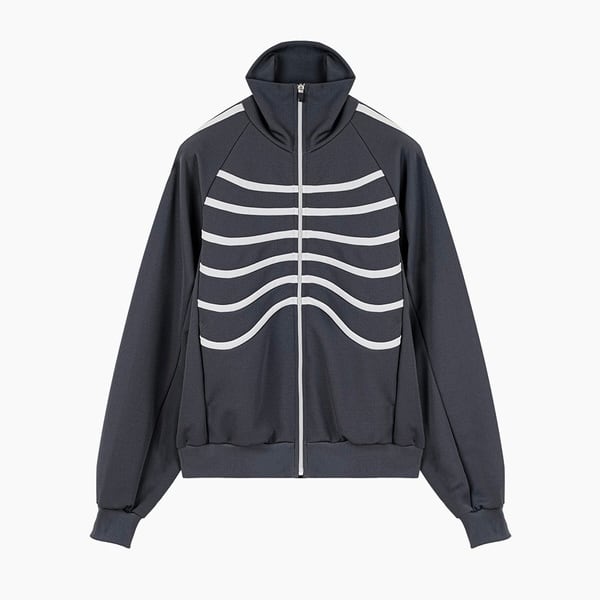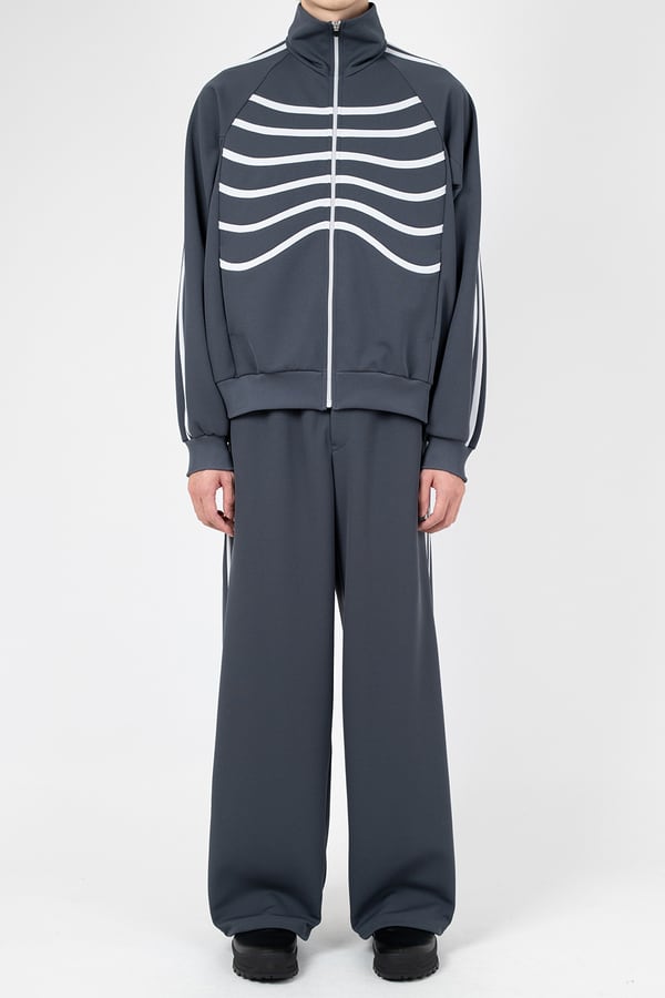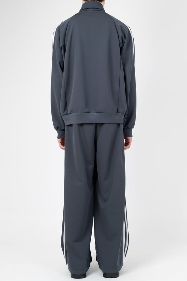 シャープなフォルムにほどよくゆとりを持たせたスタンドカラーのトラックジャケットです。