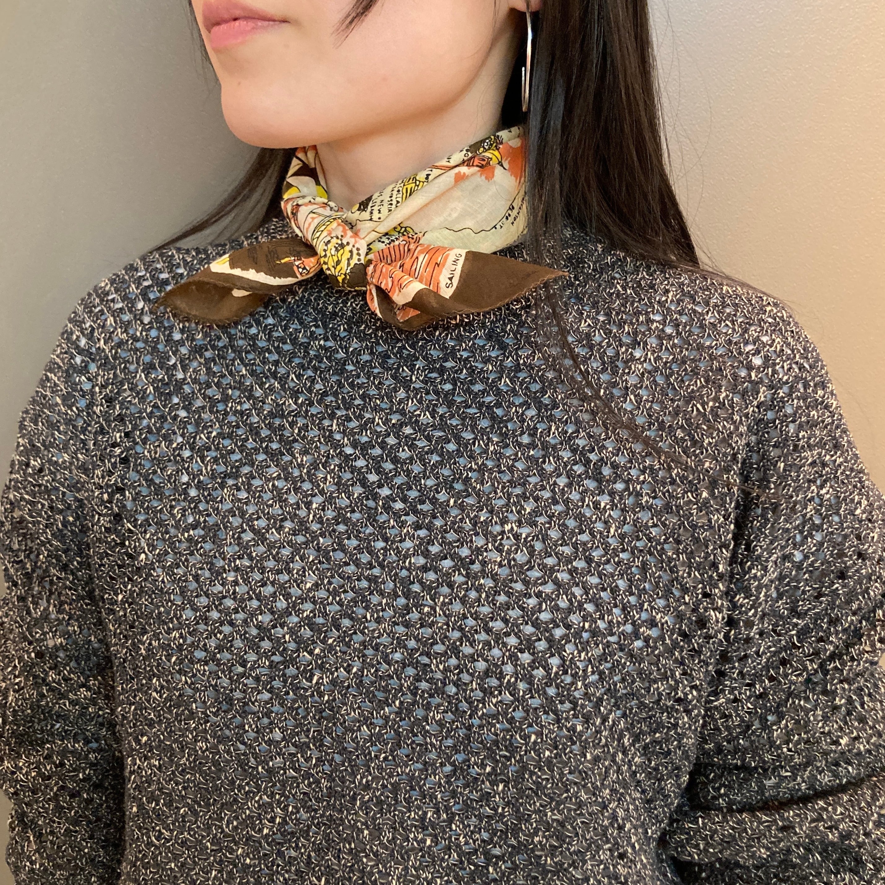 BINDUのバンダナは首に巻いた時の心地の良い風合いにこだわり、さらっとした雰囲気のあるインド綿を使いプリントも手捺染で仕上げるなど、味わい深い一枚を追求しています。その為裁断から仕上げまでの工程を手作業で行い多少の個体差はそれぞれの表情として捉えています。個々に違った味わいをお楽しみ下さい。