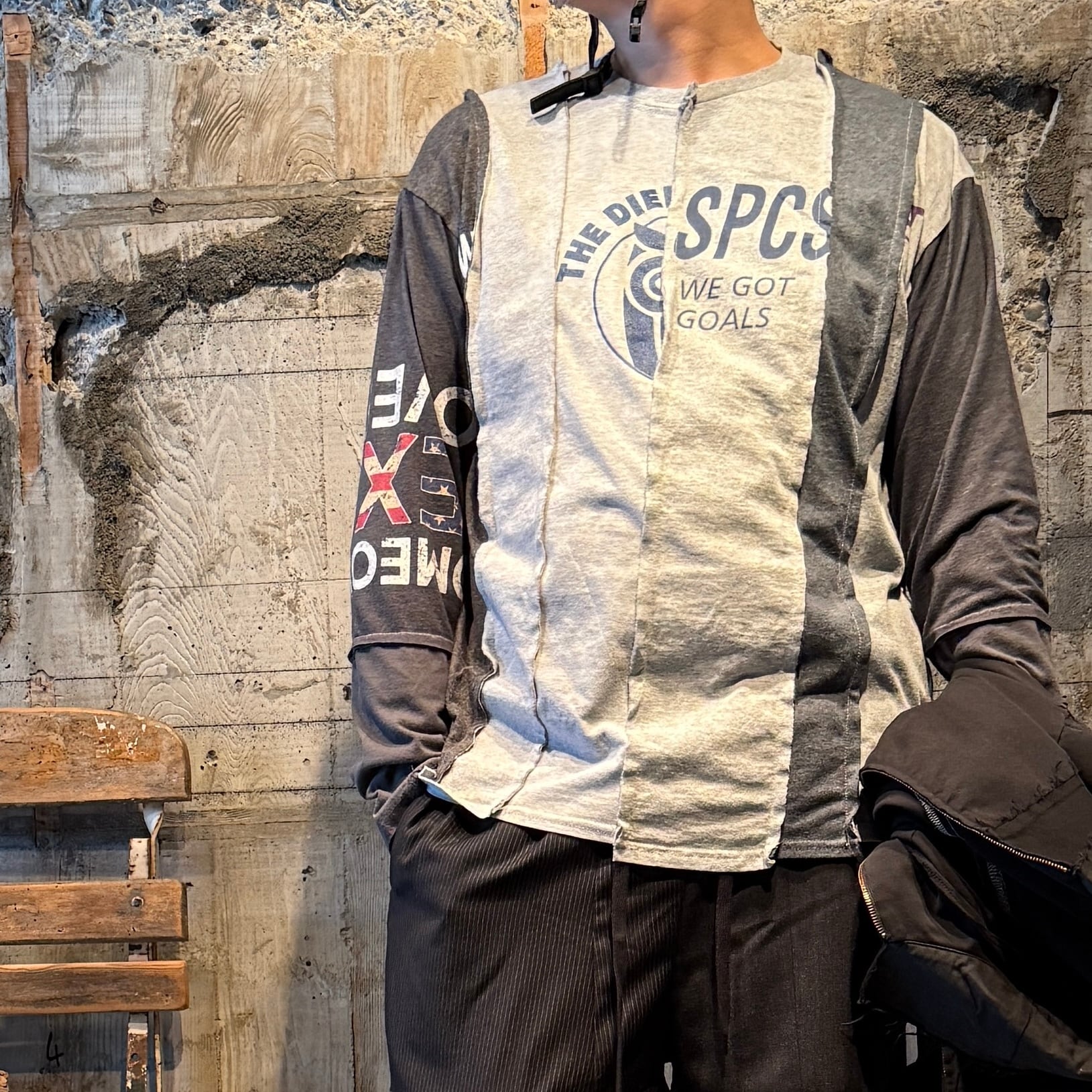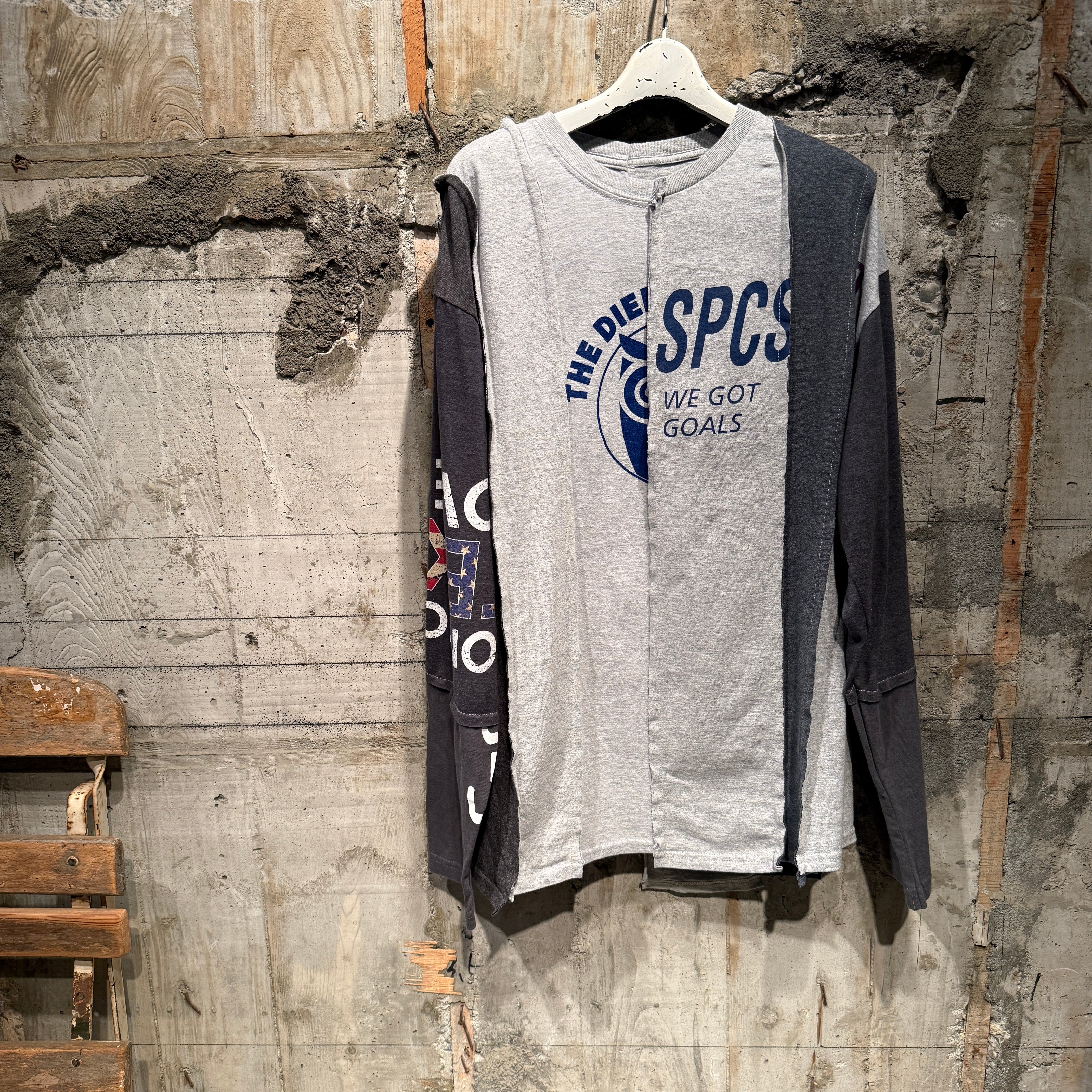 【USED ITEM】STRIPE PATCHWORK LS-TEE/ Color:GRAY MIX.