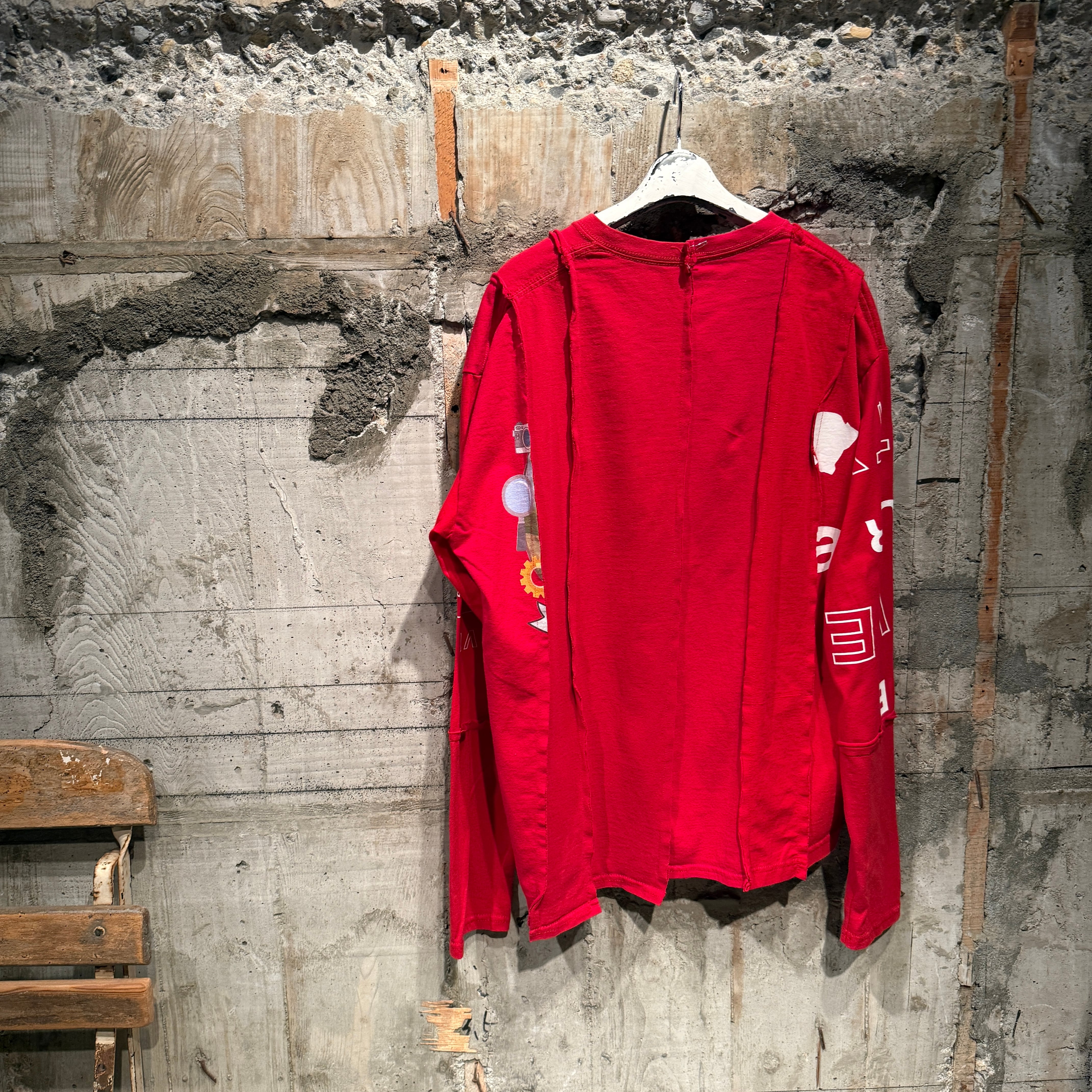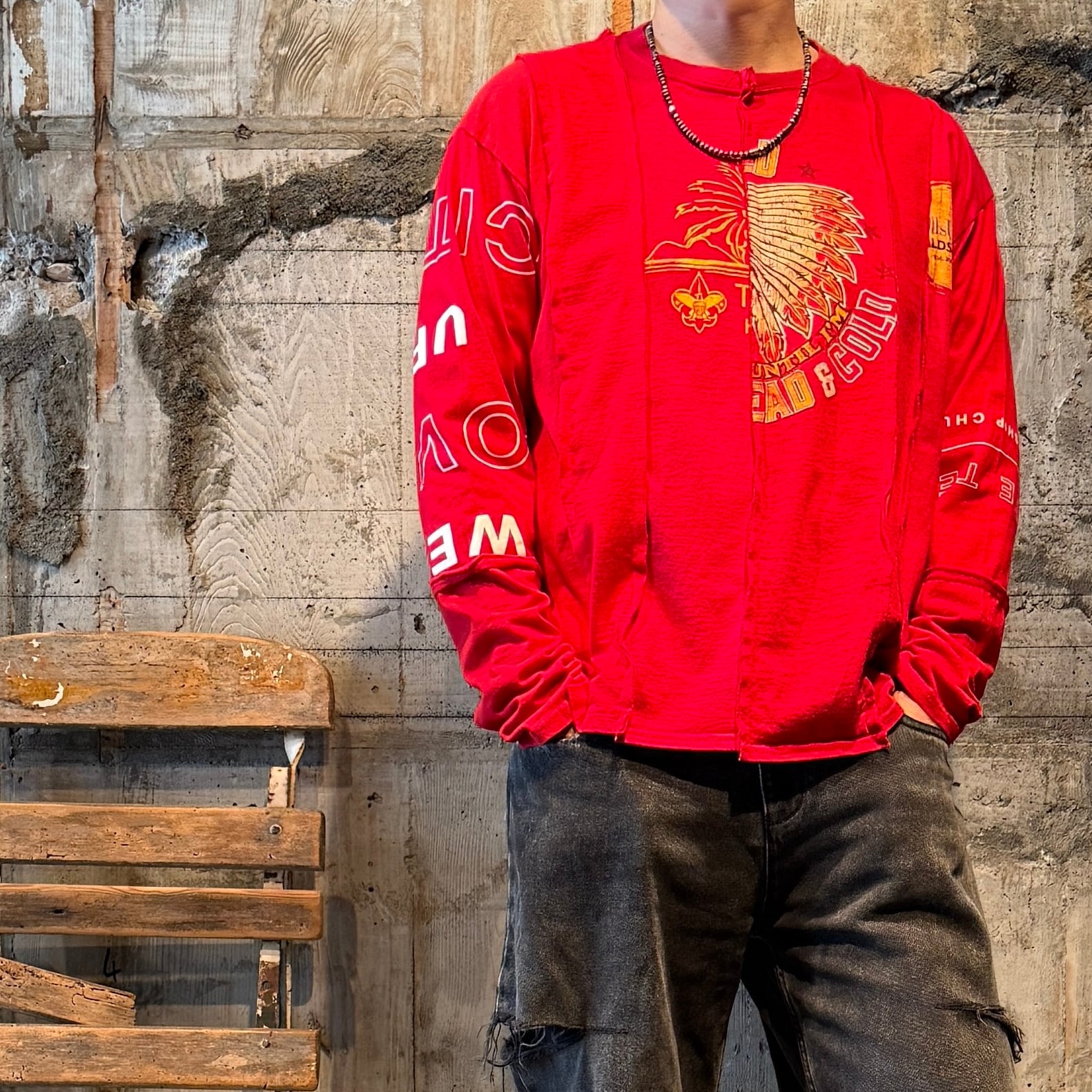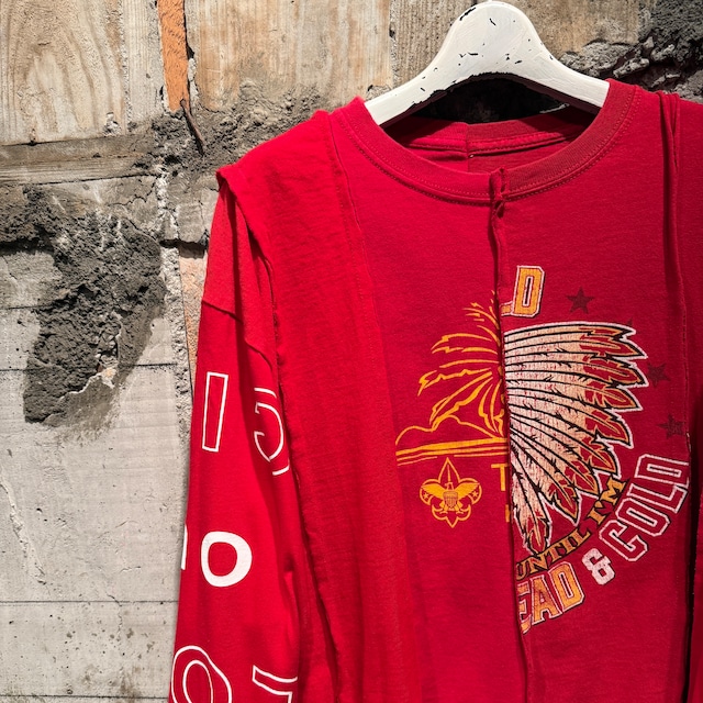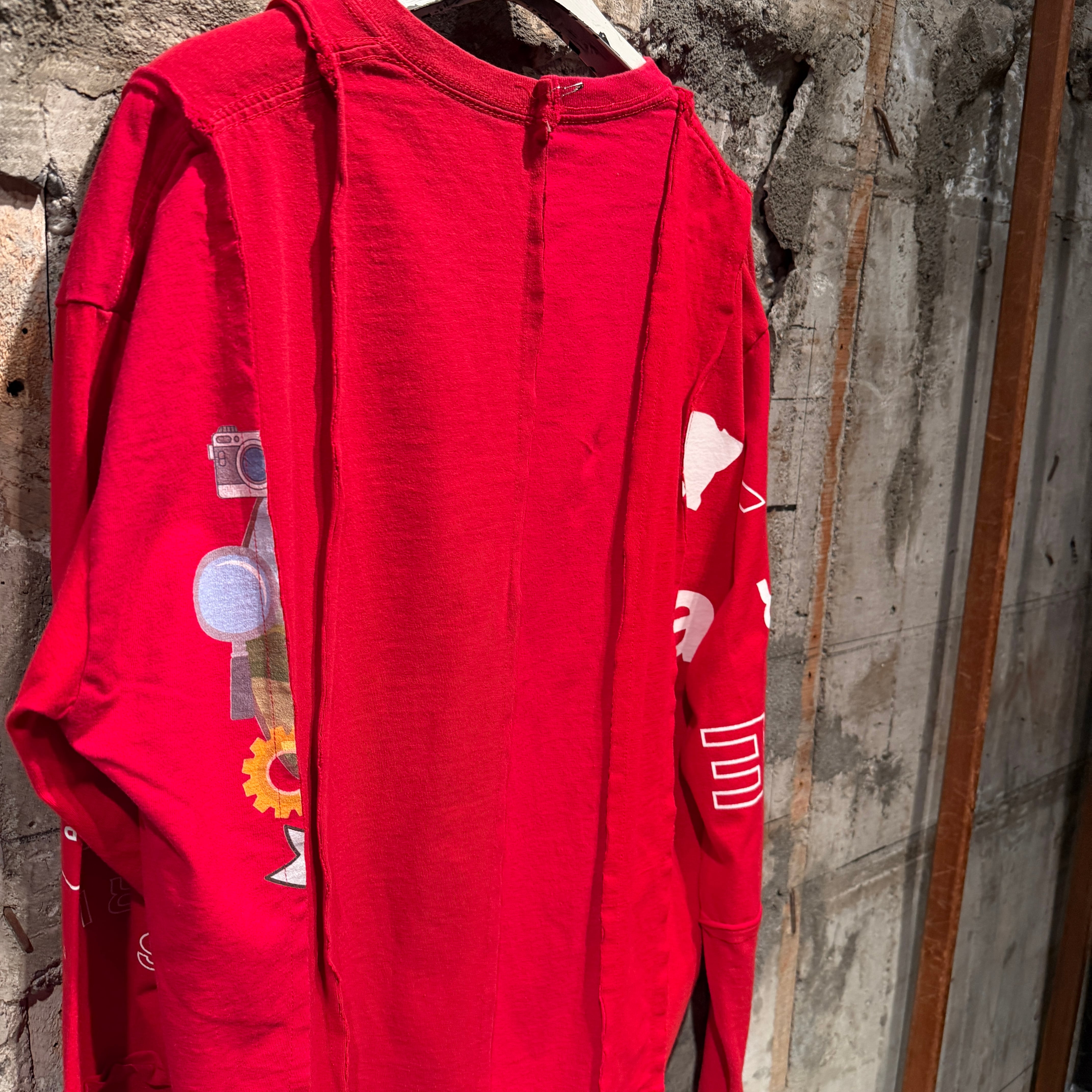 【USED ITEM】STRIPE PATCHWORK LS-TEE/ Color:Red Mix.