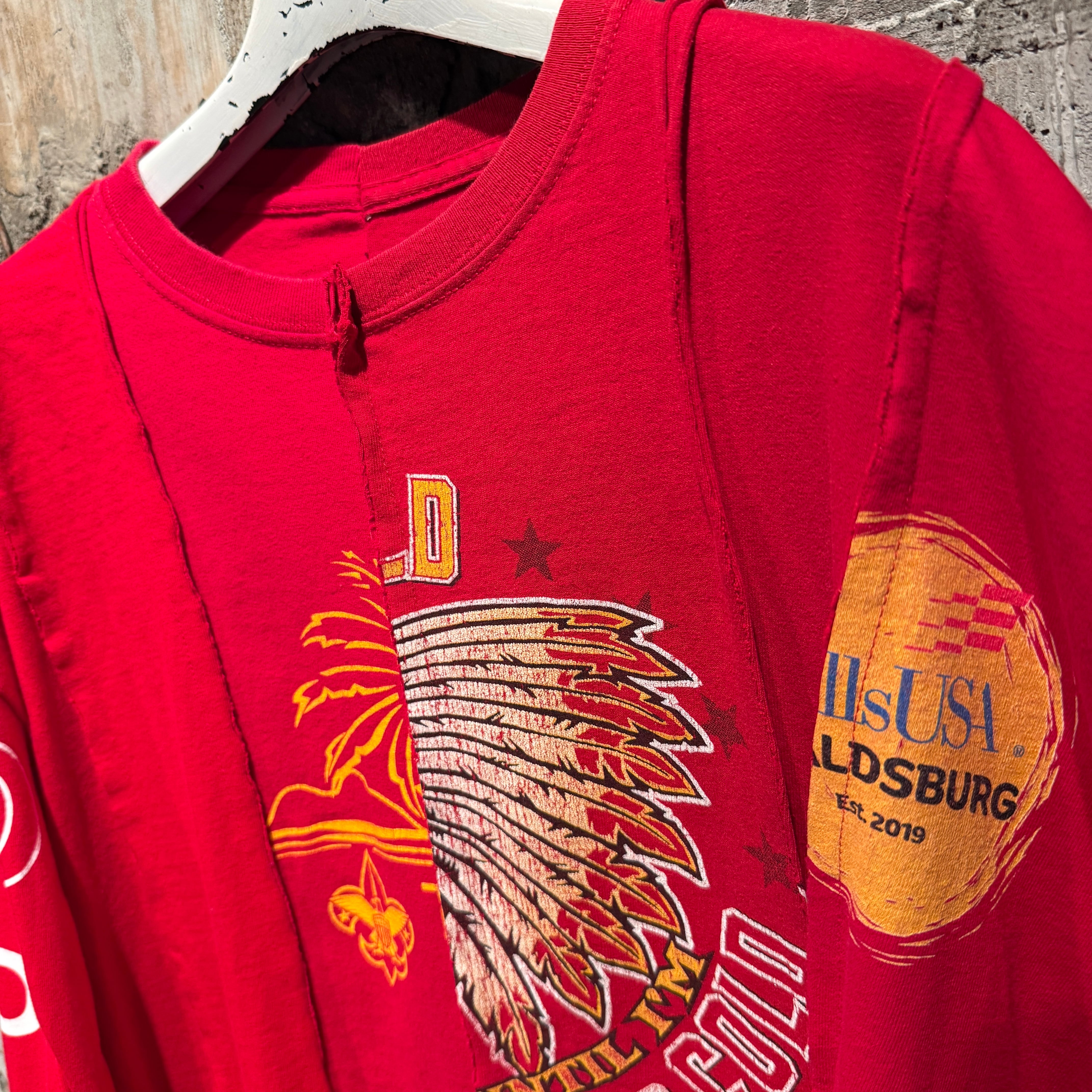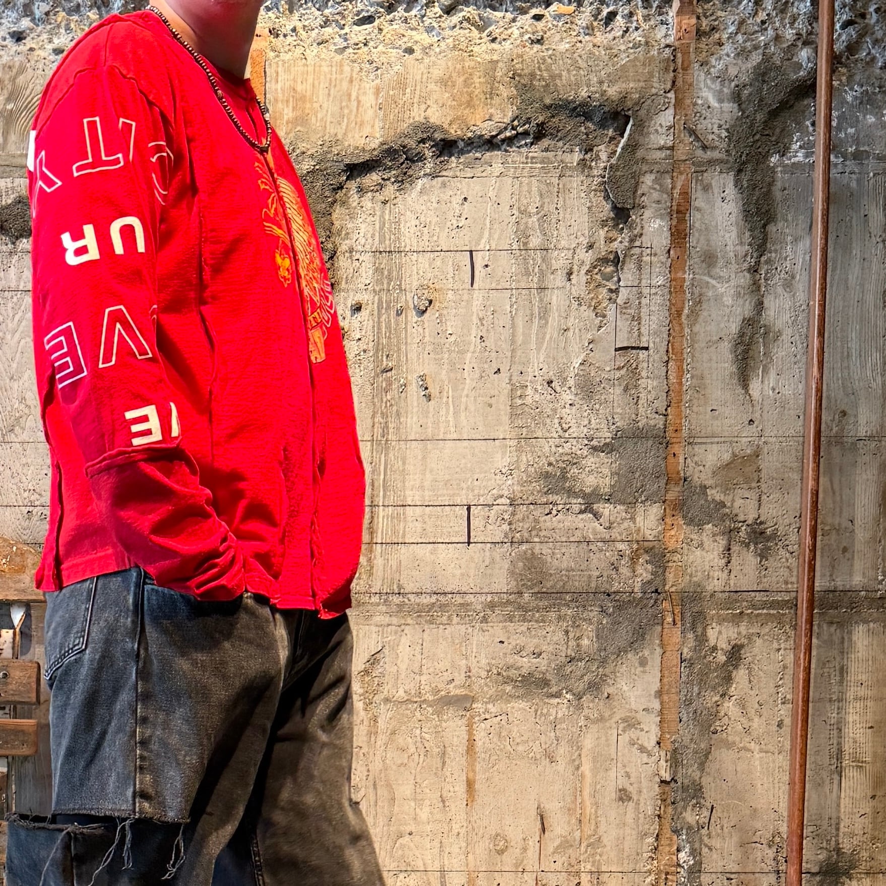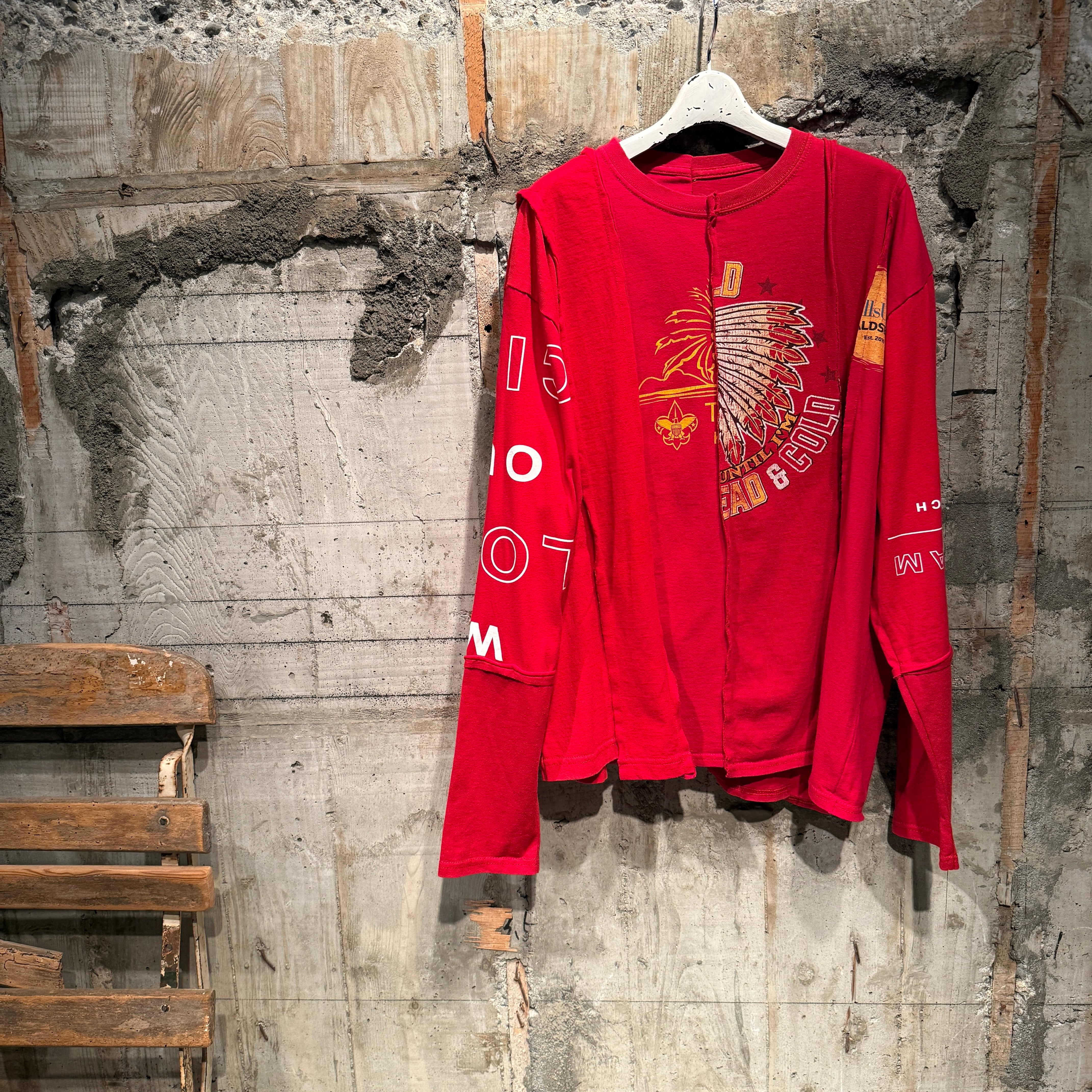 【USED ITEM】STRIPE PATCHWORK LS-TEE/ Color:Red Mix.