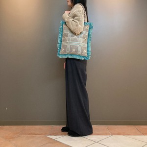 Bindu【ビンドゥ】 Crochet Jacquard Frill Tote(BBB-2166 SAX/GRAY)
