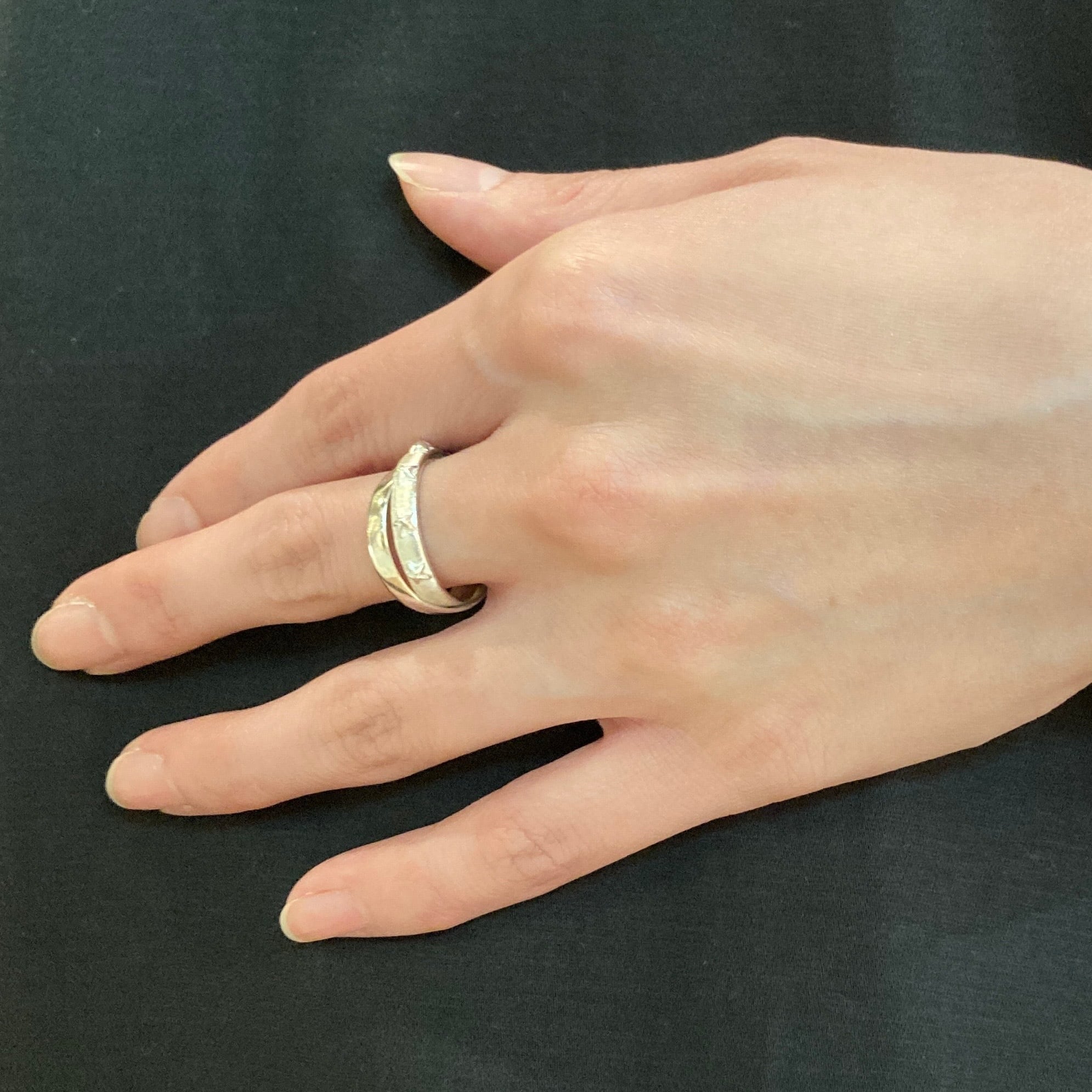 2連リングが指先に自然な立体感を生み出し、スタイリングの幅を広げてくれるリングです。