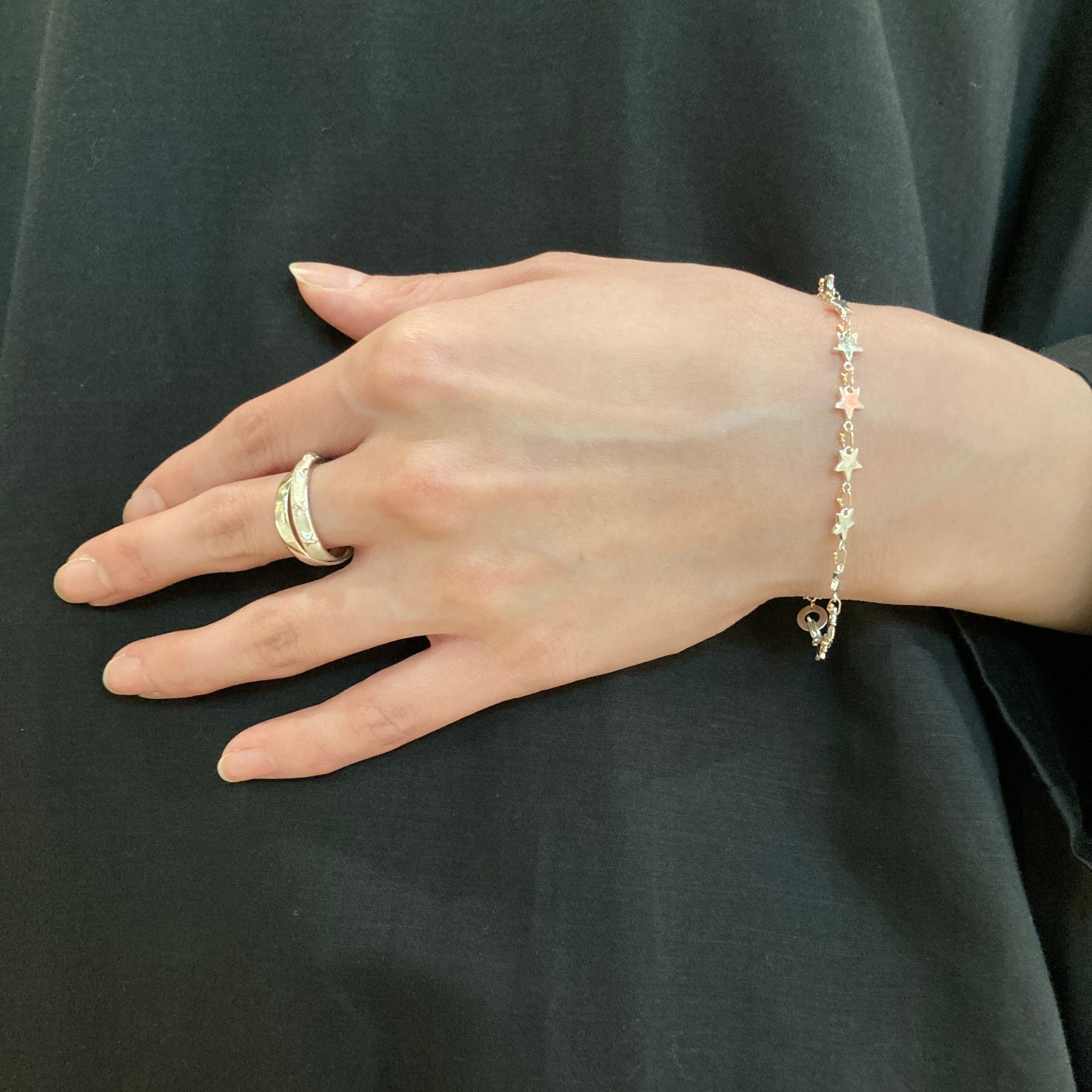 願いを叶え、運気を高めてくれる星の輝き。重なり合う柔らかなラインに、小さな星たちを一つひとつ丁寧にあしらいました。