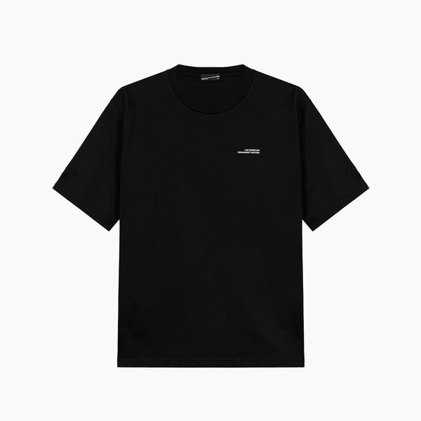 左胸には、ブランド名と素材名をミニマルなタイポグラフィでプリントしています。