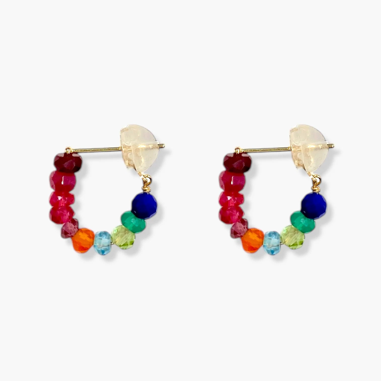 耳元で宝石たちが楽しげに揺れる、フープ型の心ときめくデザイン。デニムなどのラフなスタイルにはもちろん、華やかなドレスアップまで、シーンを選ばず表情を明るく彩ります。