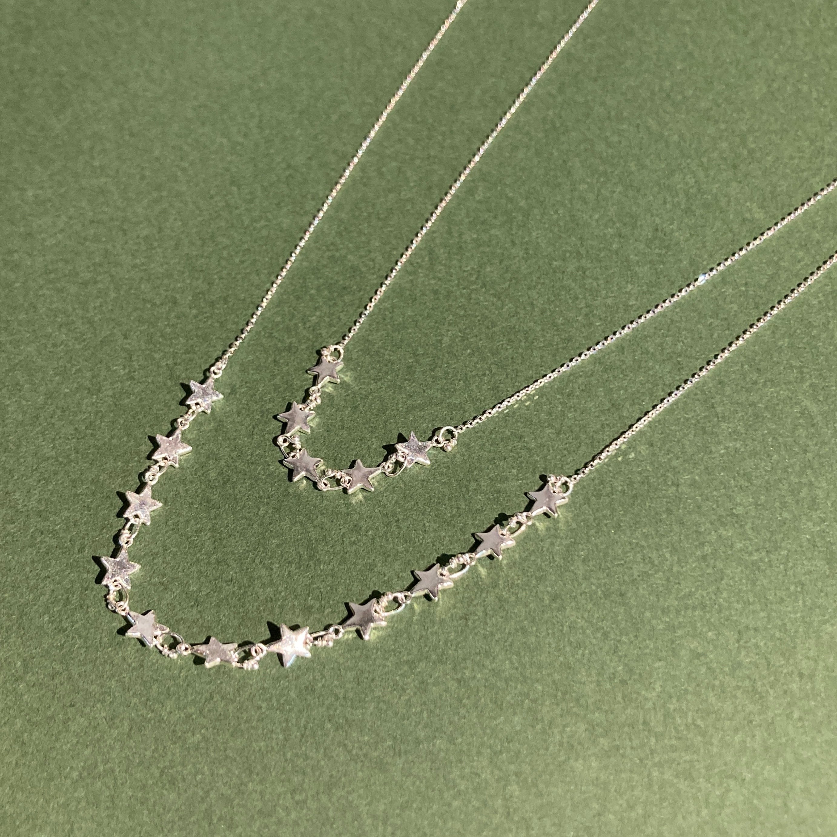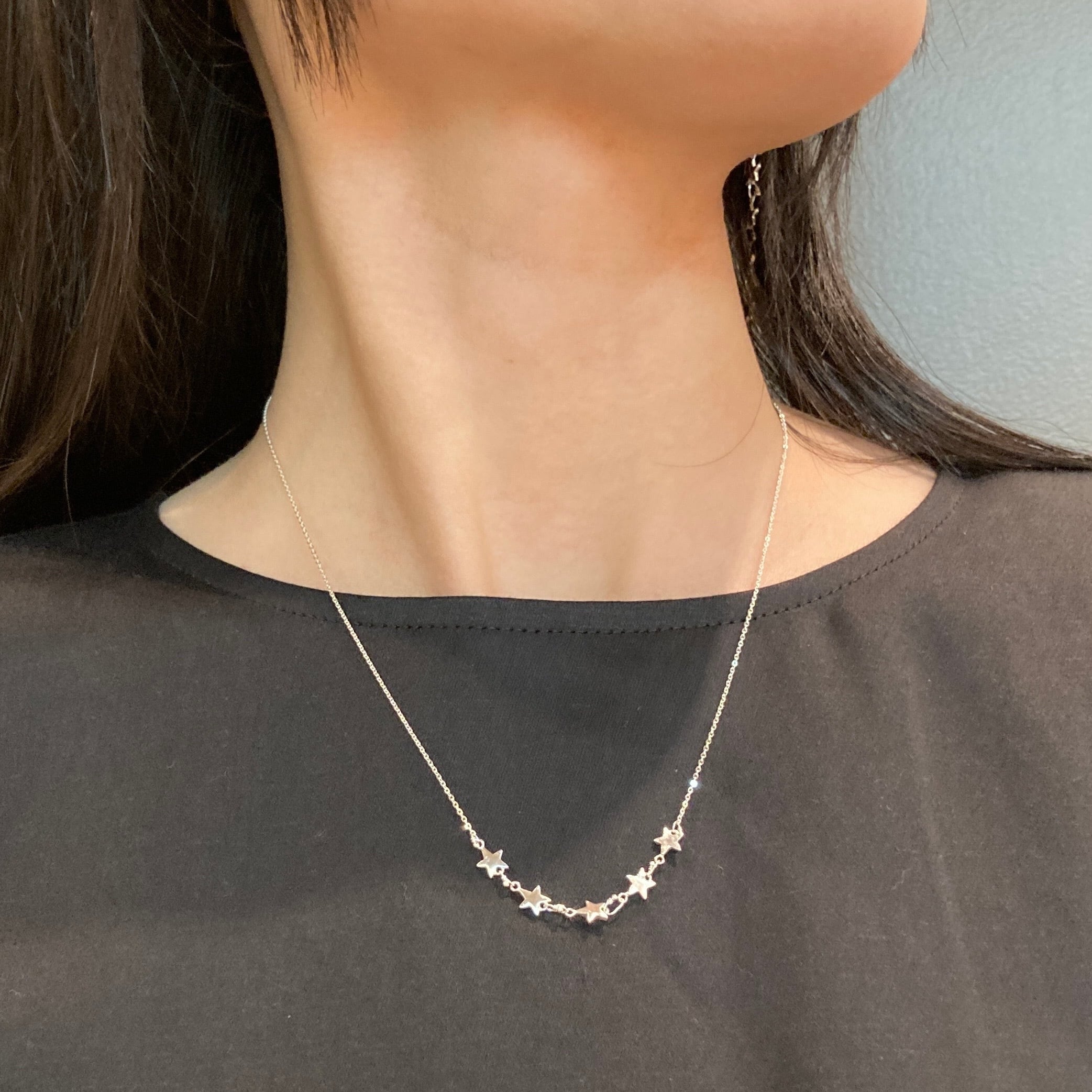 45cmの少し長めのチェーンに、5つのスターチャームの組み合わせは、重ねてもバランスよくまとまるデザインに仕上げました。