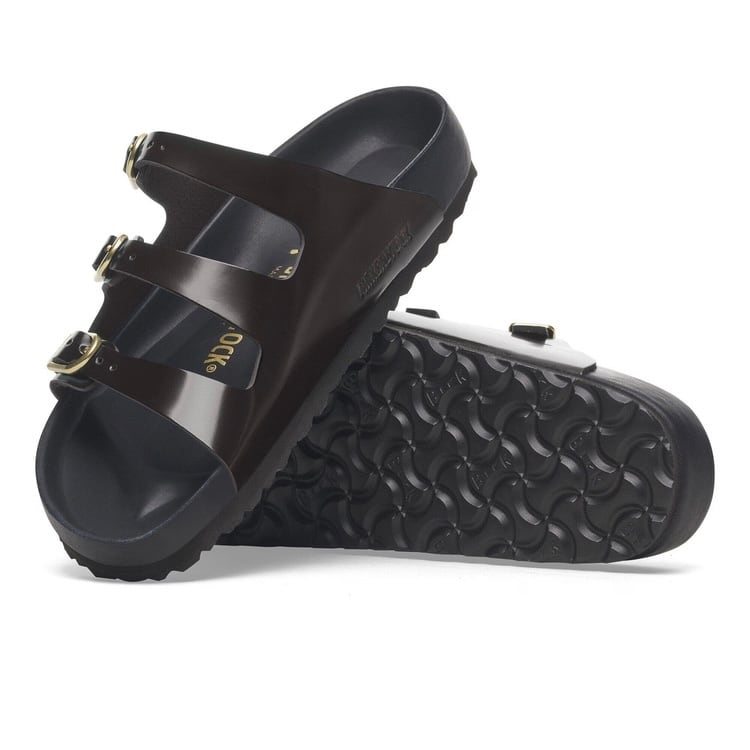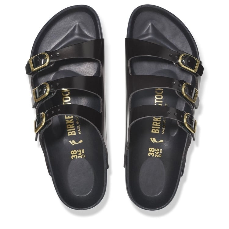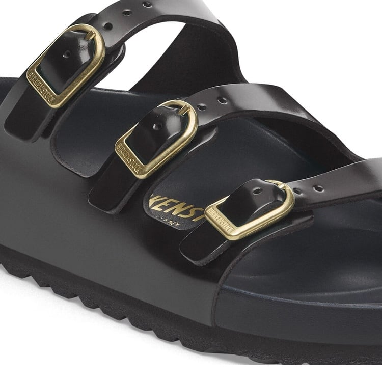 BIRKENSTOCK Floridaは、一日中歩いていたいあなたにぴったりの一足です。トリプルストラップで安心のホールド感と極上の履き心地をお楽しみください。繊細なD型バックルが、サンダルのエレガントなアピアランスをまとめ、アッパーには光沢コーティングを施した高級ナチュラルレザーを使用しています。