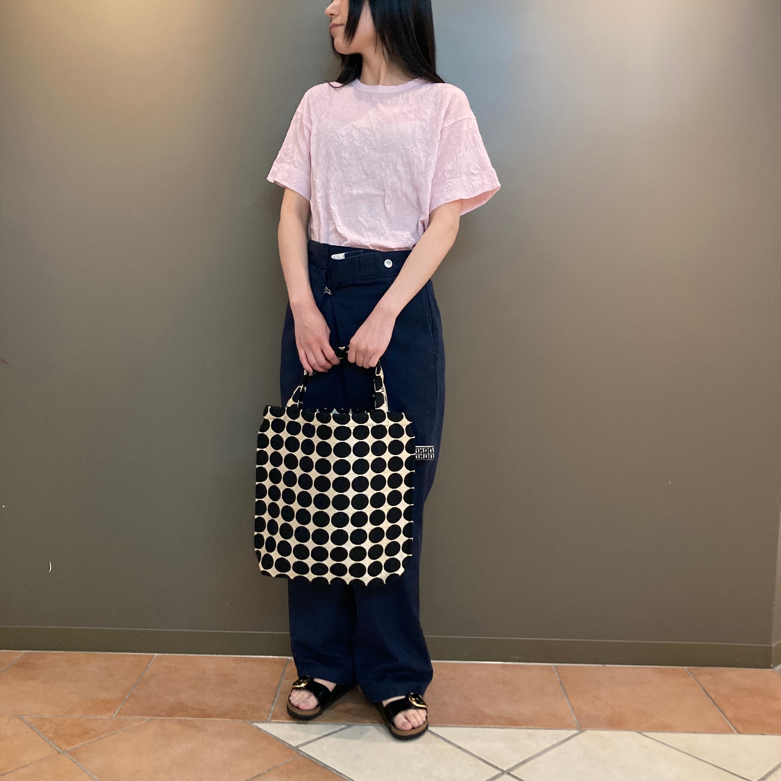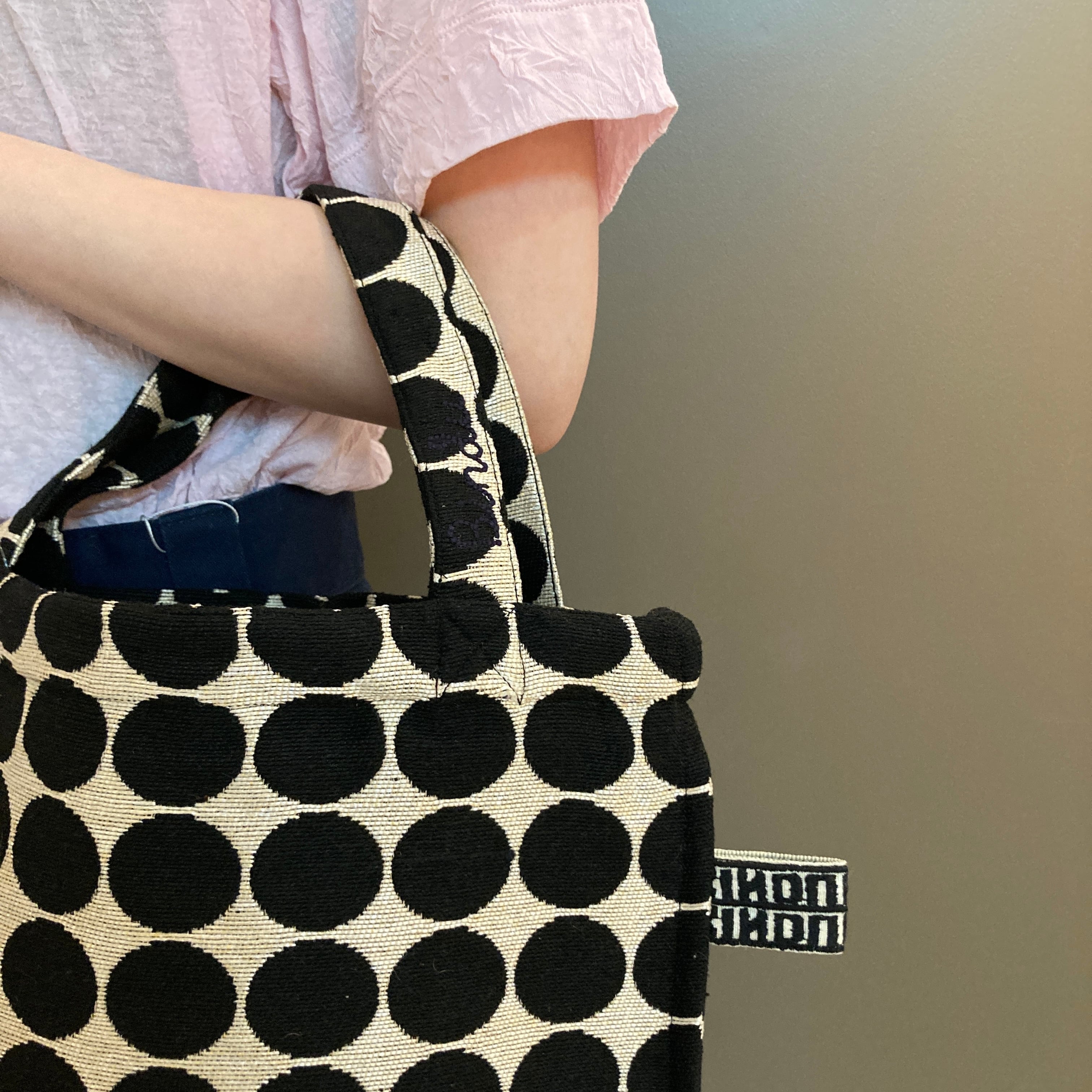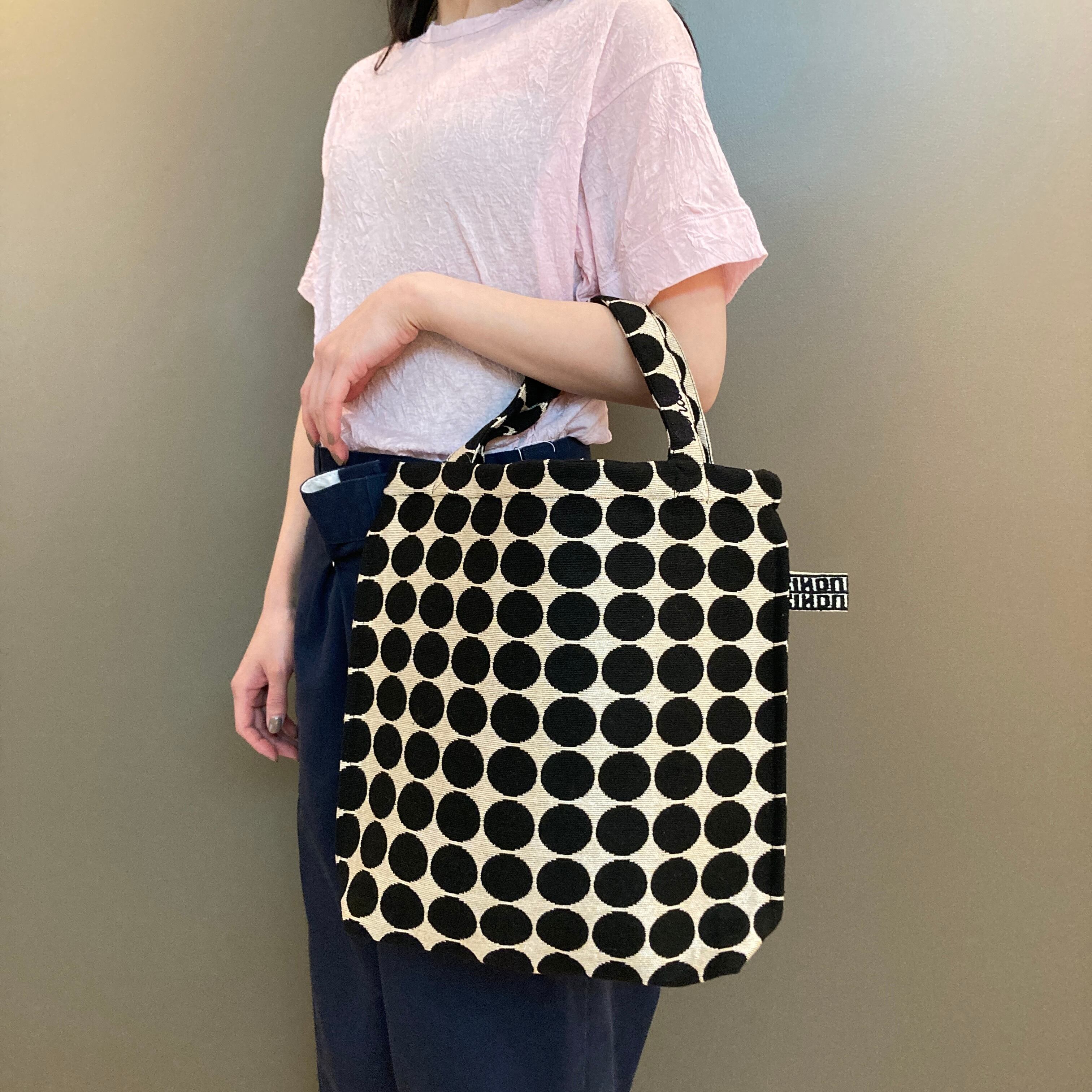 人気のドット柄のジャガードトートバッグ。