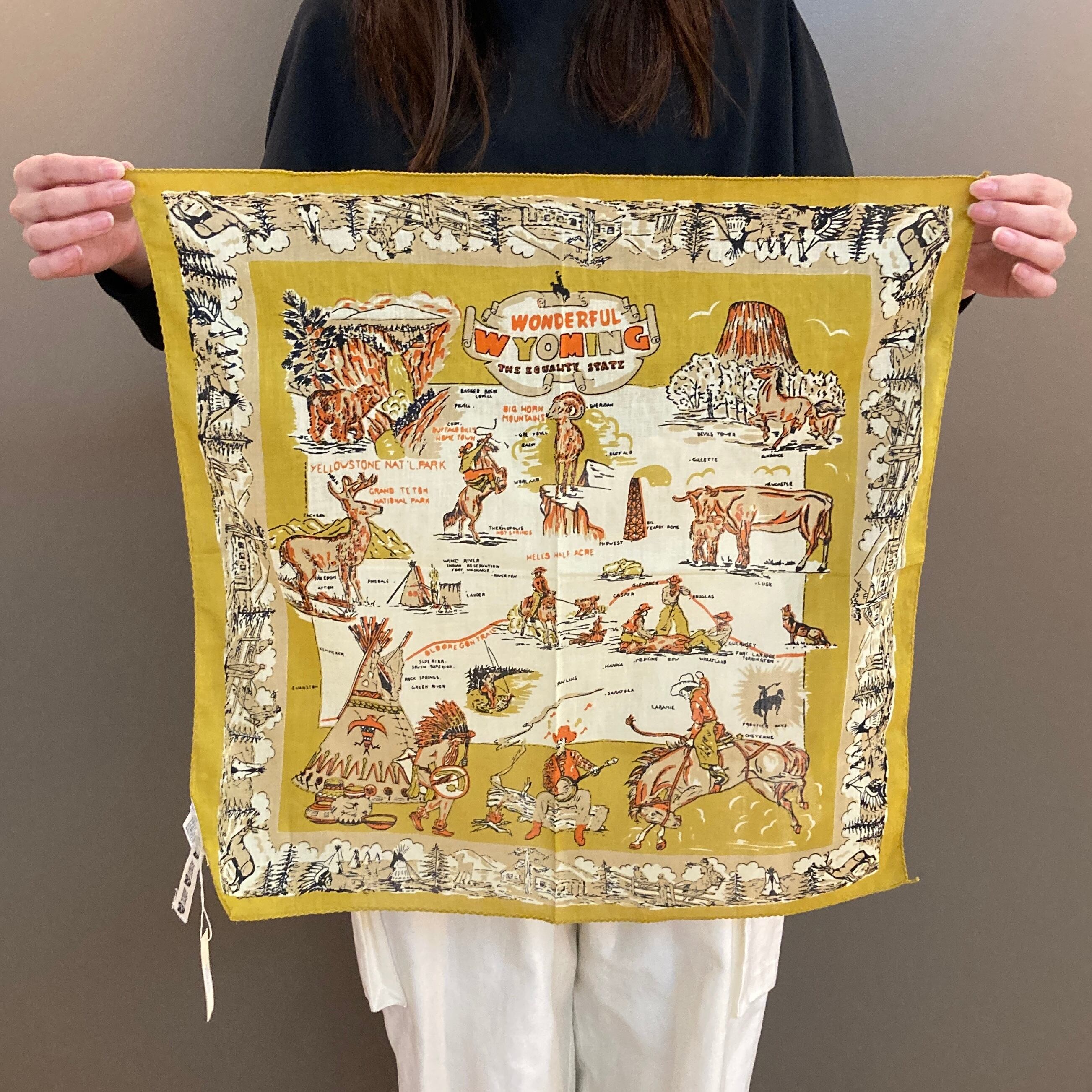 WYOMING マップビンテージ風プリントのバンダナ