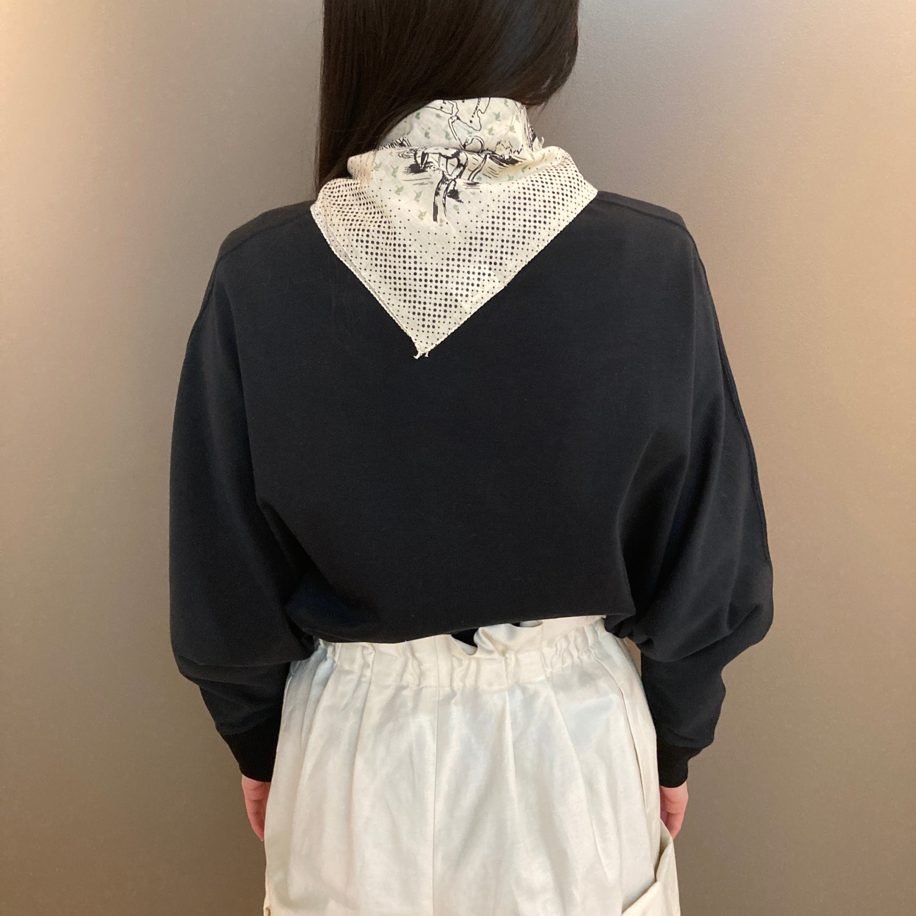 BINDUのバンダナは首に巻いた時の心地の良い風合いにこだわり、さらっとした雰囲気のあるインド綿を使いプリントも手捺染で仕上げるなど、味わい深い一枚を追求しています。その為裁断から仕上げまでの工程を手作業で行い多少の個体差はそれぞれの表情として捉えています。個々に違った味わいをお楽しみ下さい。